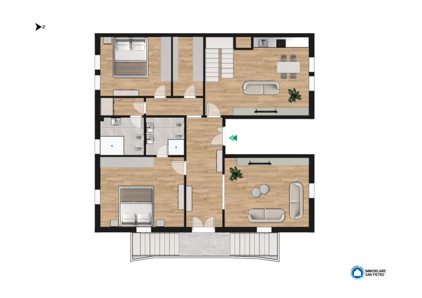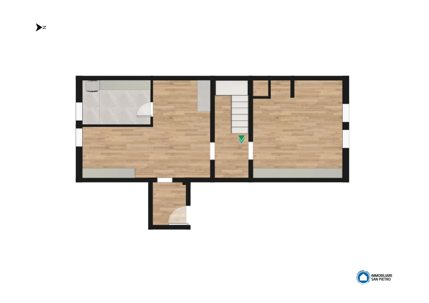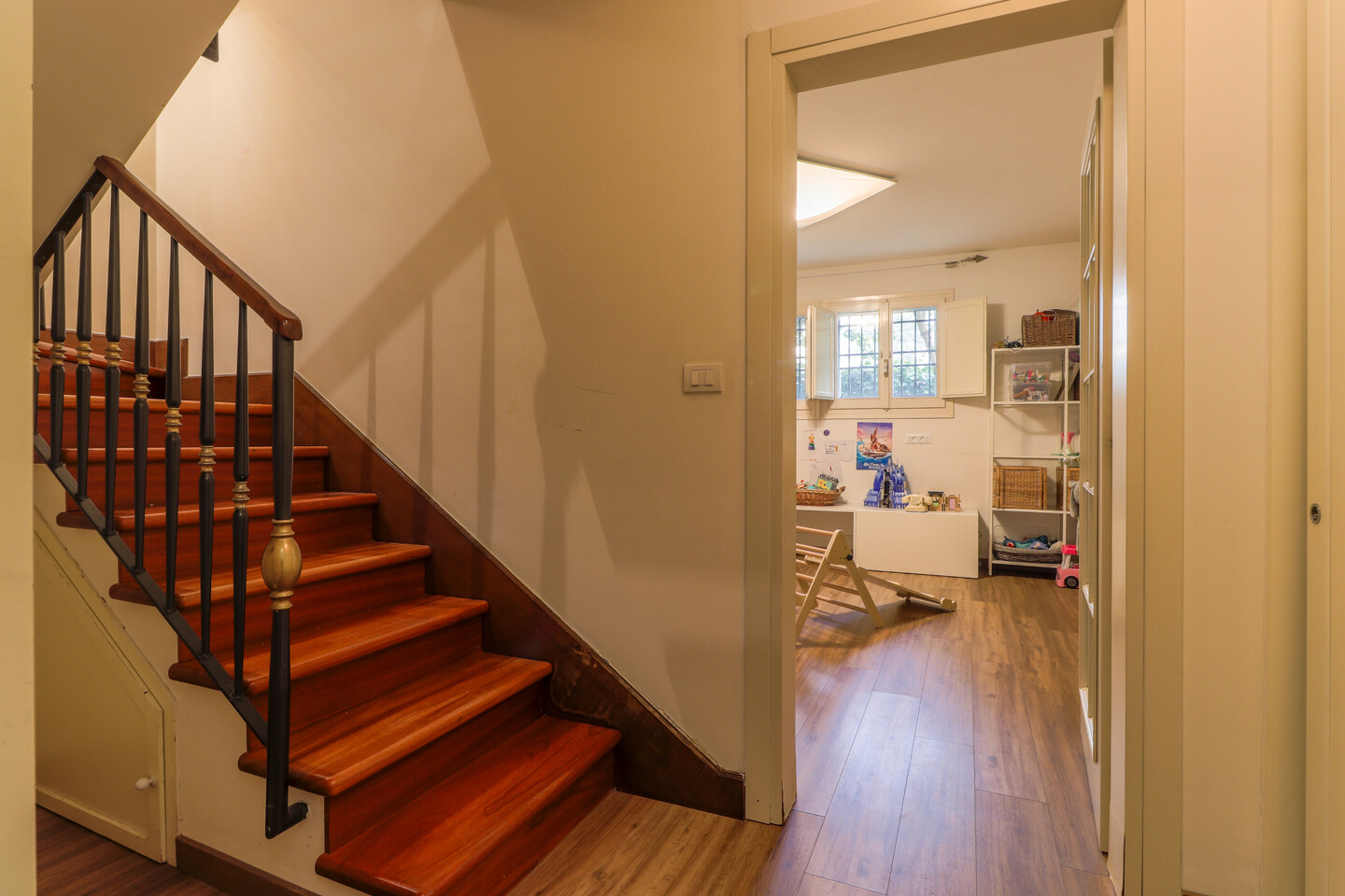 Una comoda scala in legno conduce al piano seminterrato, dove troviamo ulteriori due camere da letto matrimoniali, un bagno e una pratica zona lavanderia.