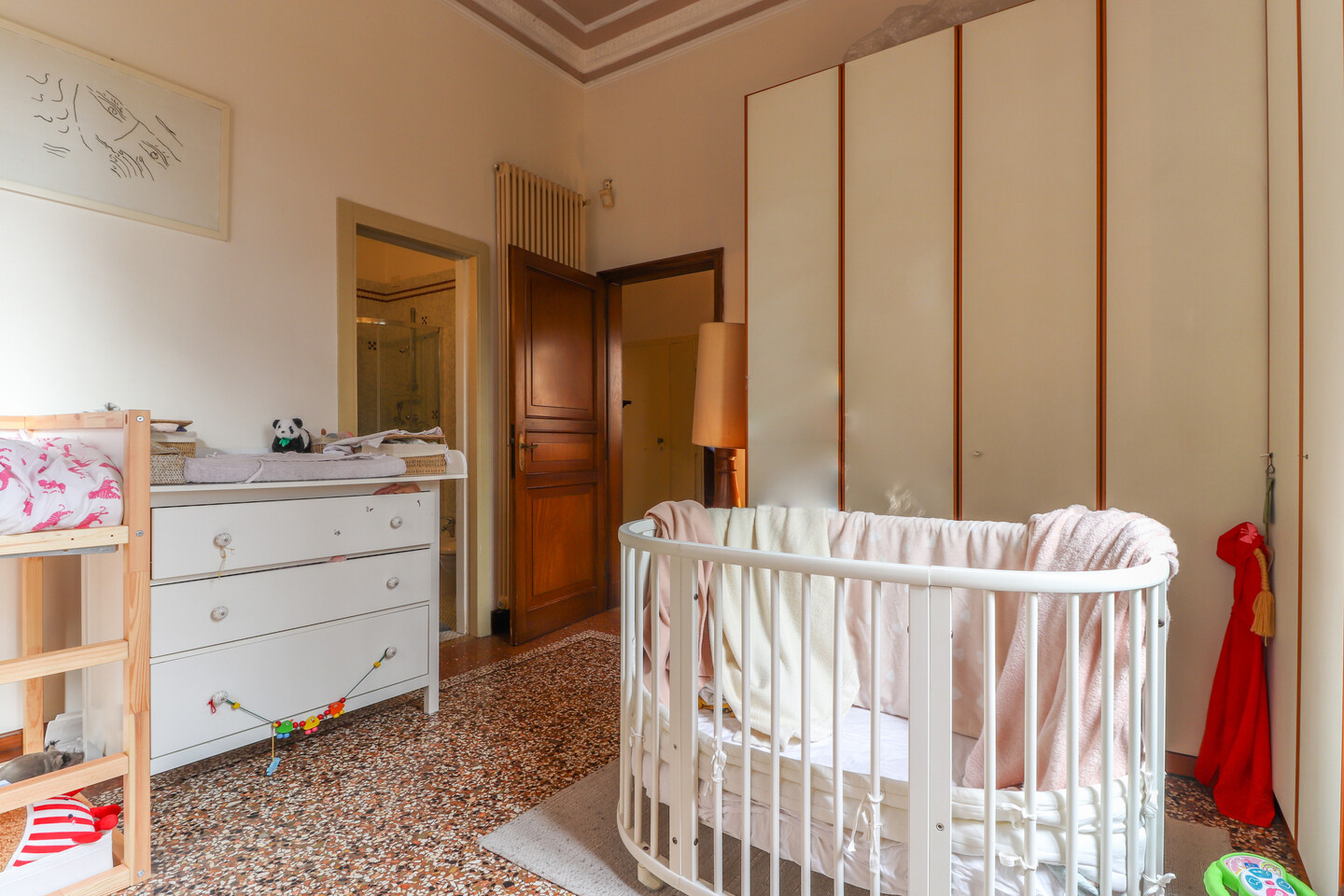 Un secondo disimpegno accompagna alla raffinata zona notte, composta da due ampie camere matrimoniali, entrambe dotate di bagno privato e guardaroba.