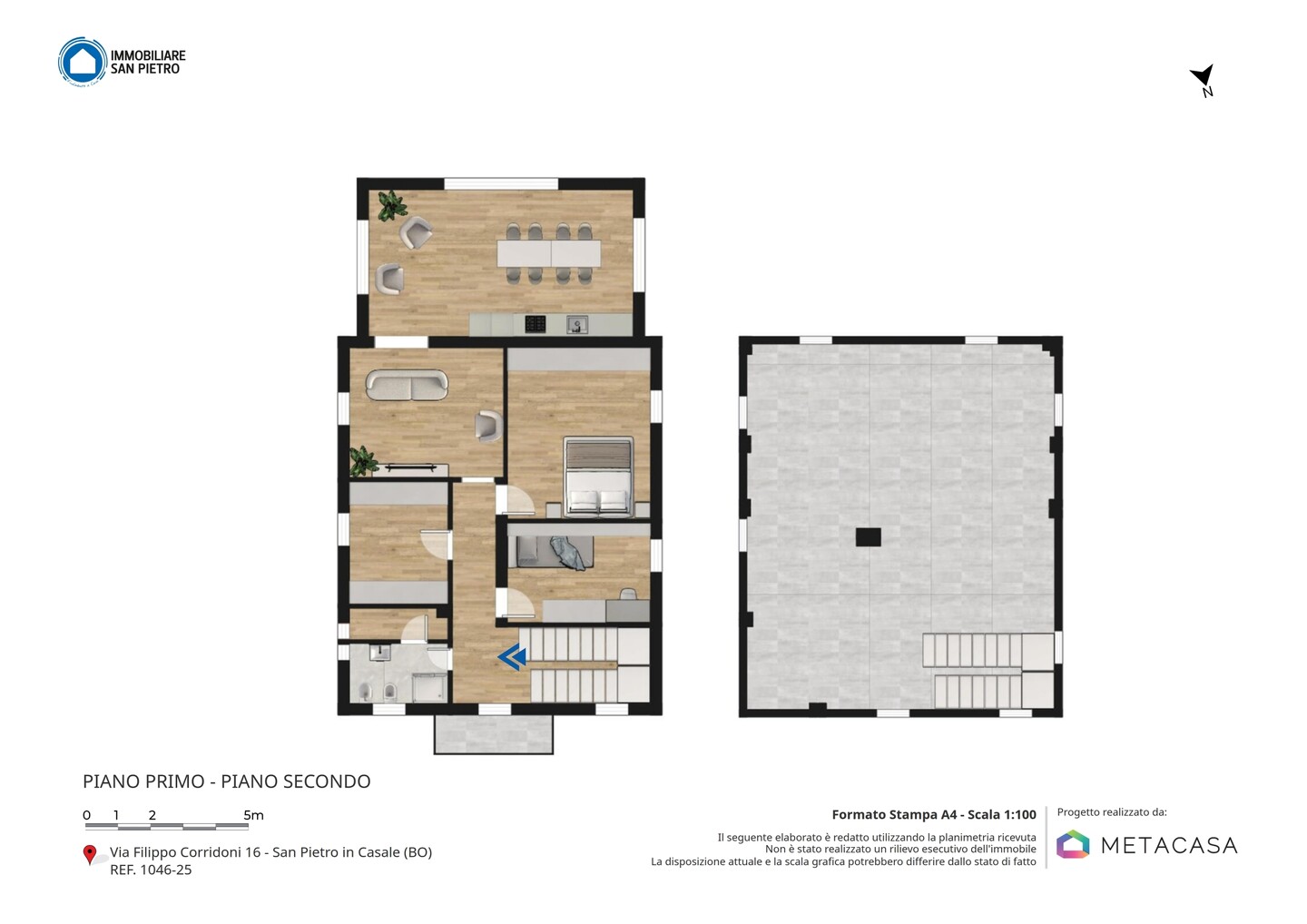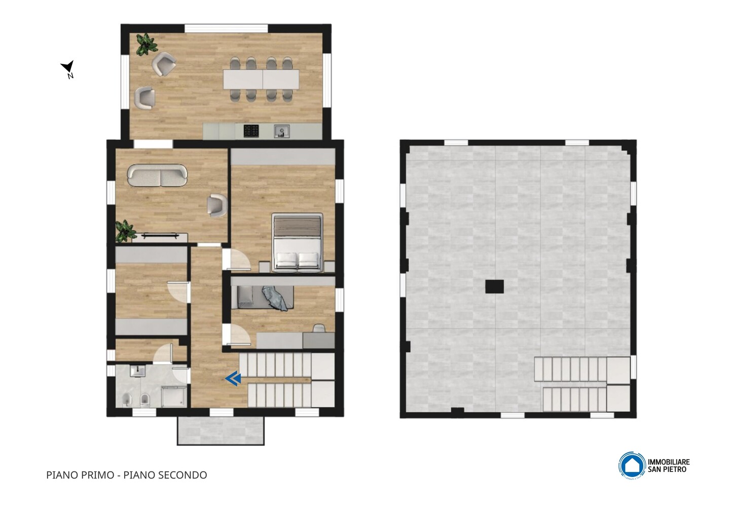 L’appartamento gode dell’ingresso indipendente ed è disposto su 3 livelli. Si accede dal piano terra ad un ingresso finemente arredato con un’ armadiatura a muro salva spazio ed un elegante scala completamente in resina. La resina distingue tutto il piano nobile dell’appartamento dove si sviluppa il fulcro del lay-out con un disimpegno illuminato da un fine balconcino, che conduce alla zona notte con 3 camere da letto, di cui una matrimoniale, un bagno finemente arredato. La zona giorno, infine, ti sorprenderà con un accogliente salottino, perfetto per i tuoi momenti di relax, che ti conduce direttamente nel cuore pulsante della casa: la cucina. L’immobile è stato completamente ristrutturato nel 2023. Completano la proprietà l’autorimessa e la soffitta, attualmente da rifinire. Si specifica che, volendo, c’è la possibilità di acquisto anche dell’appartamento presente nello stesso fabbricato con ingresso dedicato e che si sviluppa al piano terra