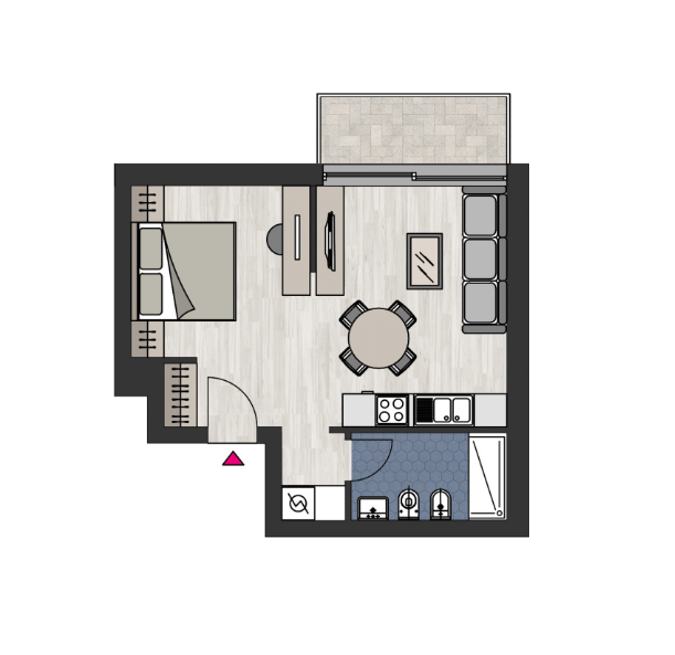 Monolocale zona living con angolo cottura e letto matrimoniale, terrazzo, zona lavanderia e 1 bagno, cantina a partire da €.5.000+iva . Possibilità di acquistare a parte Autorimessa a partire da €.35.000+iva e Posto Auto a partire da €.25.000+iva. Consegna Gennaio 2026.