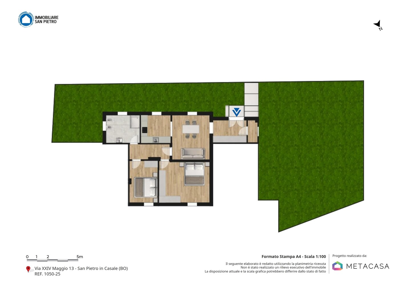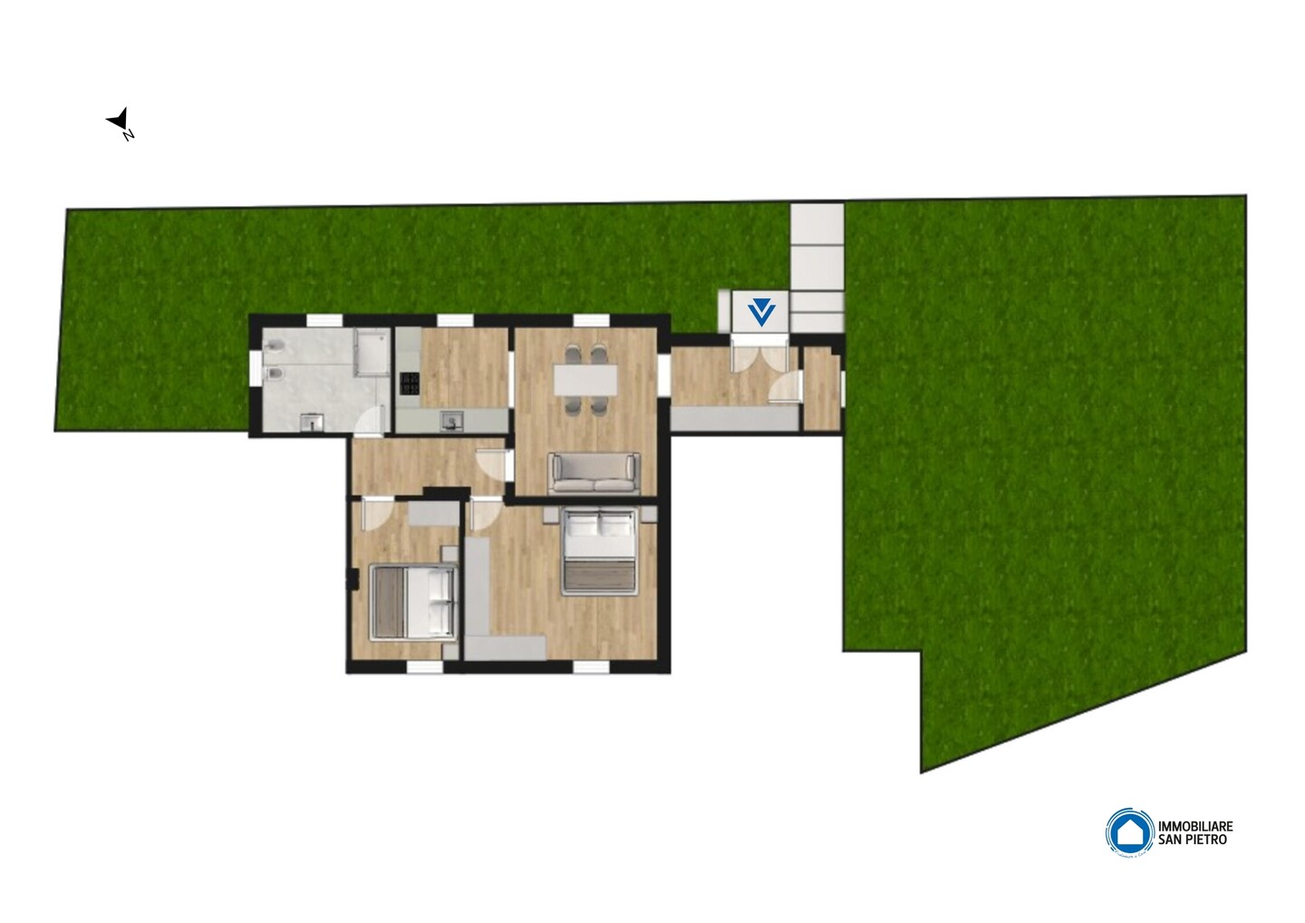 L’appartamento si dispone completamente al piano terra con ingresso indipendente ed è così composto: ingresso, soggiorno, cucina semiabitabile, ripostiglio, 2 camere (una matrimoniale ed una singola), bagno e giardino esclusivo. Ristrutturato nel 2023 con ottime finiture. Si specifica che, volendo, c’è la possibilità di acquisto anche dell’appartamento presente nello stesso fabbricato con ingresso dedicato e che si sviluppa al piano primo e sottotetto.