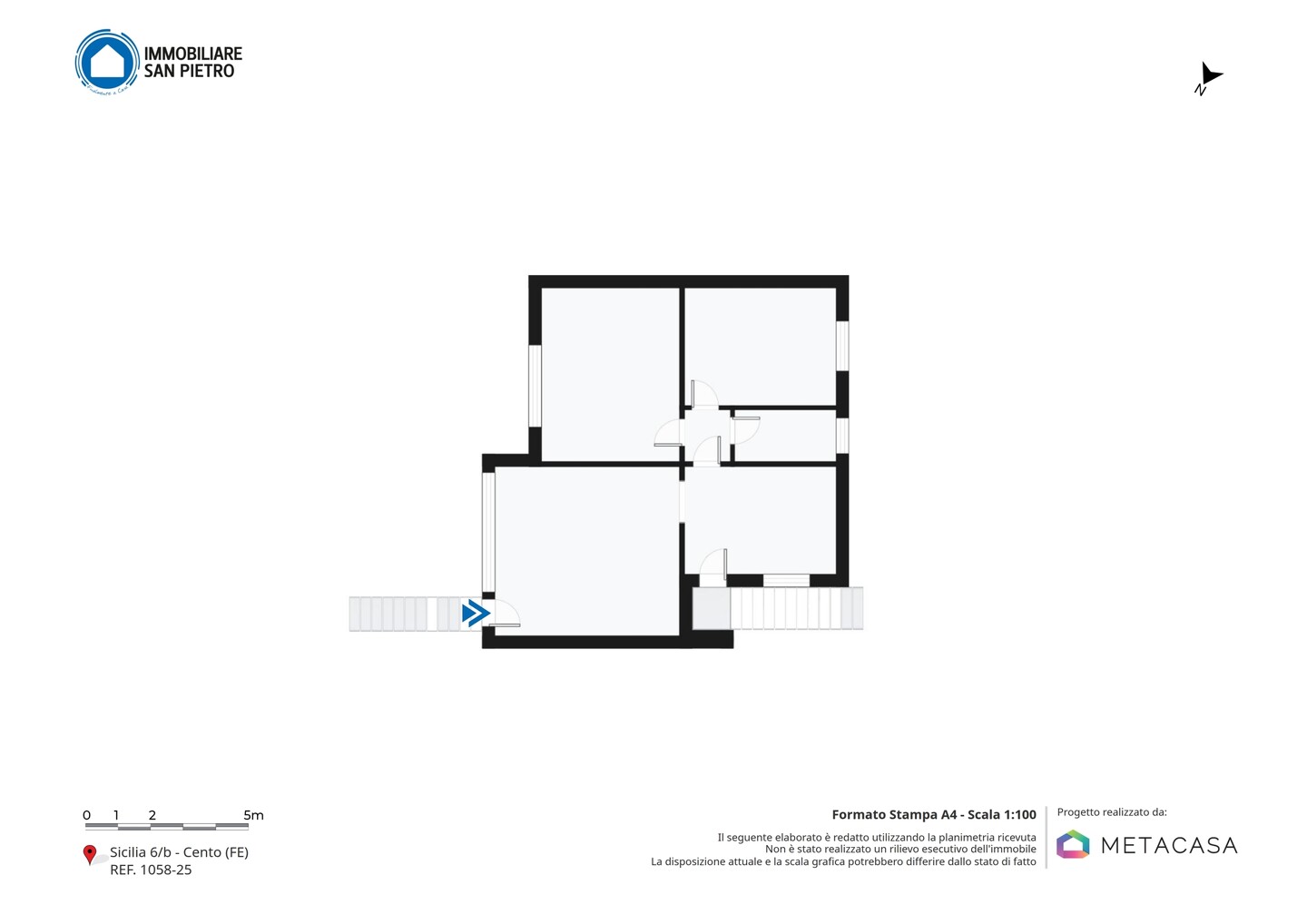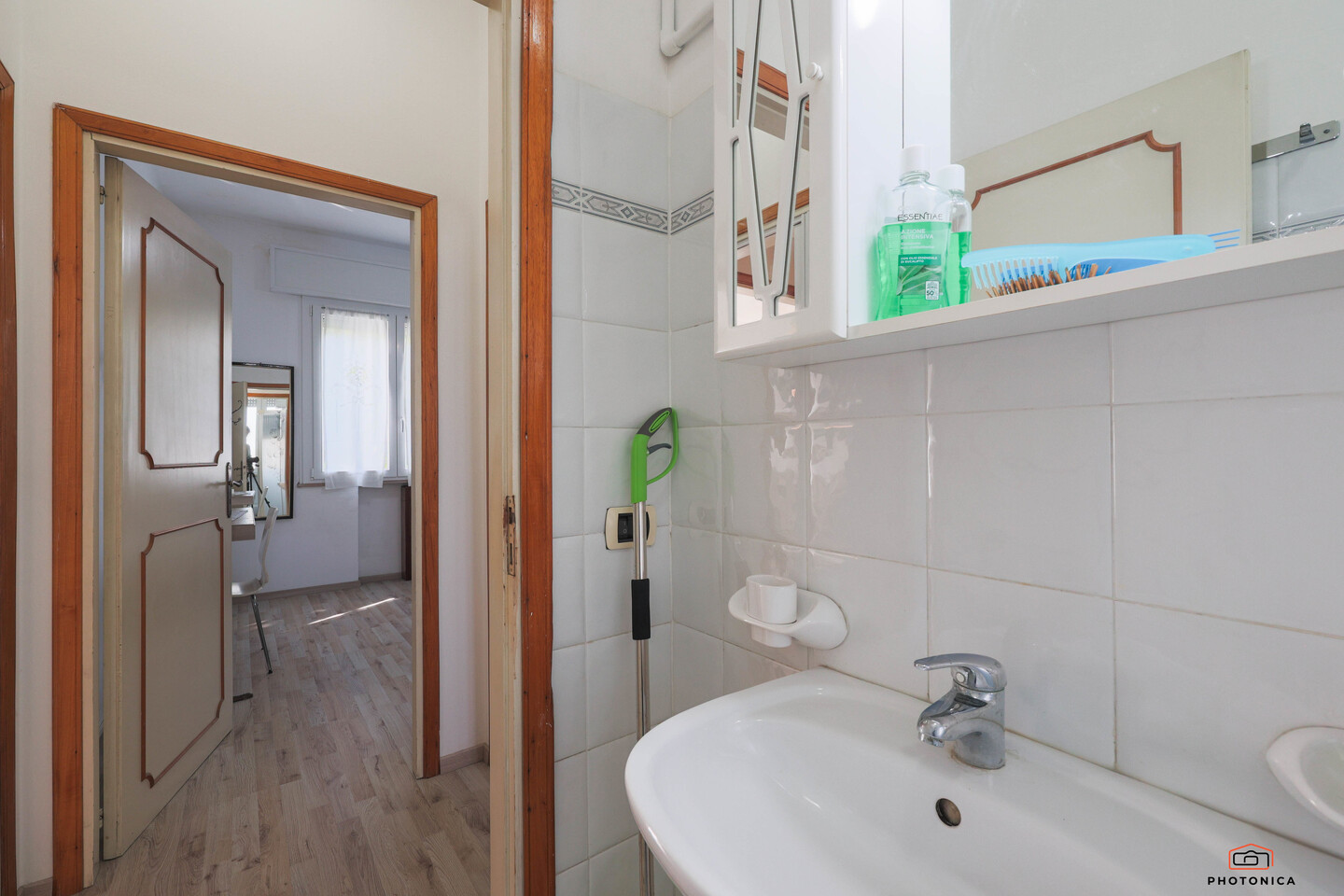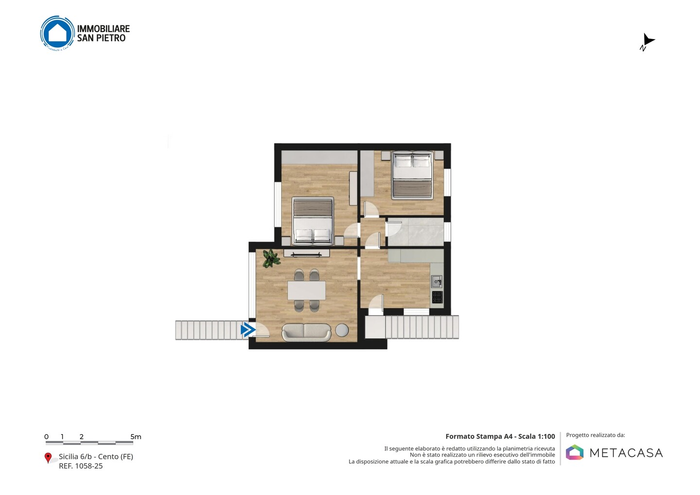 L’abitazione si sviluppa al primo piano con ingresso su luminoso soggiorno, collegato a una cucina separata e abitabile. La zona notte, ben separata, è composta da due camere da letto – una matrimoniale e una singola – oltre a un comodo bagno finestrato.