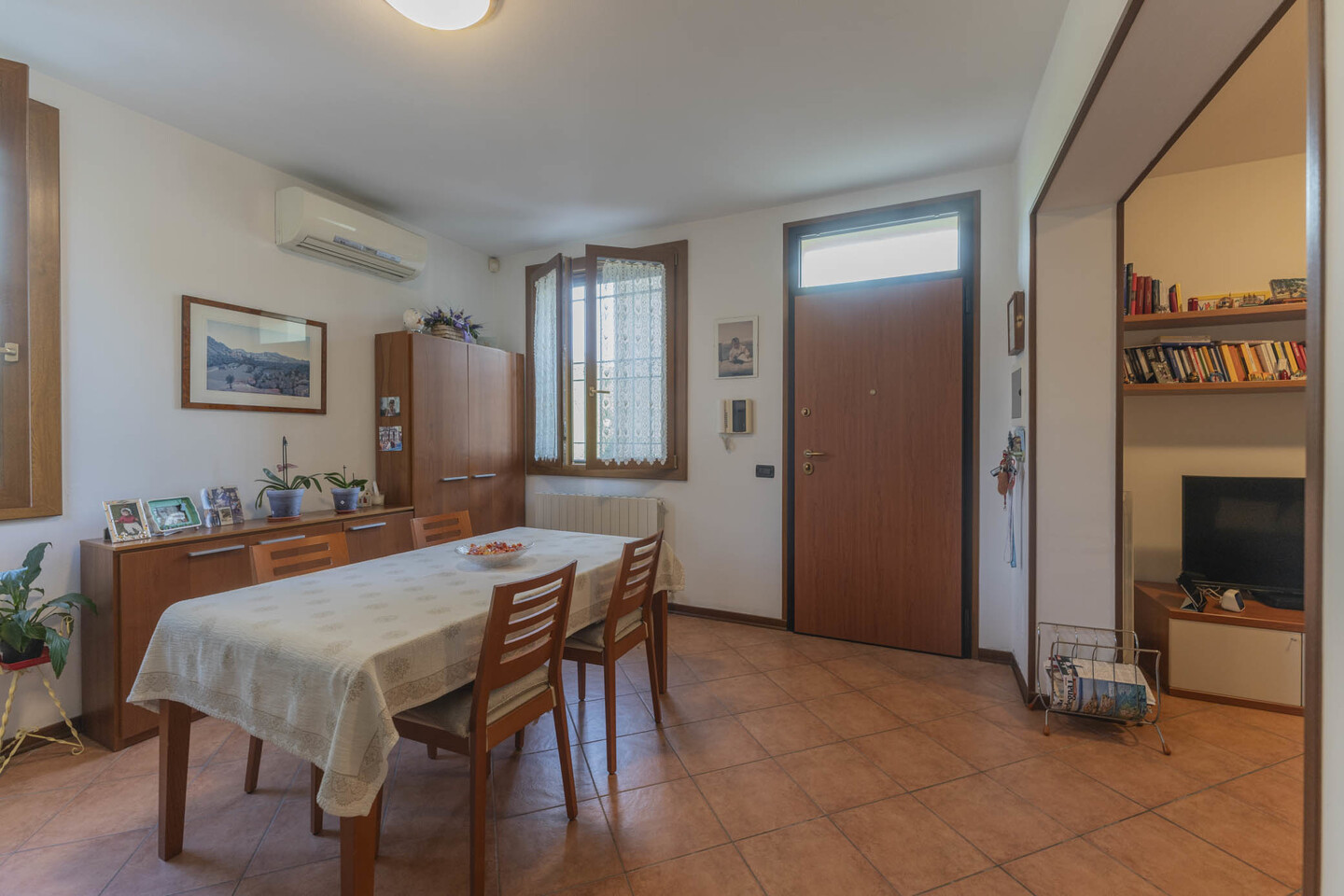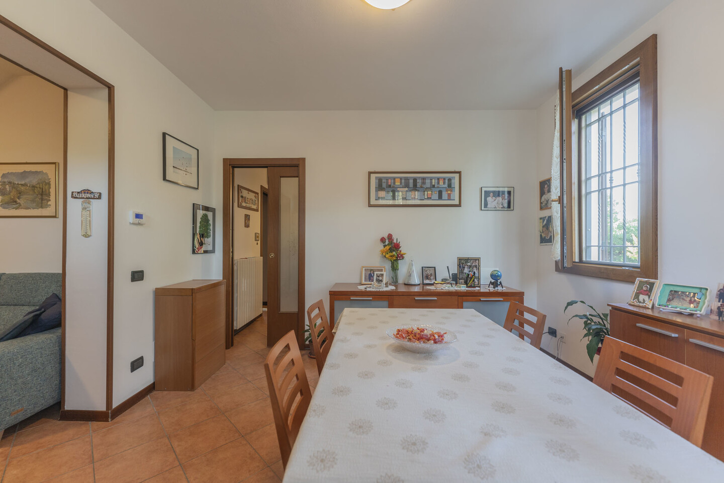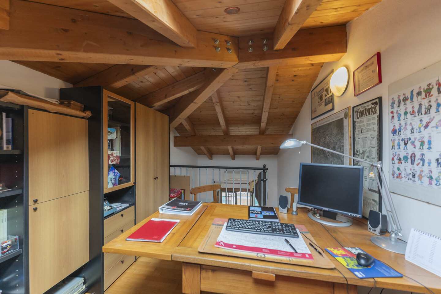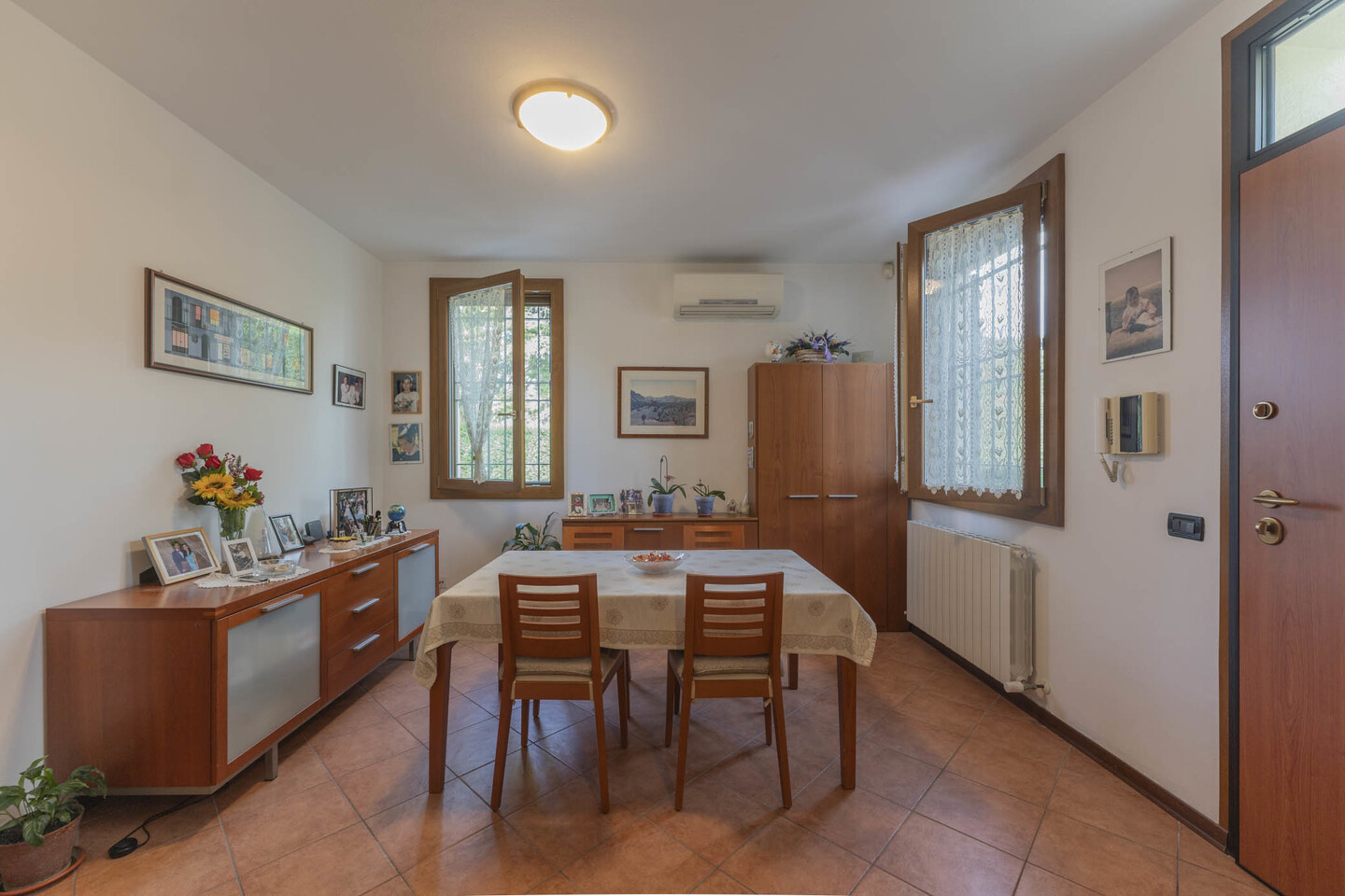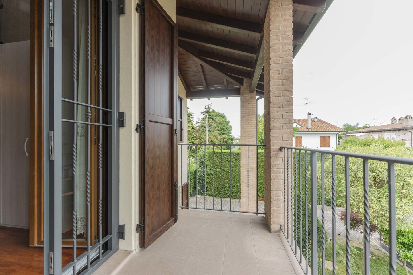L’immobile è sviluppato su due livelli e così composto: al piano terra ingresso indipendente tramite portico esterno su soggiorno, cucina abitabile, disimpegno e bagno. Una scala conduce al primo piano dove troviamo 3 camere da letto (una matrimoniale, una doppia e una singola con soppalco ad uso studio) da due delle quali è possibile accedere direttamente ai due balconi presenti nell’abitazione ed il secondo bagno. Completano la proprietà garage, cantina, giardino privato, due portici esterni (uno davanti e uno sul retro della casa, quest’ultimo accessibile dalla cucina).