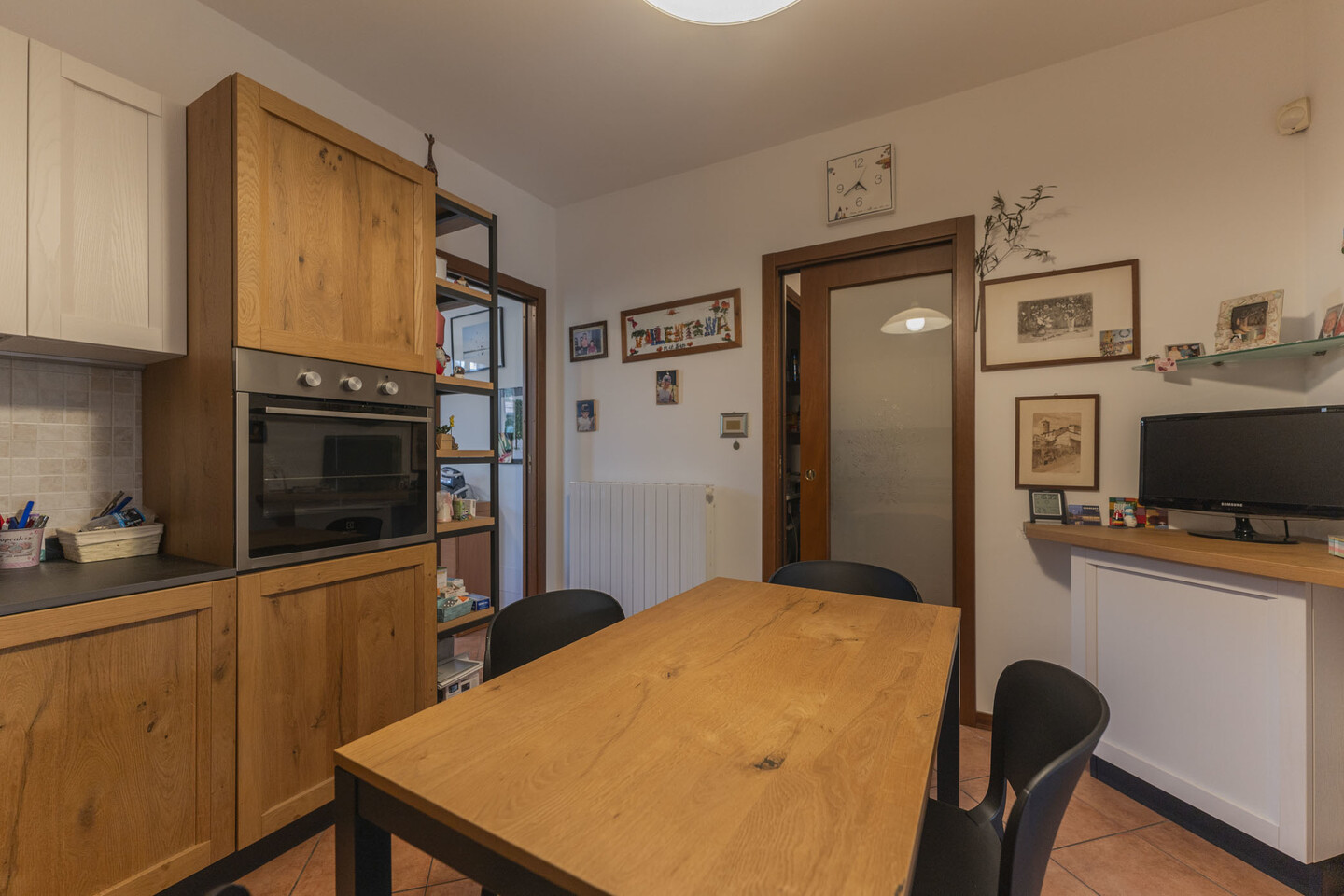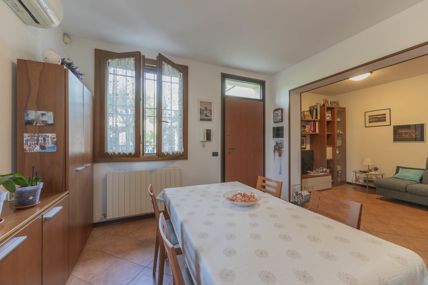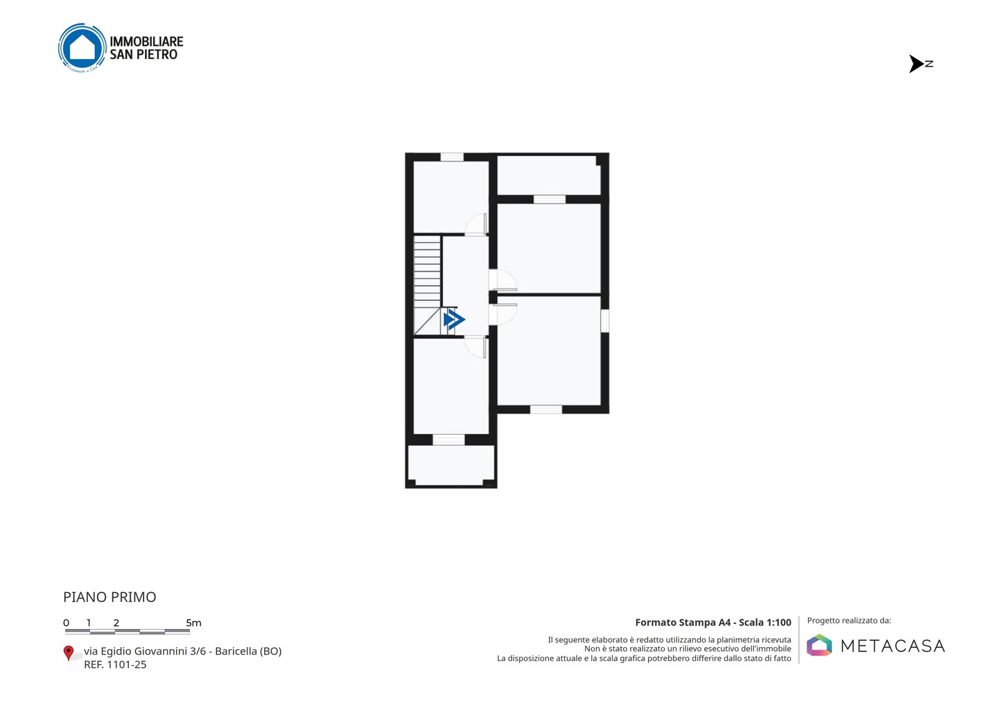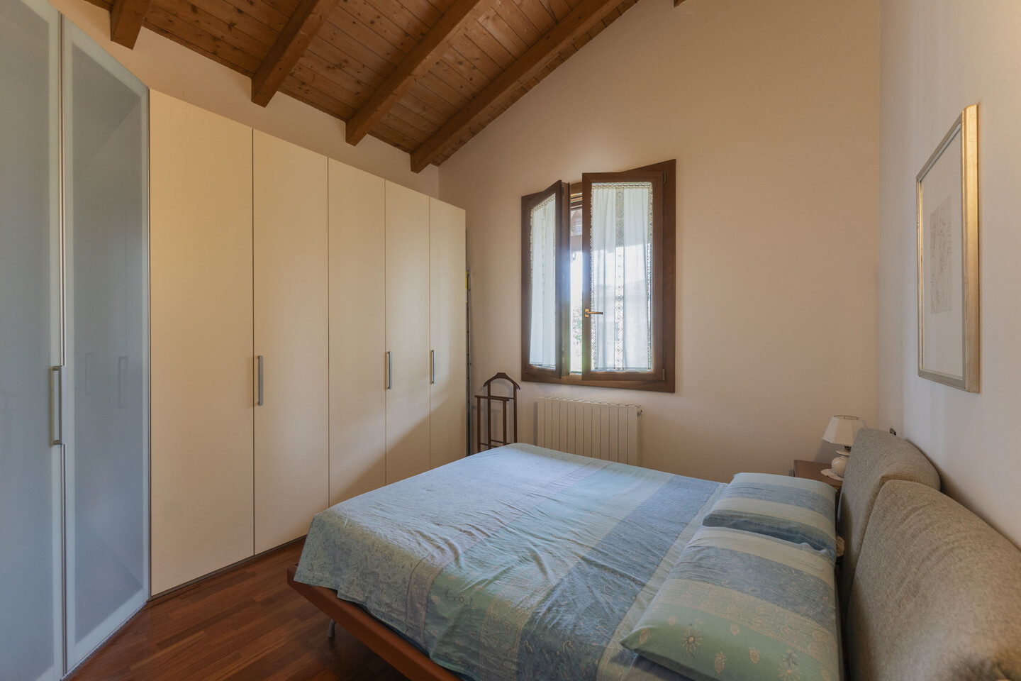 L’immobile è sviluppato su due livelli e così composto: al piano terra ingresso indipendente tramite portico esterno su soggiorno, cucina abitabile, disimpegno e bagno. Una scala conduce al primo piano dove troviamo 3 camere da letto (una matrimoniale, una doppia e una singola con soppalco ad uso studio) da due delle quali è possibile accedere direttamente ai due balconi presenti nell’abitazione ed il secondo bagno. Completano la proprietà garage, cantina, giardino privato, due portici esterni (uno davanti e uno sul retro della casa, quest’ultimo accessibile dalla cucina).