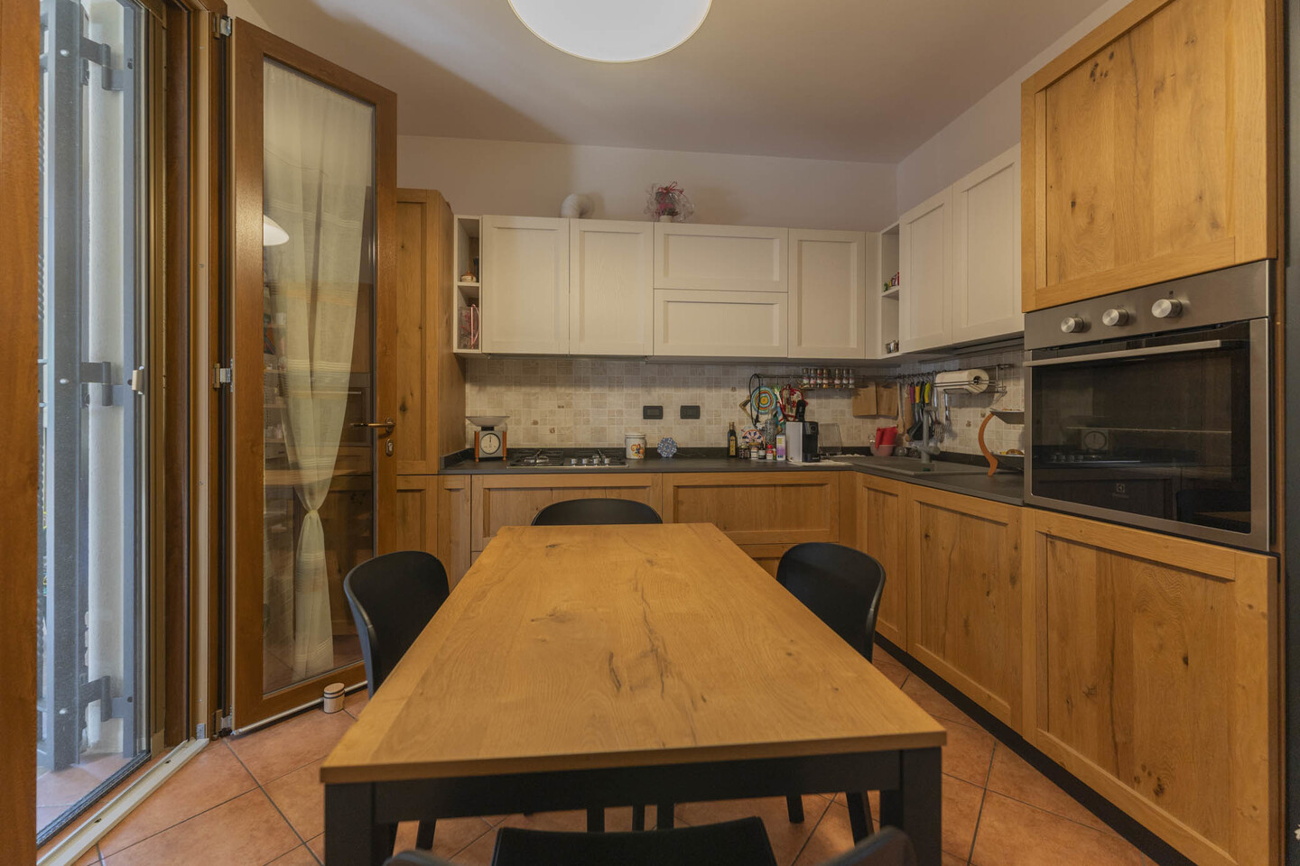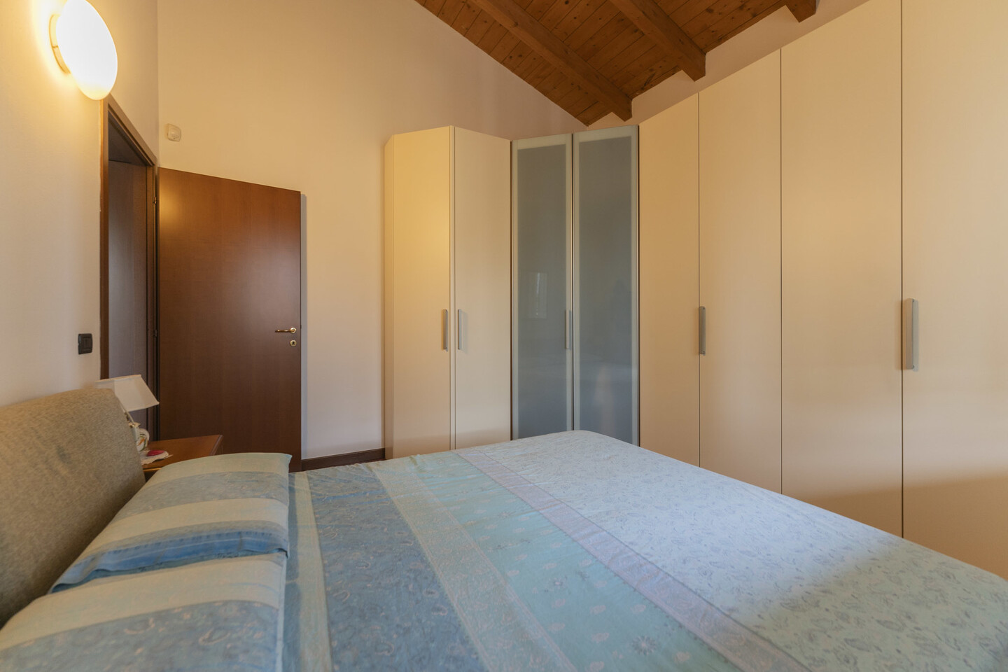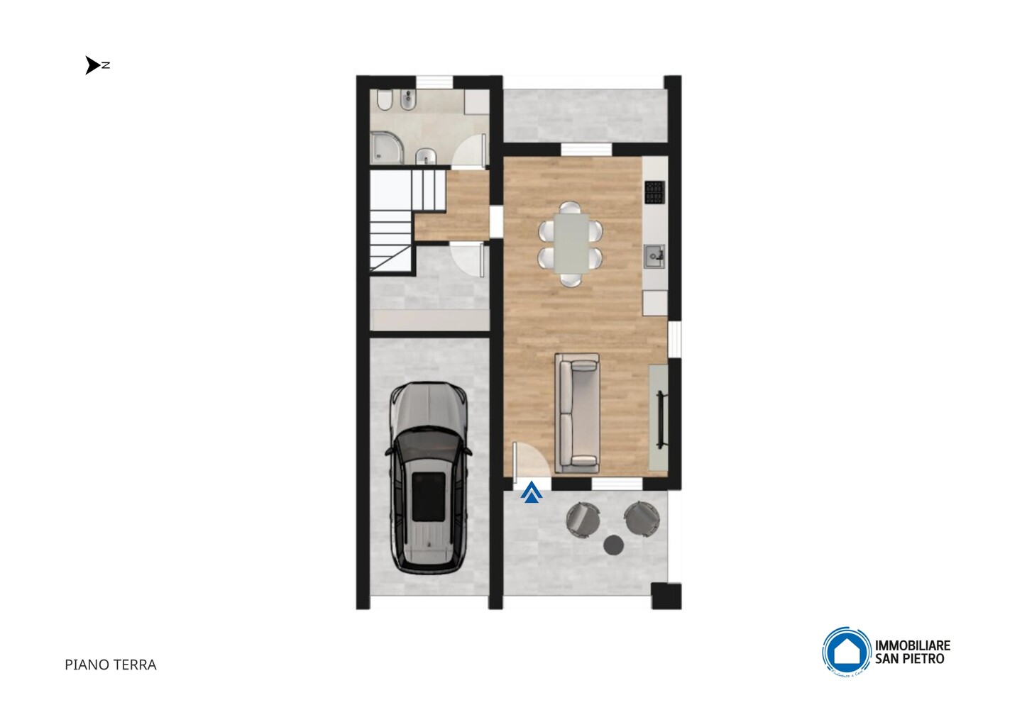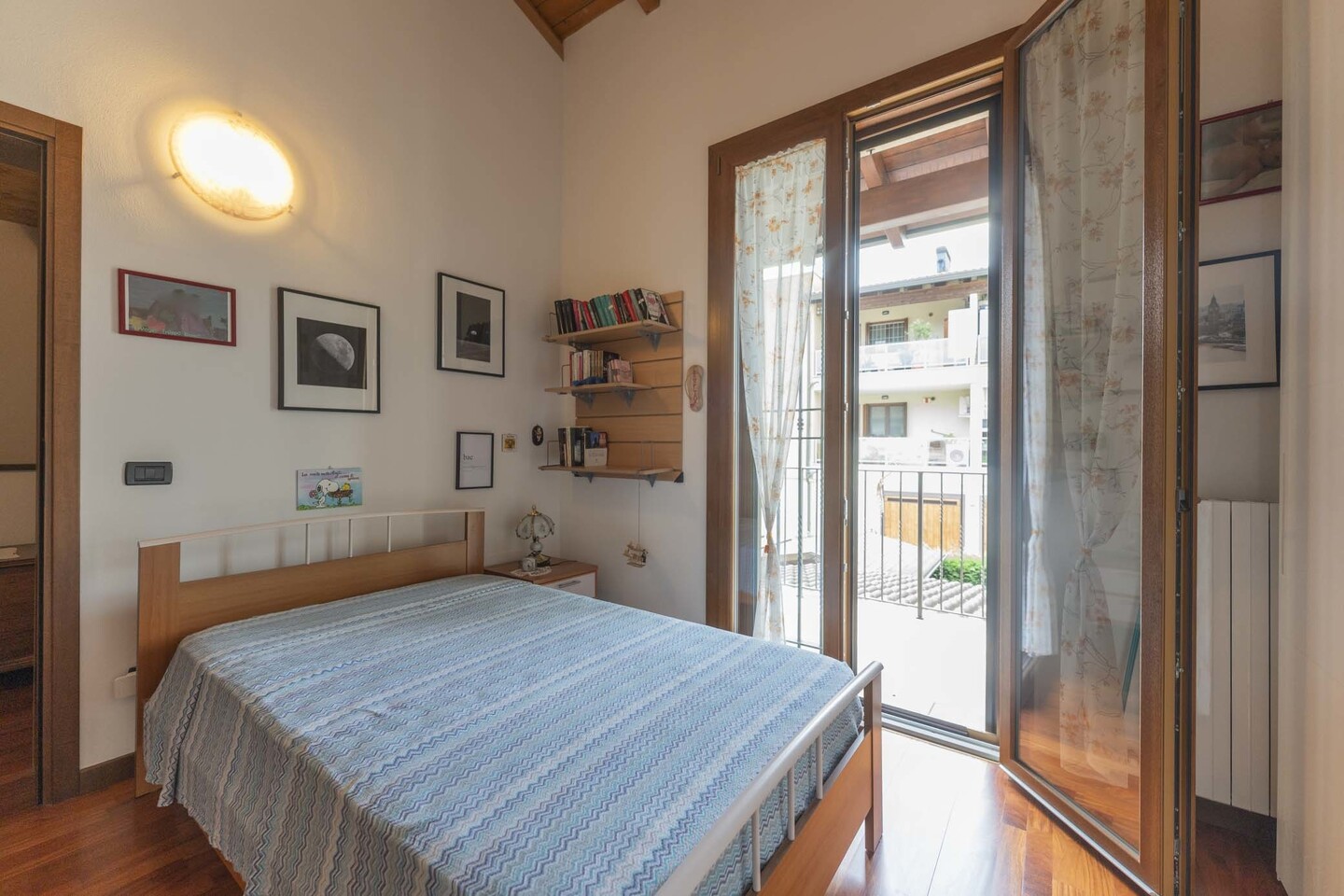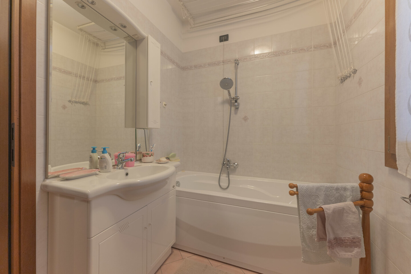 L’immobile è sviluppato su due livelli e così composto: al piano terra ingresso indipendente tramite portico esterno su soggiorno, cucina abitabile, disimpegno e bagno. Una scala conduce al primo piano dove troviamo 3 camere da letto (una matrimoniale, una doppia e una singola con soppalco ad uso studio) da due delle quali è possibile accedere direttamente ai due balconi presenti nell’abitazione ed il secondo bagno. Completano la proprietà garage, cantina, giardino privato, due portici esterni (uno davanti e uno sul retro della casa, quest’ultimo accessibile dalla cucina).