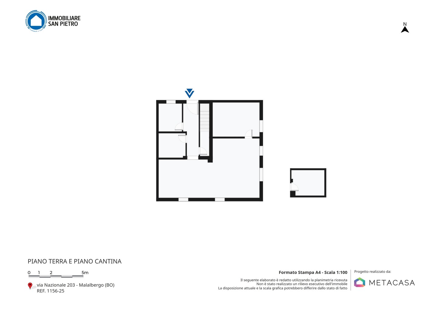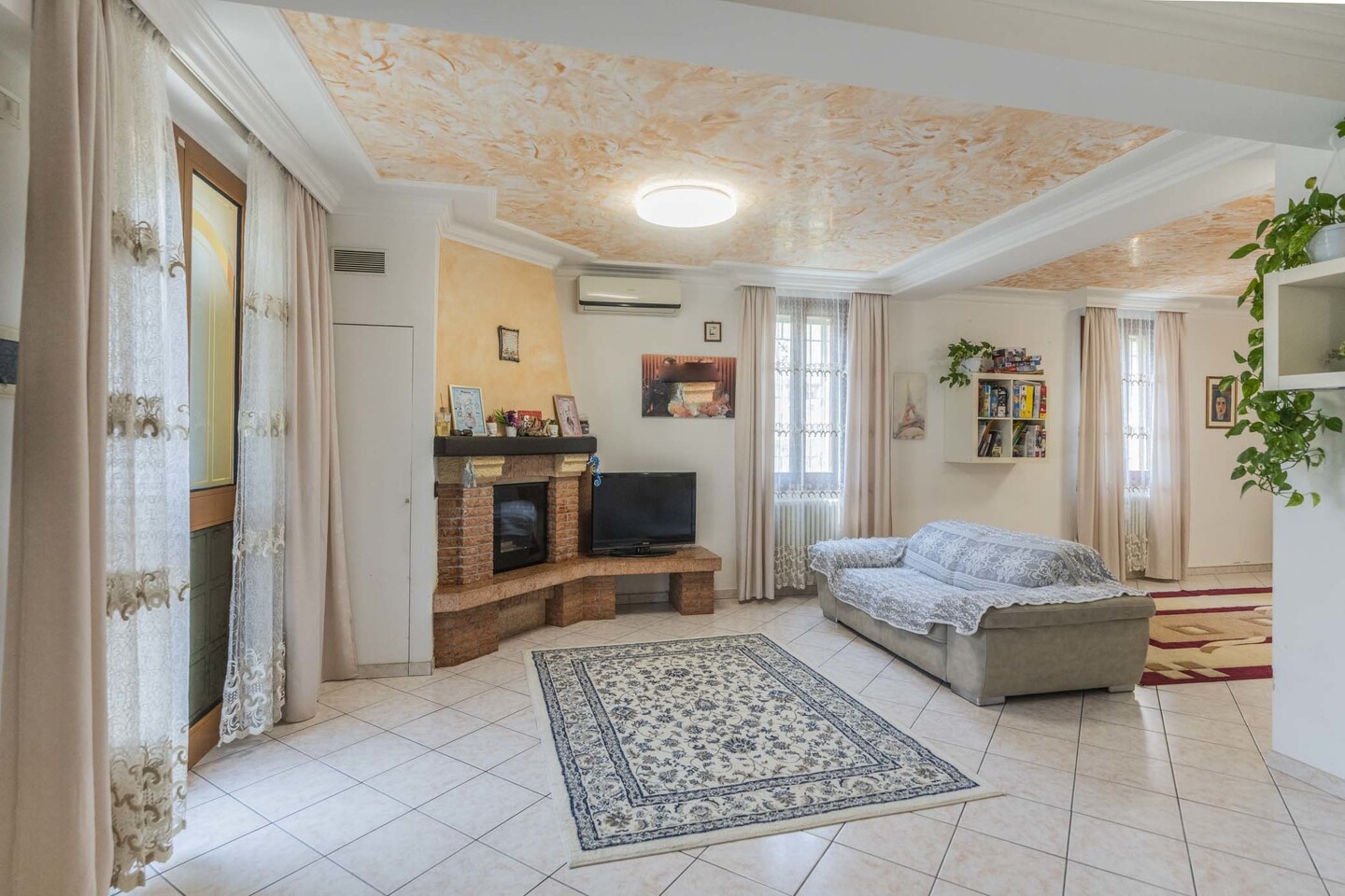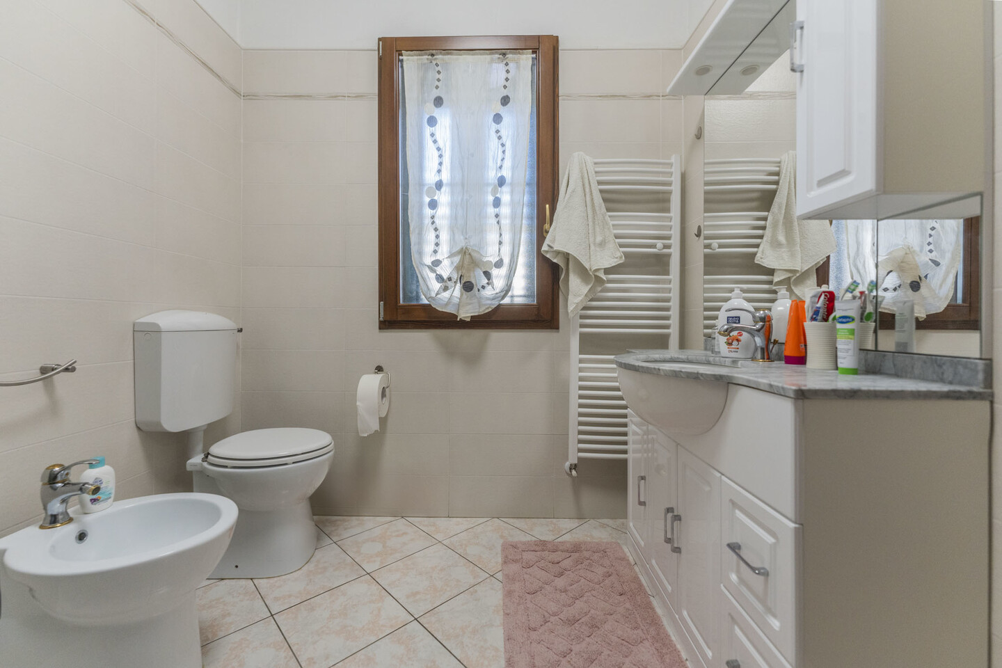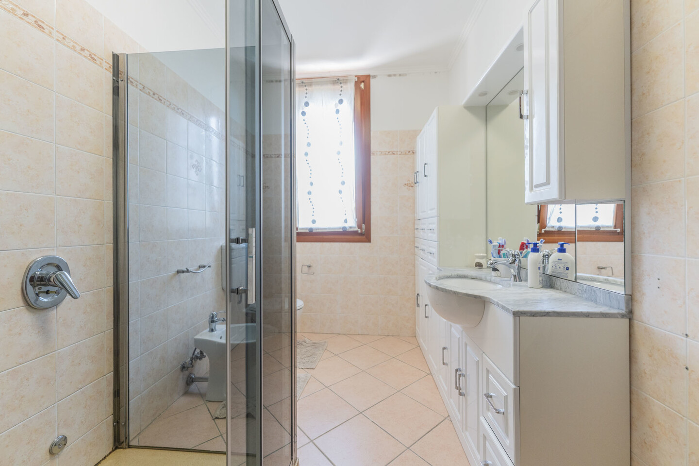 L’immobile è sviluppato su due livelli e così composto: al piano terra ingresso, bagno, comodo ripostiglio/lavanderia, ampio soggiorno con zona pranzo e cucina abitabile. Una scala conduce al primo piano dove troviamo 4 camere da letto (2 matrimoniali e 2 doppie) ed il secondo bagno. Completano la proprietà il garage e le 2 cantine.