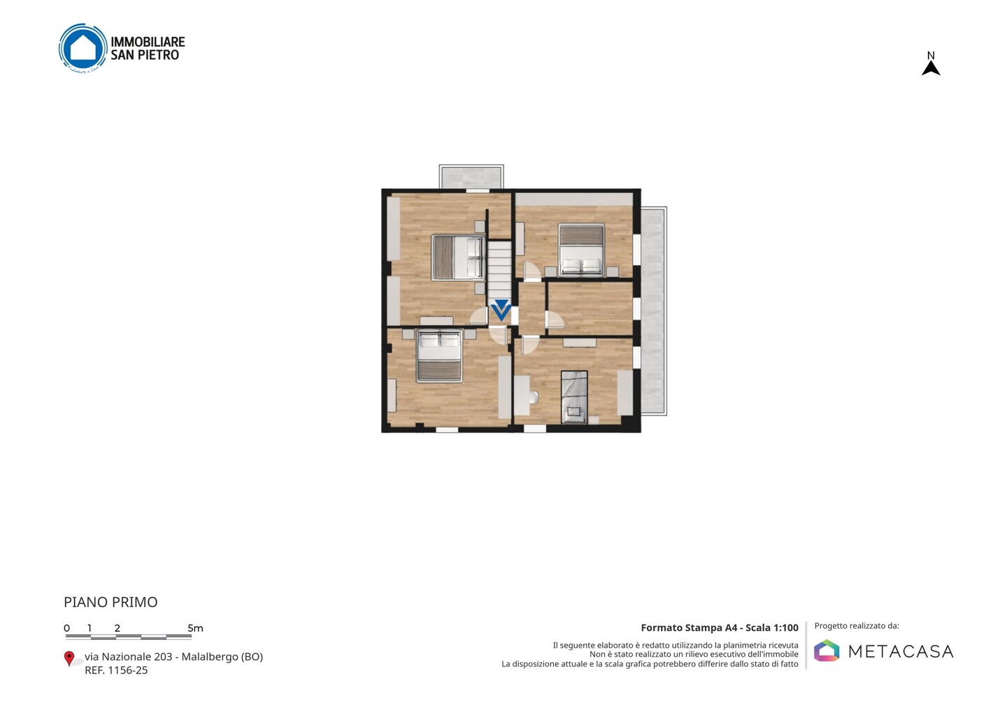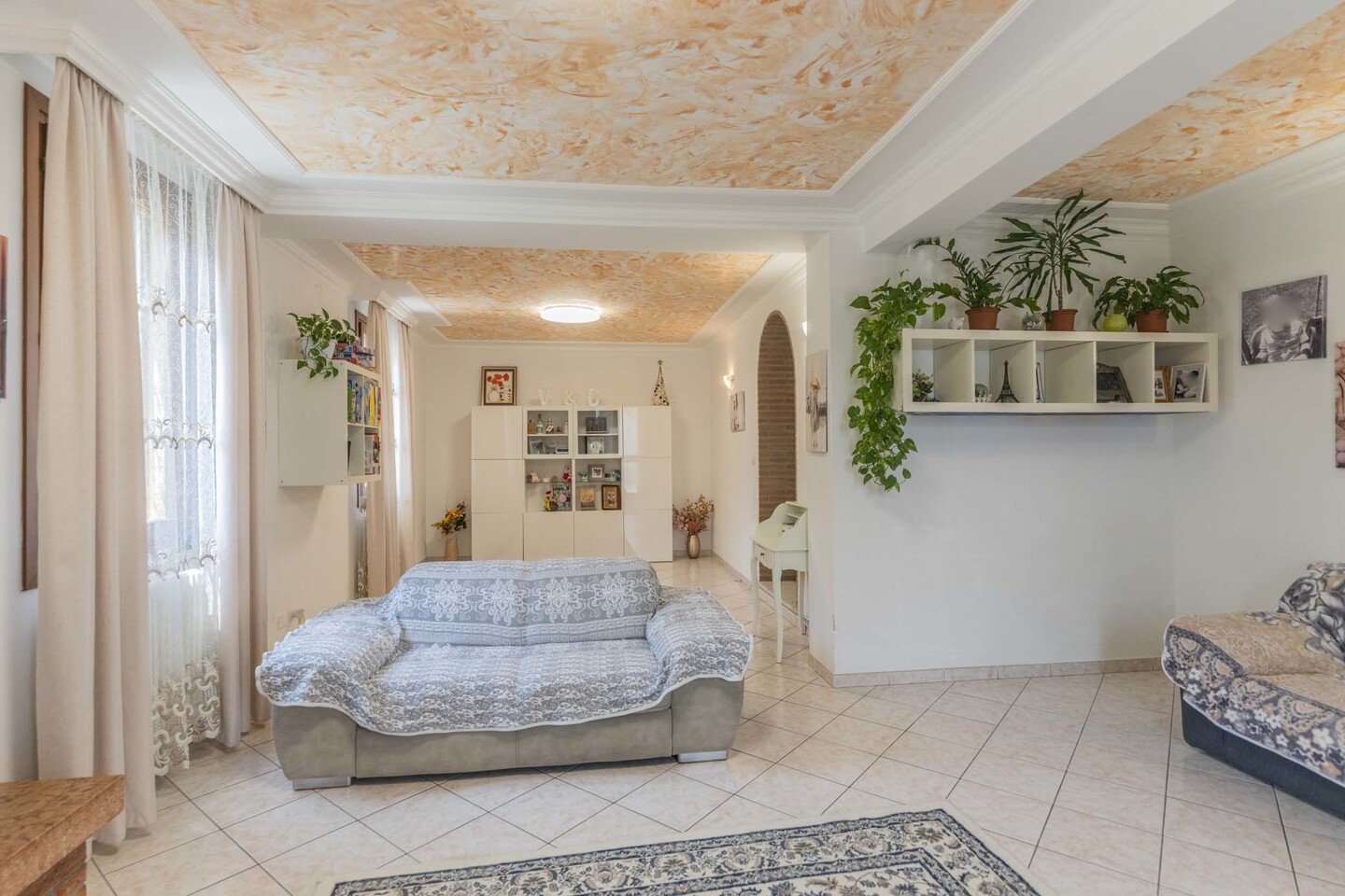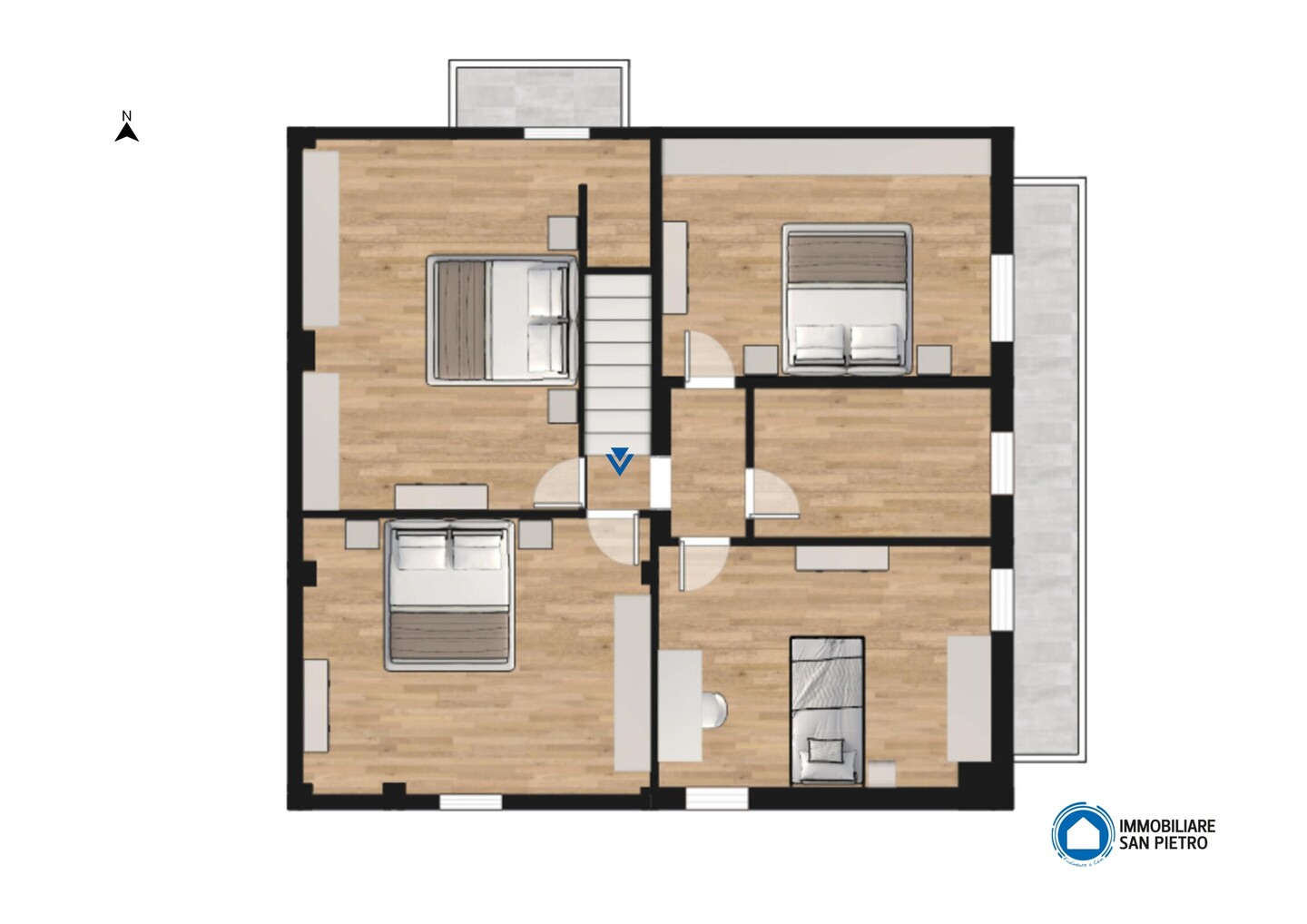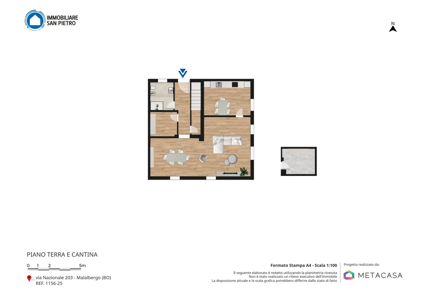 L’immobile è sviluppato su due livelli e così composto: al piano terra ingresso, bagno, comodo ripostiglio/lavanderia, ampio soggiorno con zona pranzo e cucina abitabile. Una scala conduce al primo piano dove troviamo 4 camere da letto (2 matrimoniali e 2 doppie) ed il secondo bagno. Completano la proprietà il garage e le 2 cantine.