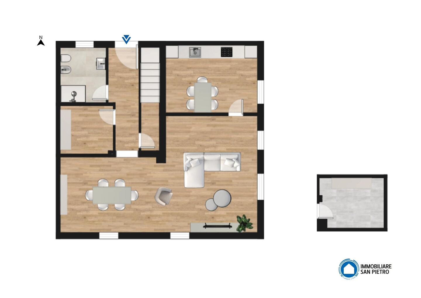 La casa è stata oggetto di importanti lavori di riqualificazione: camino a pellet collegato all’impianto di riscaldamento, infissi in pvc con vetrocamera, tetto rifatto e caldaia di nuova generazione.