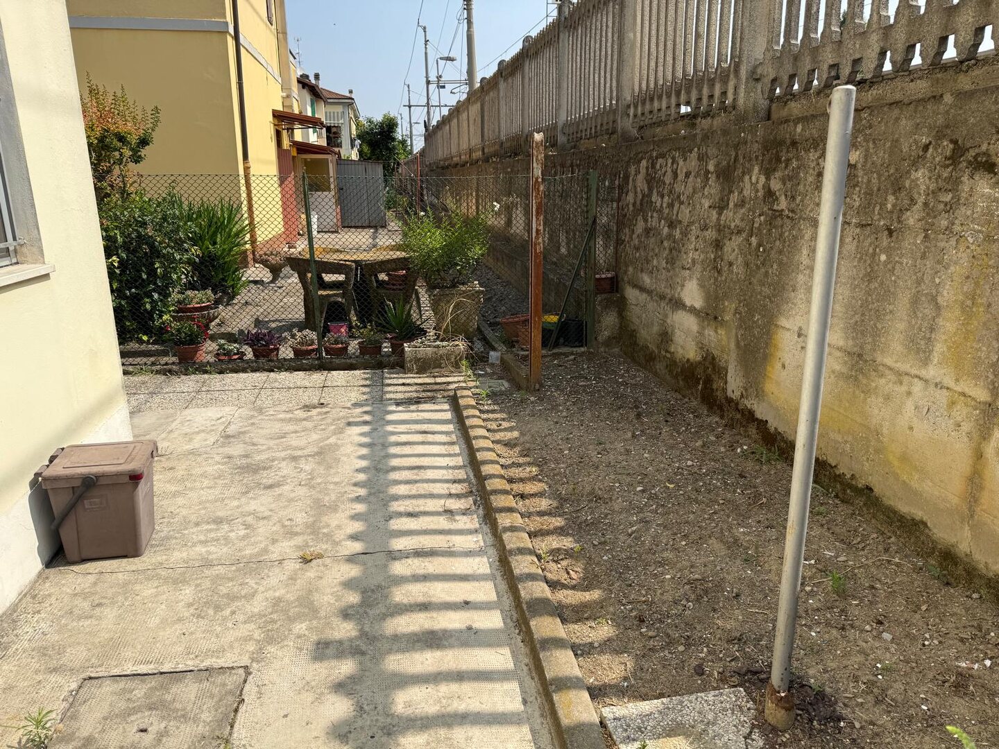 Appartamento bilocale situato al piano terra così sviluppato: ingresso su soggiorno e cucina semi abitabile, una camera matrimoniale e un bagno. Completano la proprietà una cantina esterna ed un giardinetto di proprietà da cui si accede all’appartamento.