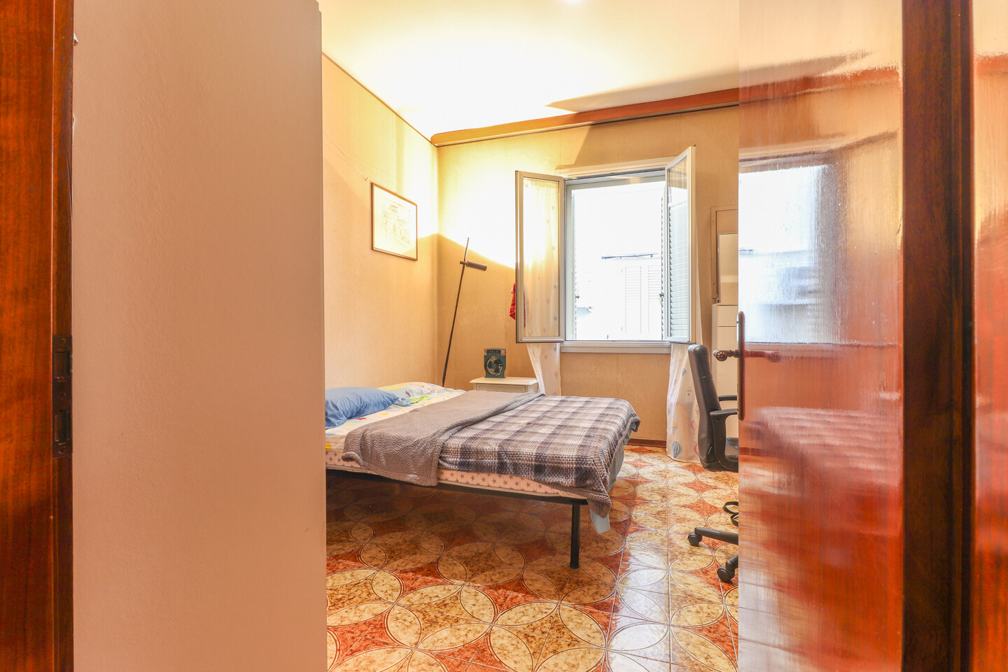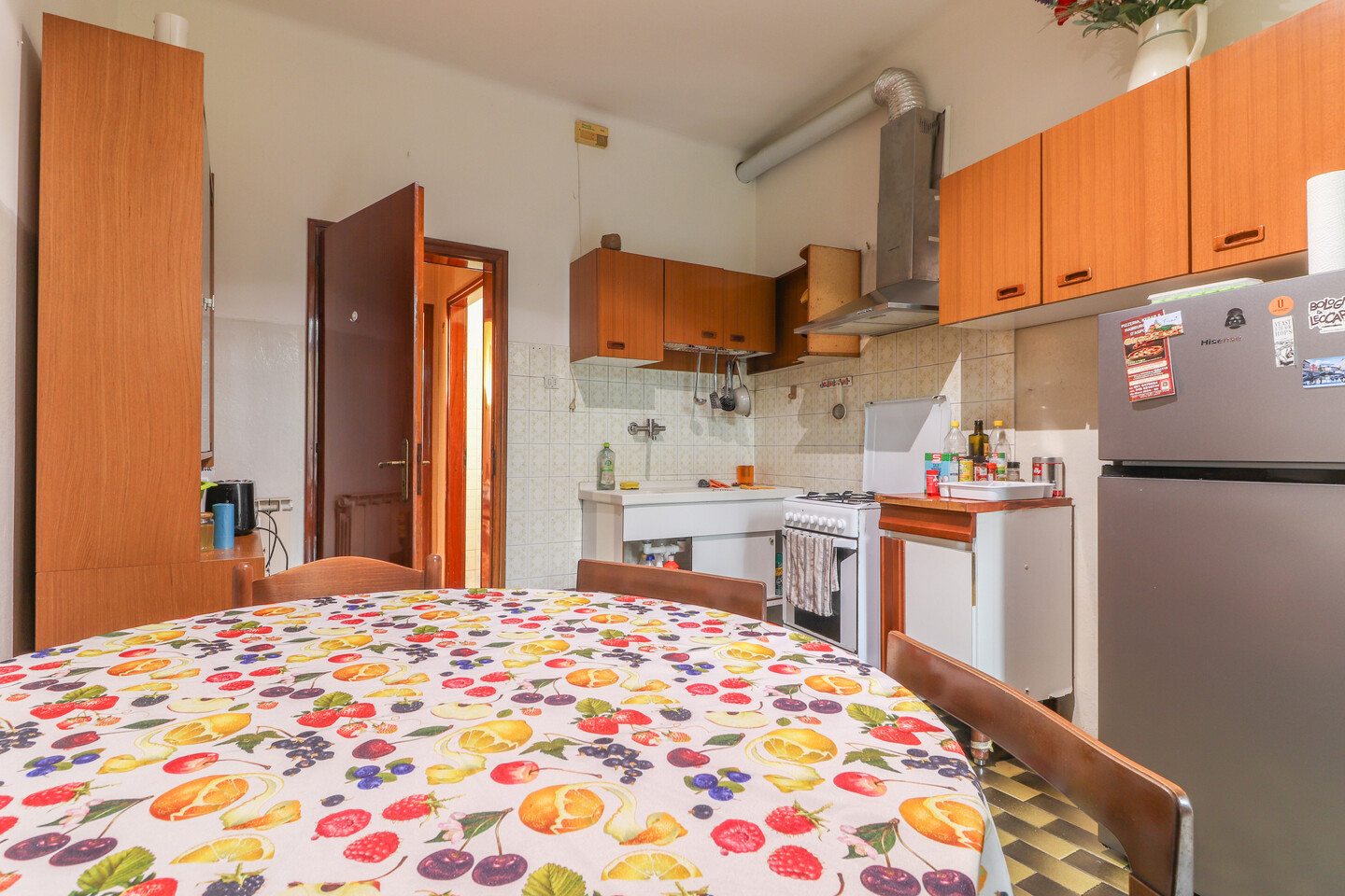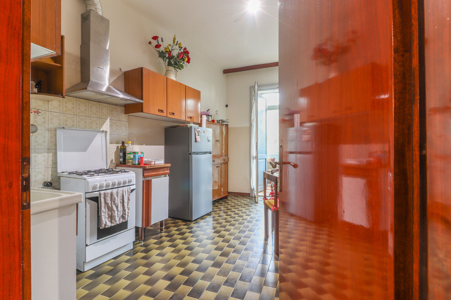 L’appartamento, che si libera a Luglio 2026, è abitabile e dispone di impianti funzionanti, ma necessita di interventi di ristrutturazione e ammodernamento per valorizzarne appieno le potenzialità. È composto da ingresso su corridoio con comodo ripostiglio, sala da pranzo con angolo cottura e accesso diretto al terrazzo, una camera matrimoniale anch’essa con affaccio sul terrazzo, una camera singola, un bagno finestrato e una camera doppia che, a seconda delle esigenze, può essere utilizzata come soggiorno separato dalla cucina abitabile.