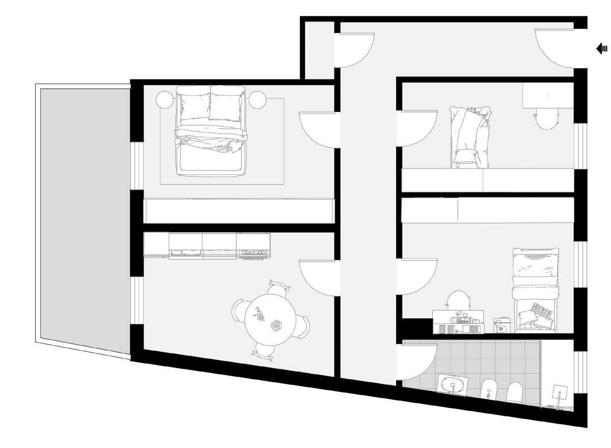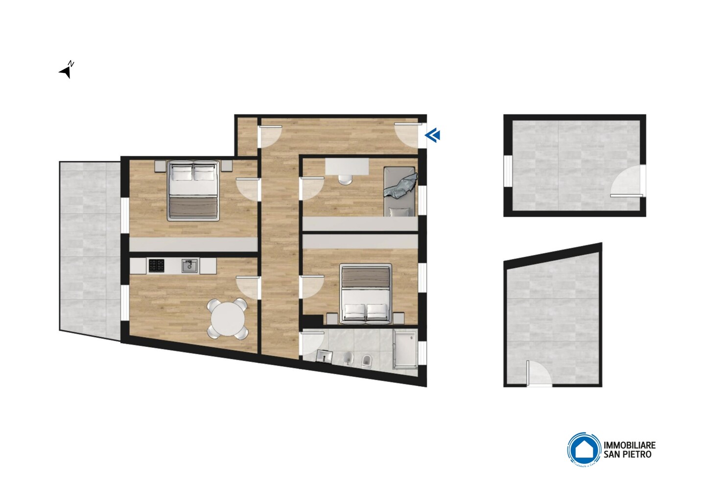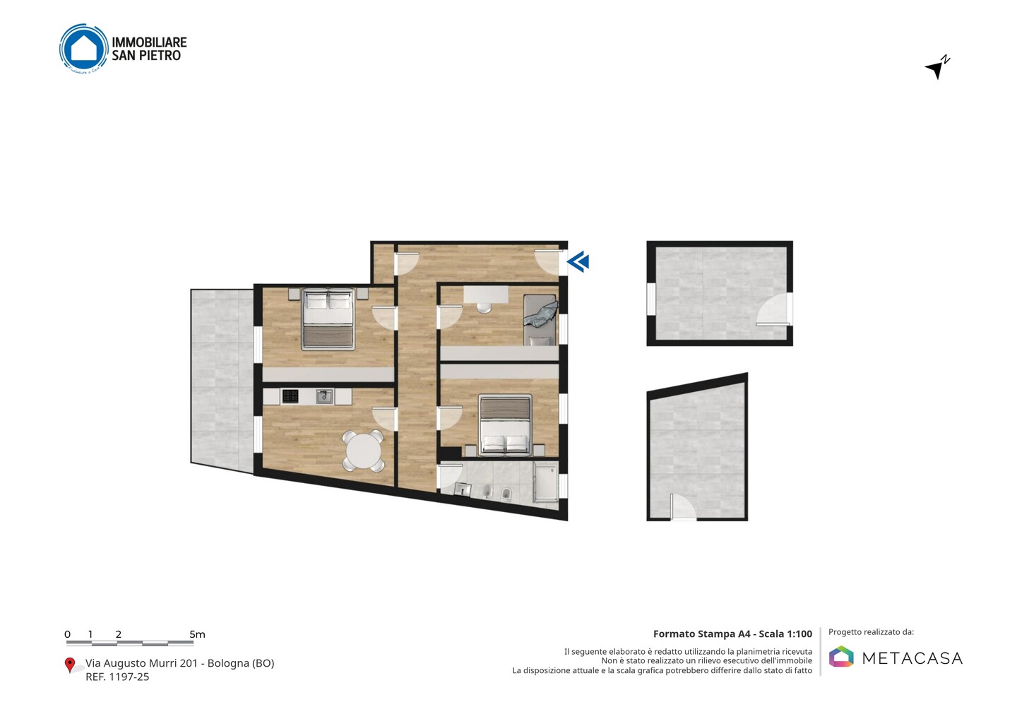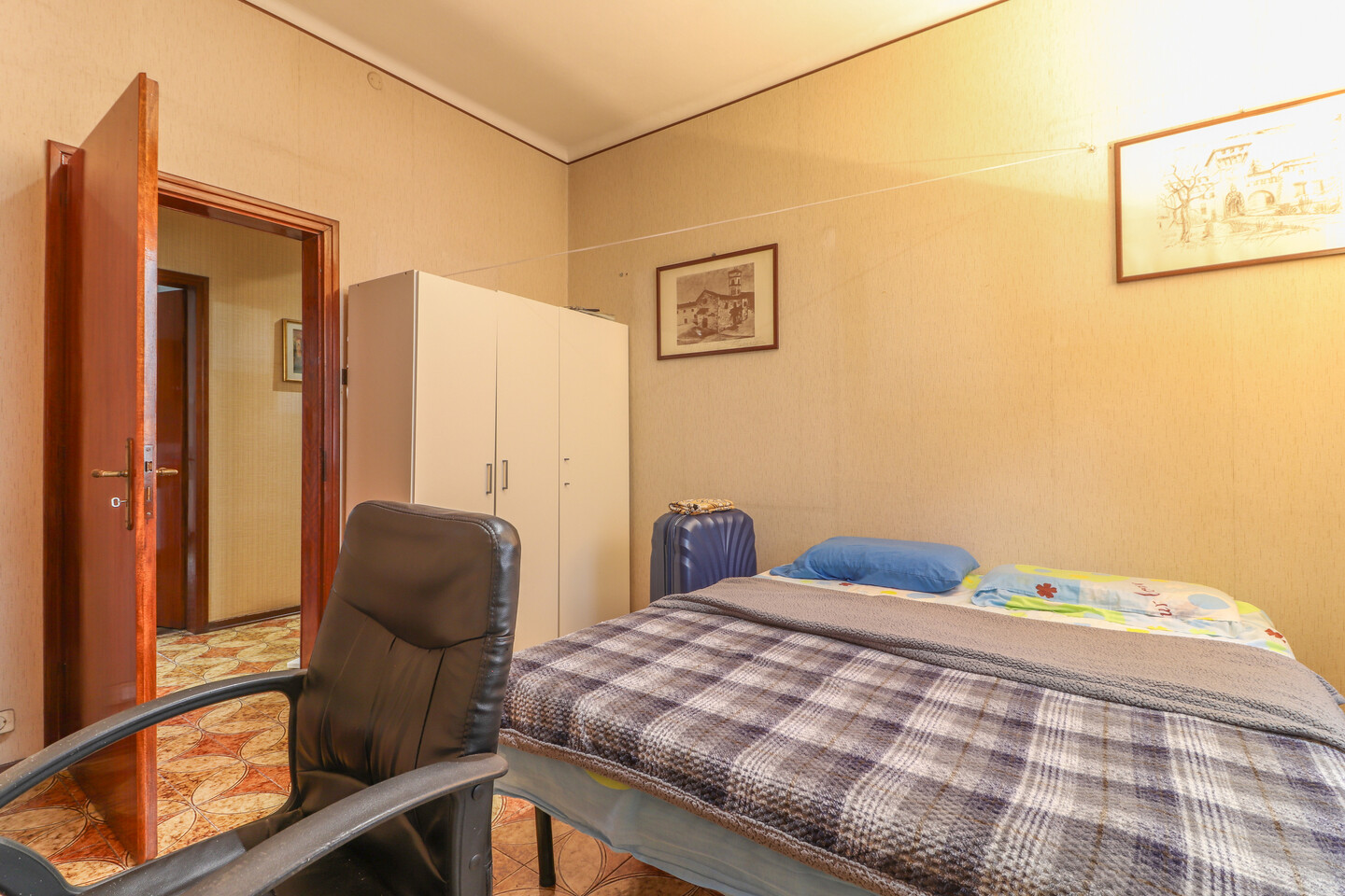 L’appartamento, che si libera a Luglio 2026, è abitabile e dispone di impianti funzionanti, ma necessita di interventi di ristrutturazione e ammodernamento per valorizzarne appieno le potenzialità. È composto da ingresso su corridoio con comodo ripostiglio, sala da pranzo con angolo cottura e accesso diretto al terrazzo, una camera matrimoniale anch’essa con affaccio sul terrazzo, una camera singola, un bagno finestrato e una camera doppia che, a seconda delle esigenze, può essere utilizzata come soggiorno separato dalla cucina abitabile.