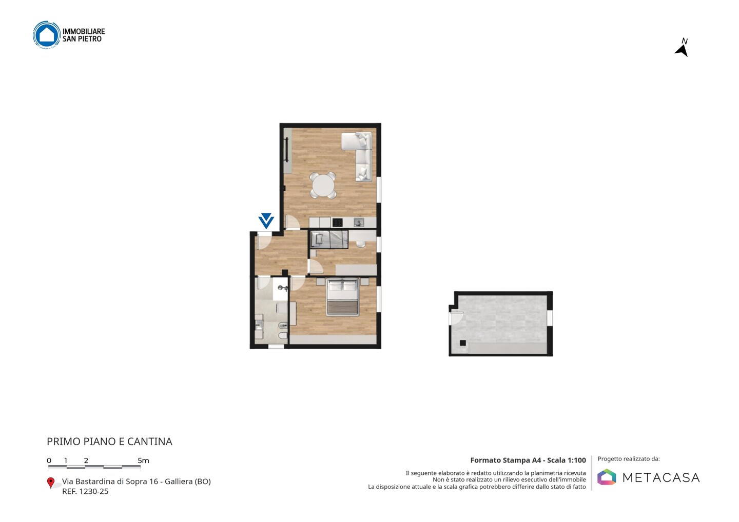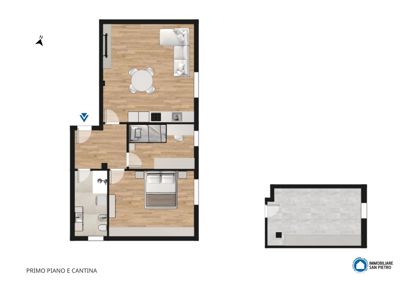 L’appartamento è situato al piano primo di palazzina completamente ricostruita nei primi anni 2000 con solo 6 unità abitative e senza spese condominiali. E’ così composto: ingresso, soggiorno con angolo cottura, una camera matrimoniale, una camera singola ed un bagno. Buono stato di manutenzione e spazi ben gestiti. Completano la proprietà una cantina di 17 mq ed un giardino privato di 75 mq.