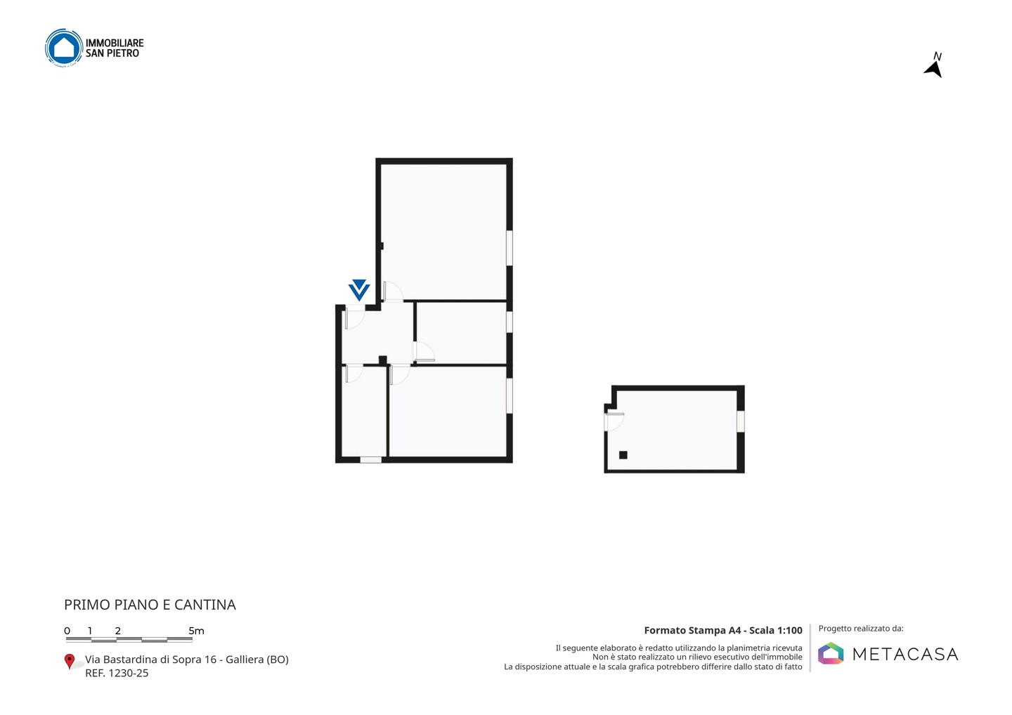 L’appartamento è situato al piano primo di palazzina completamente ricostruita nei primi anni 2000 con solo 6 unità abitative e senza spese condominiali. E’ così composto: ingresso, soggiorno con angolo cottura, una camera matrimoniale, una camera singola ed un bagno. Buono stato di manutenzione e spazi ben gestiti. Completano la proprietà una cantina di 17 mq ed un giardino privato di 75 mq, non collegato all’abitazione.