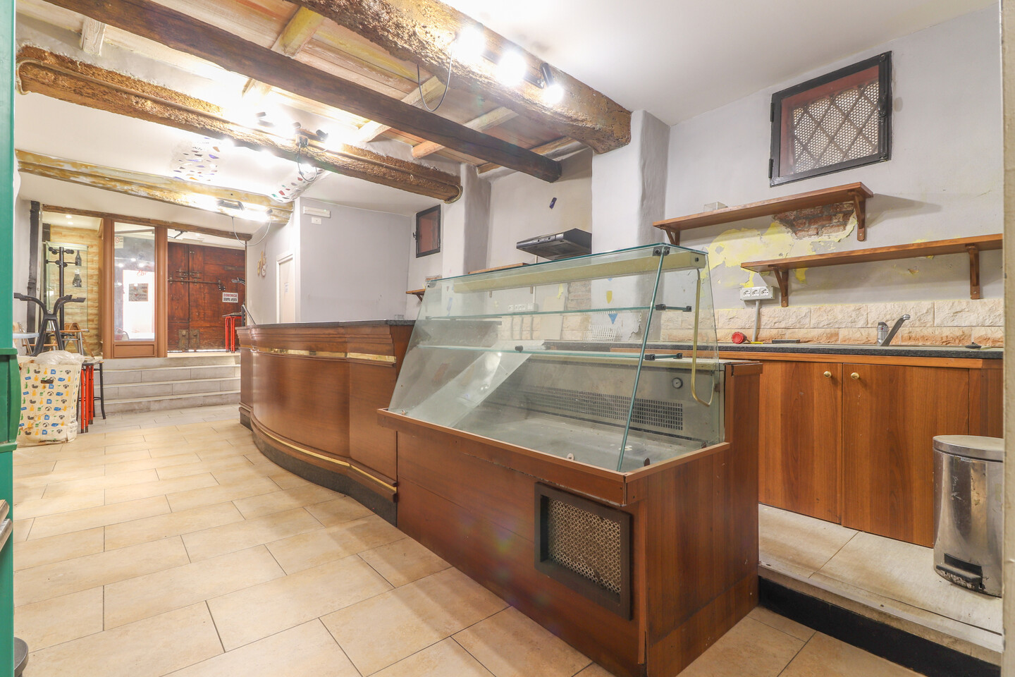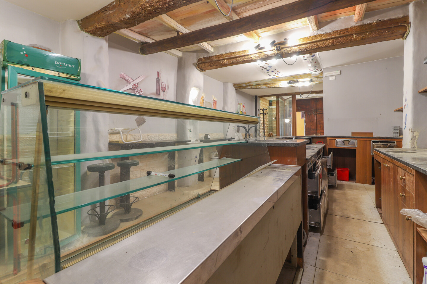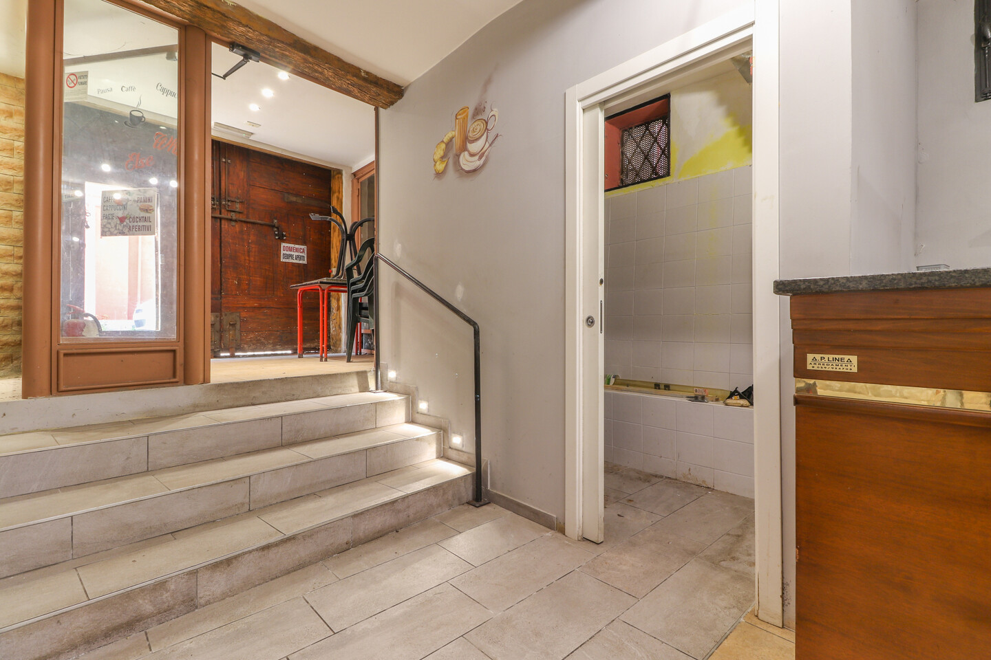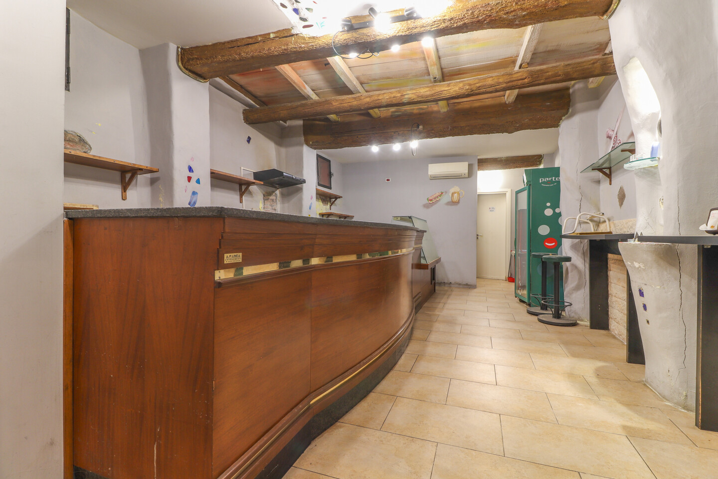 Il locale si sviluppa in un unico livello con ambienti funzionali e ben distribuiti: la sala principale è adatta alla ricezione della clientela con bancone e spazio per tavoli, mentre sul retro sono presenti locali accessori, ripostiglio e doppi servizi igienici, come previsto dalle normative. L’ingresso si presenta con un caratteristico portone blindato in legno direttamente su strada, che conduce a un piccolo spazio esterno pavimentato privato; da qui si accede alla porta vetrata d’ingresso con alcuni scalini che portano all’interno. Lo stato dell’immobile richiede alcuni interventi di aggiornamento, ma offre un’ottima base per personalizzazioni mirate.