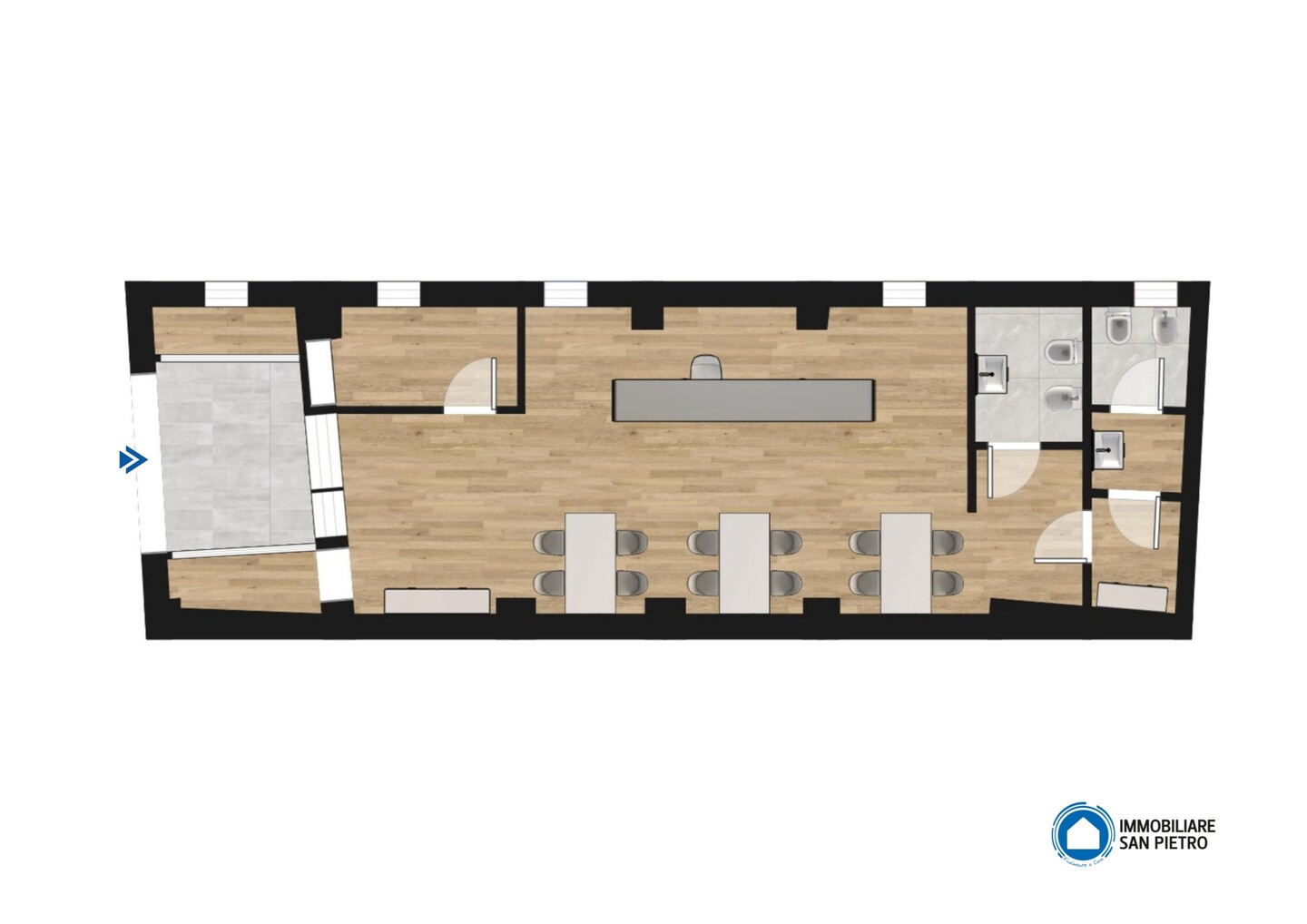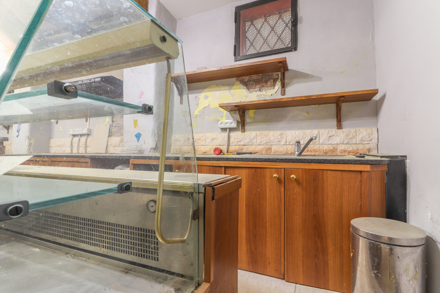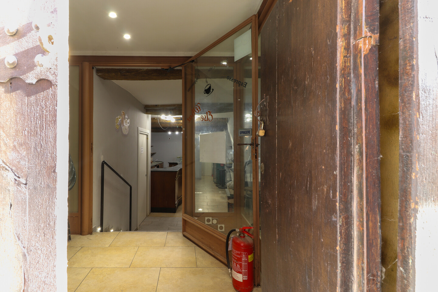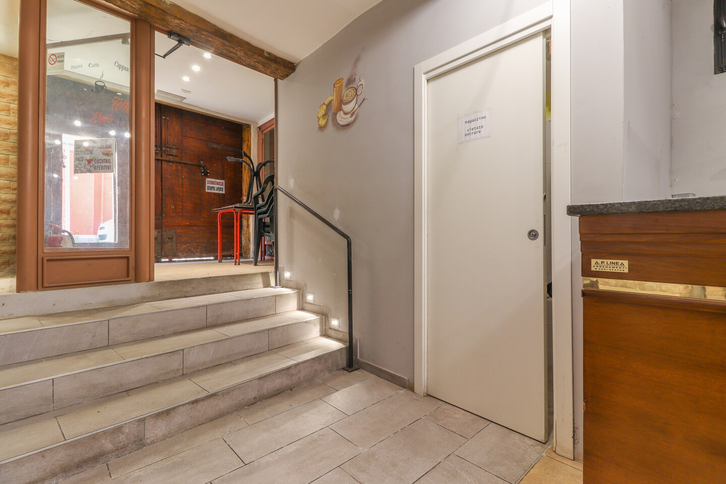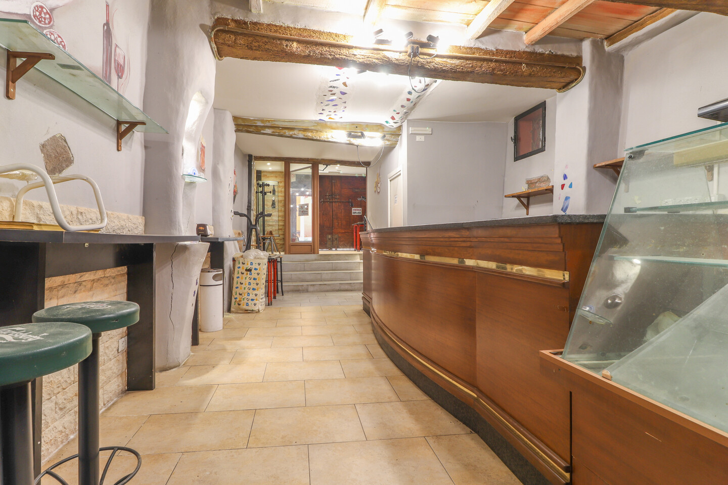 Il locale si sviluppa in un unico livello con ambienti funzionali e ben distribuiti: la sala principale è adatta alla ricezione della clientela con bancone e spazio per tavoli, mentre sul retro sono presenti locali accessori, ripostiglio e doppi servizi igienici, come previsto dalle normative. L’ingresso si presenta con un caratteristico portone blindato in legno direttamente su strada, che conduce a un piccolo spazio esterno pavimentato privato; da qui si accede alla porta vetrata d’ingresso con alcuni scalini che portano all’interno. Lo stato dell’immobile richiede alcuni interventi di aggiornamento, ma offre un’ottima base per personalizzazioni mirate.