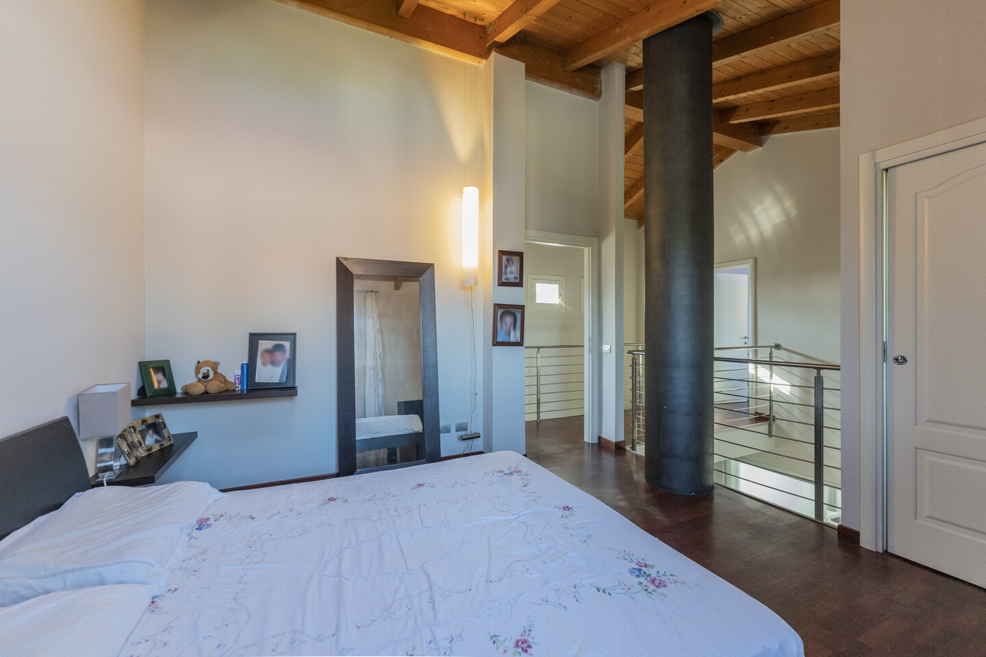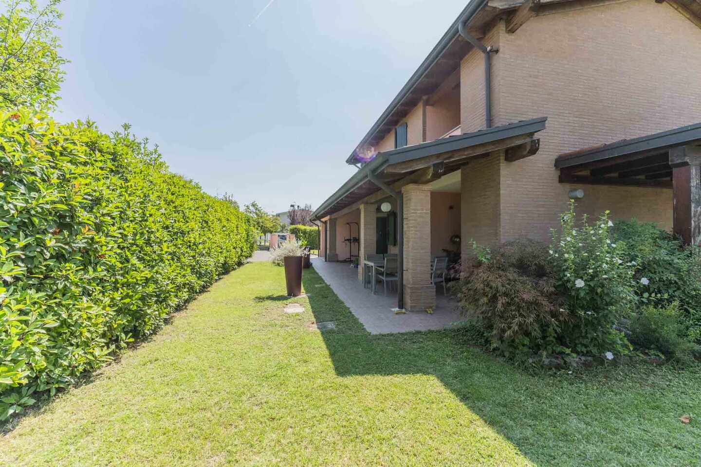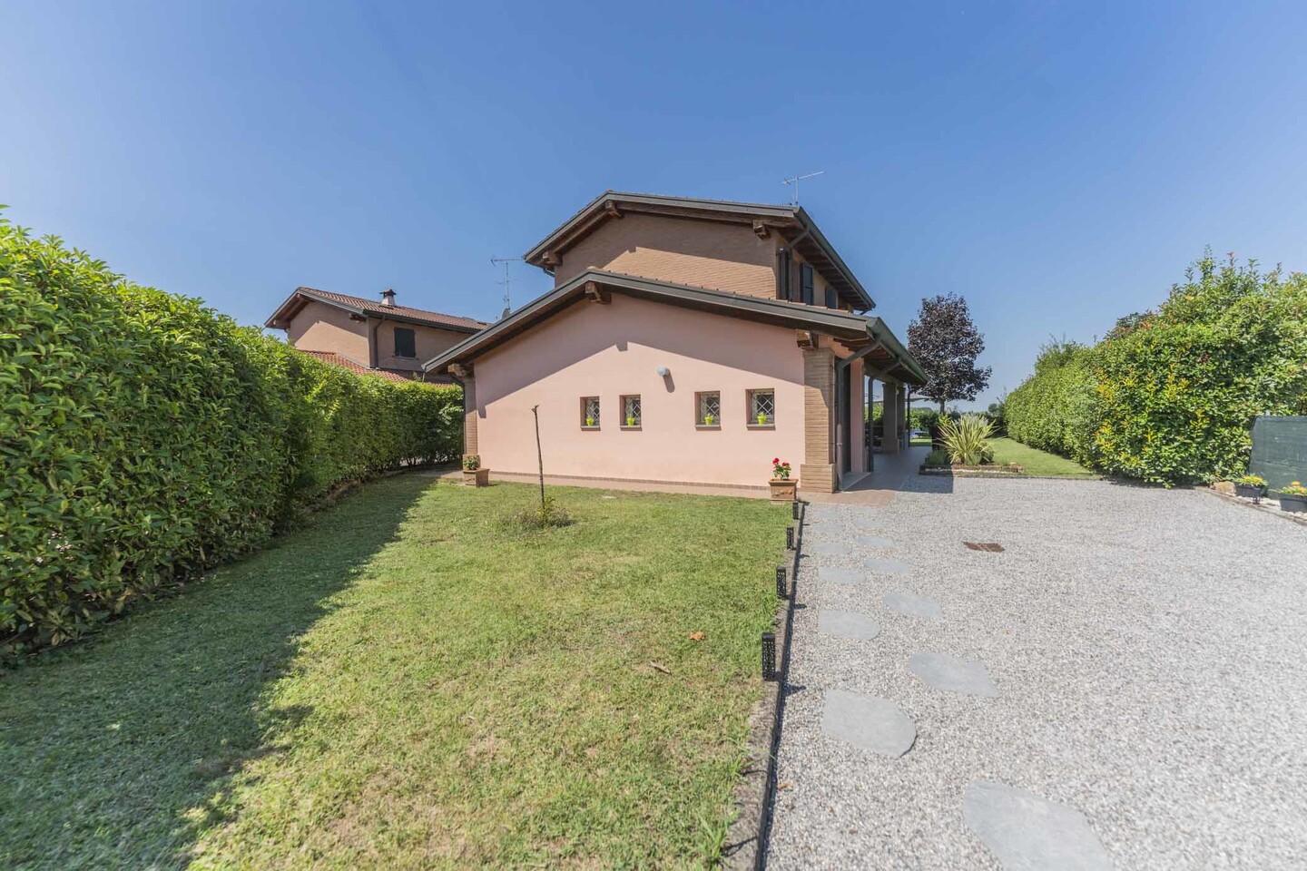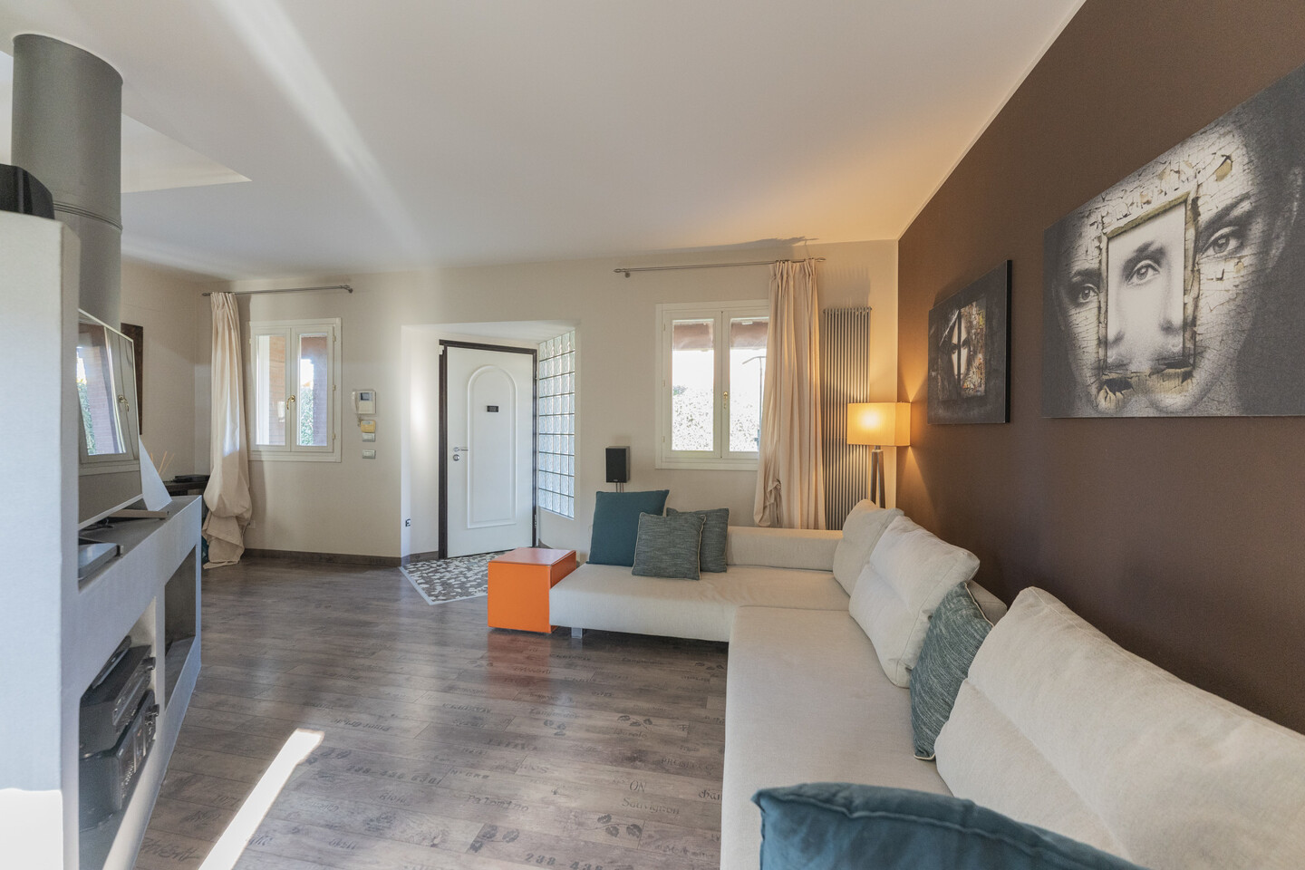 Proponiamo in vendita elegante villa indipendente disposta su due livelli, immersa nella tranquillità e dotata di ampi spazi interni ed esterni. Al piano terra troviamo un ingresso su luminoso soggiorno con camino centrale, una cucina abitabile con accesso diretto al portico esterno, antibagno, bagno finestrato e un suggestivo doppio volume a vista che dona profondità e luce all’ambiente. Il piano primo ospita due camere matrimoniali, di cui una con cabina armadio e l’altra con balcone privato e ripostiglio esterno, oltre a un secondo bagno. Possibilità di realizzare una terza camera da letto, ideale per famiglie o per chi desidera uno studio privato. A completare la proprietà, un generoso giardino privato, perfetto per momenti di relax all’aperto, e garage.