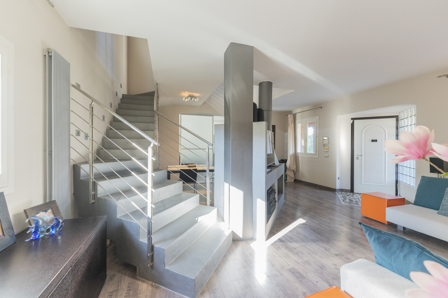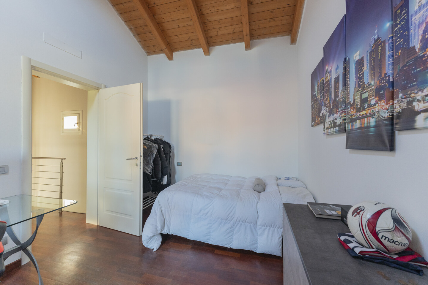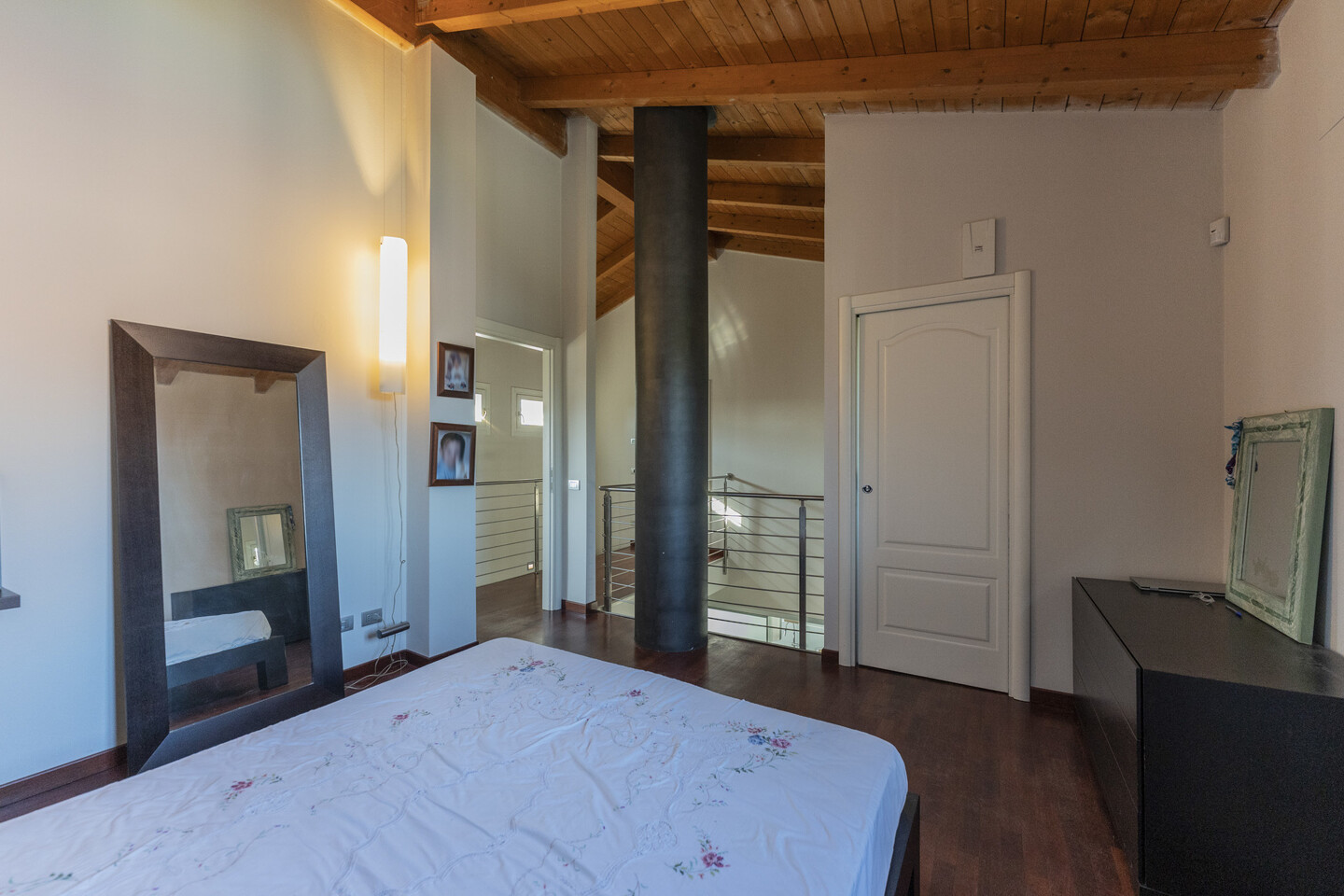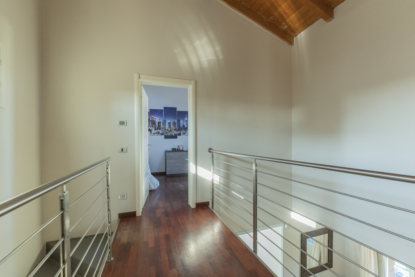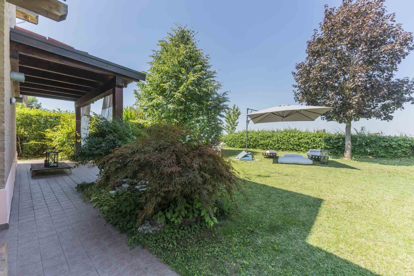 Proponiamo in vendita elegante villa indipendente disposta su due livelli, immersa nella tranquillità e dotata di ampi spazi interni ed esterni. Al piano terra troviamo un ingresso su luminoso soggiorno con camino centrale, una cucina abitabile con accesso diretto al portico esterno, antibagno, bagno finestrato e un suggestivo doppio volume a vista che dona profondità e luce all’ambiente. Il piano primo ospita due camere matrimoniali, di cui una con cabina armadio e l’altra con balcone privato e ripostiglio esterno, oltre a un secondo bagno. Possibilità di realizzare una terza camera da letto, ideale per famiglie o per chi desidera uno studio privato. A completare la proprietà, un generoso giardino privato, perfetto per momenti di relax all’aperto, e garage.