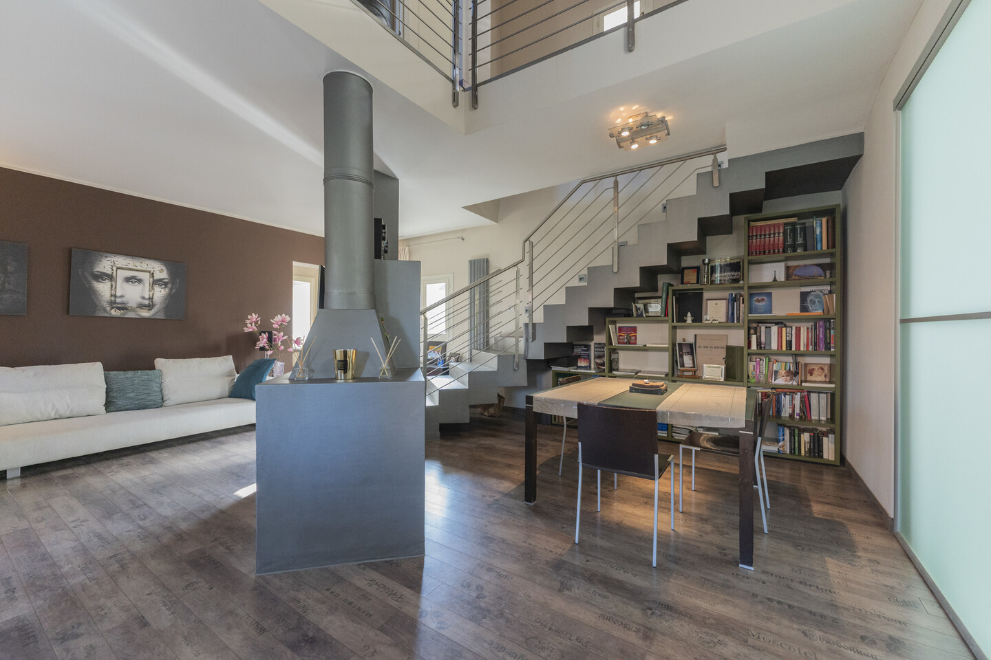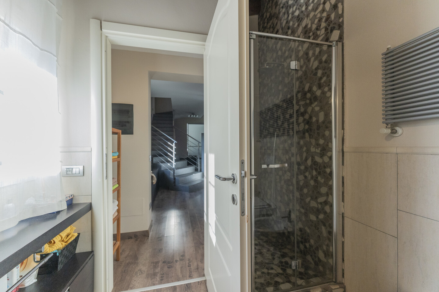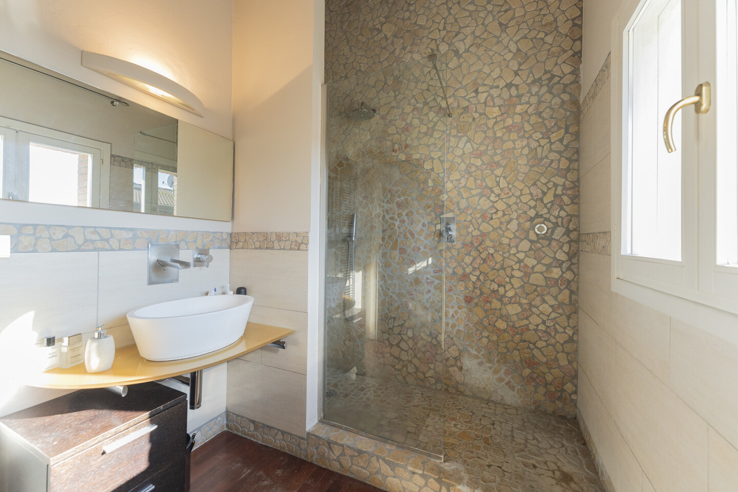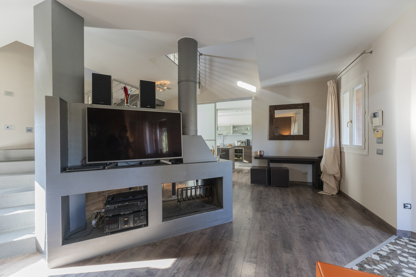 Proponiamo in vendita elegante villa indipendente disposta su due livelli, immersa nella tranquillità e dotata di ampi spazi interni ed esterni. Al piano terra troviamo un ingresso su luminoso soggiorno con camino centrale, una cucina abitabile con accesso diretto al portico esterno, antibagno, bagno finestrato e un suggestivo doppio volume a vista che dona profondità e luce all’ambiente. Il piano primo ospita due camere matrimoniali, di cui una con cabina armadio e l’altra con balcone privato e ripostiglio esterno, oltre a un secondo bagno. Possibilità di realizzare una terza camera da letto, ideale per famiglie o per chi desidera uno studio privato. A completare la proprietà, un generoso giardino privato, perfetto per momenti di relax all’aperto, e garage.