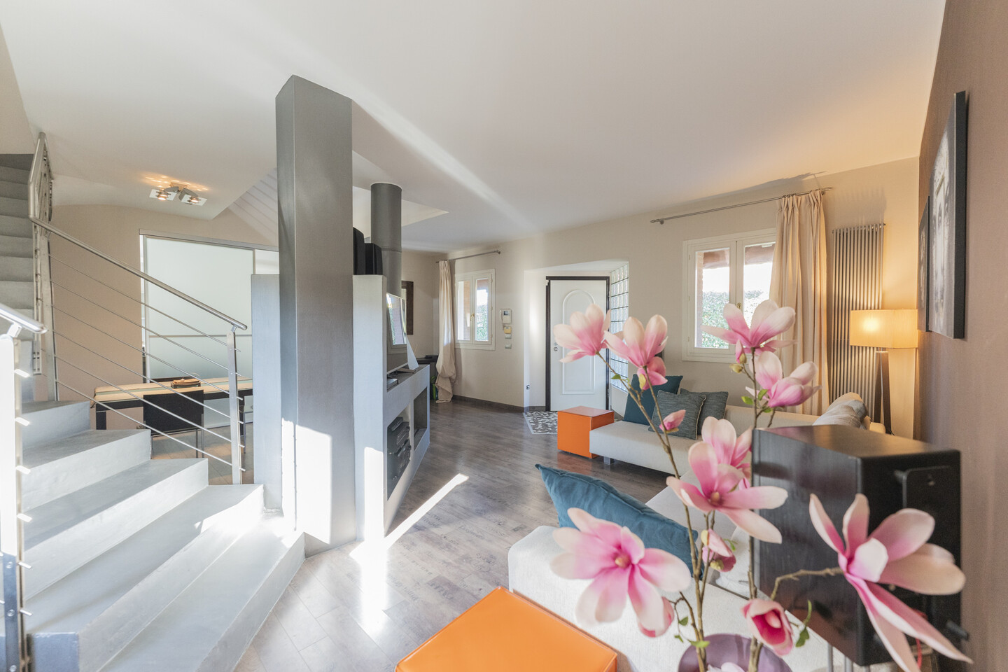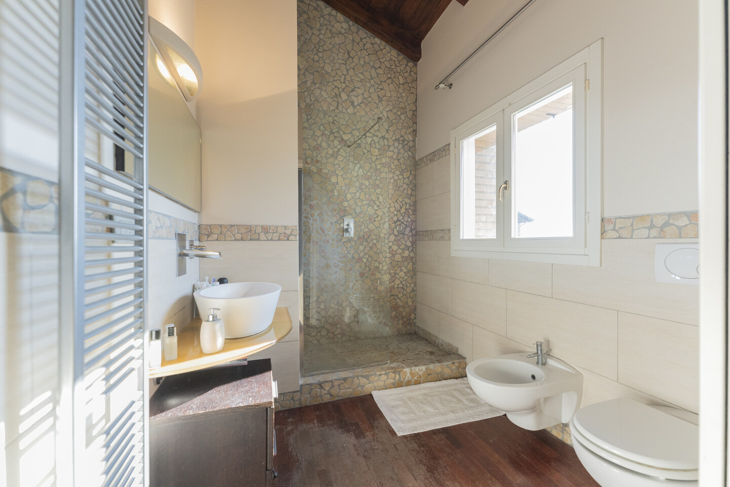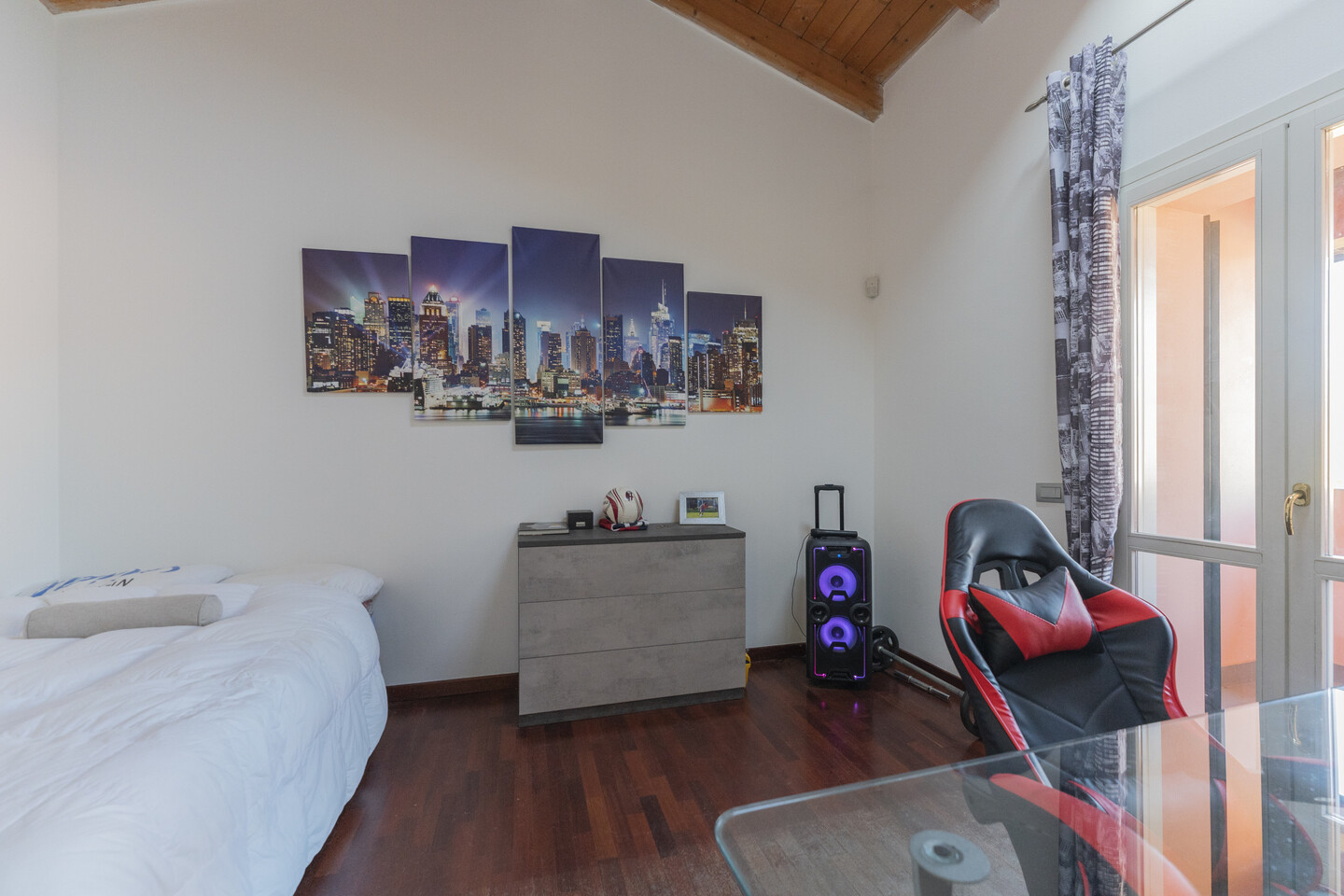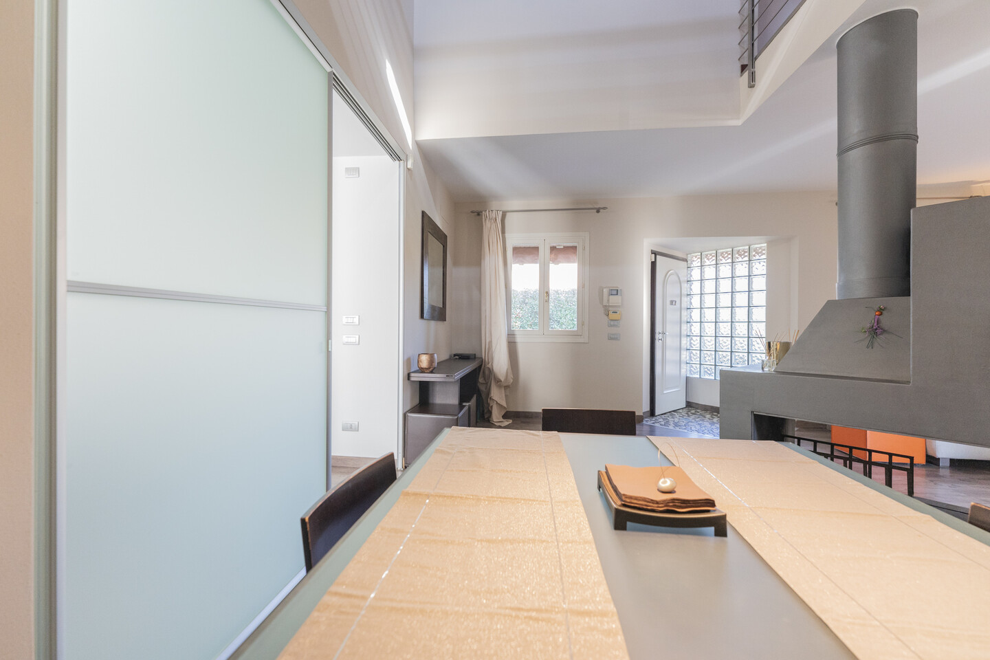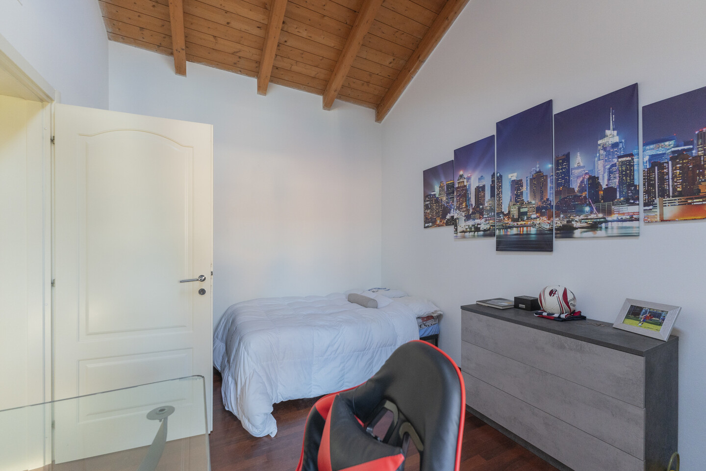 Proponiamo in vendita elegante villa indipendente disposta su due livelli, immersa nella tranquillità e dotata di ampi spazi interni ed esterni. Al piano terra troviamo un ingresso su luminoso soggiorno con camino centrale, una cucina abitabile con accesso diretto al portico esterno, antibagno, bagno finestrato e un suggestivo doppio volume a vista che dona profondità e luce all’ambiente. Il piano primo ospita due camere matrimoniali, di cui una con cabina armadio e l’altra con balcone privato e ripostiglio esterno, oltre a un secondo bagno. Possibilità di realizzare una terza camera da letto, ideale per famiglie o per chi desidera uno studio privato. A completare la proprietà, un generoso giardino privato, perfetto per momenti di relax all’aperto, e garage.
