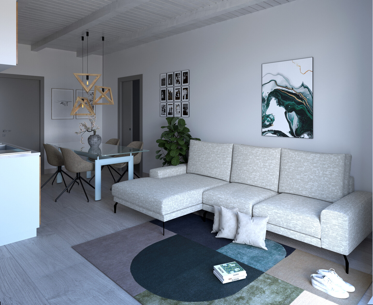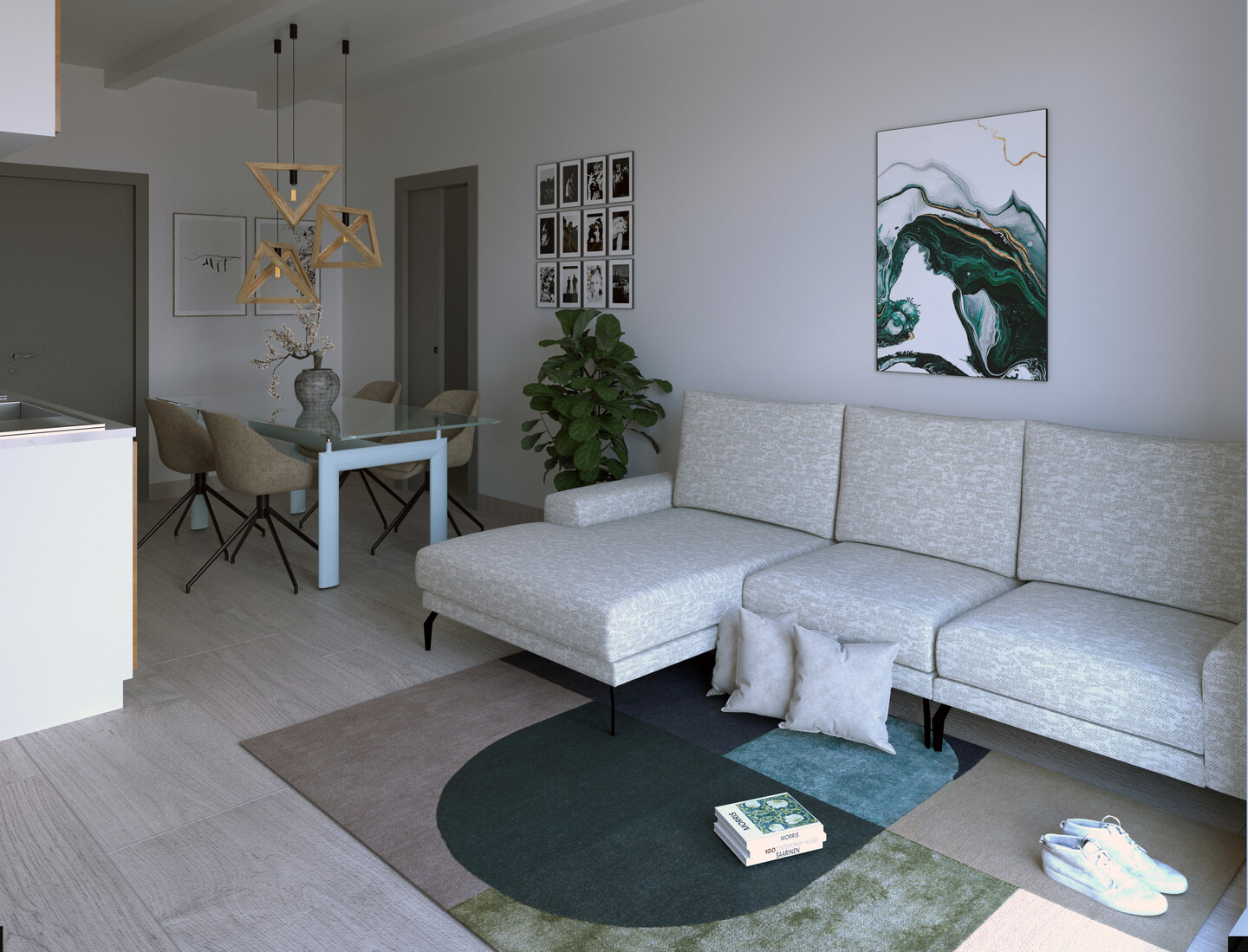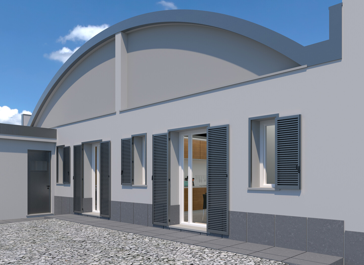 Appartamento trilocale sviluppato interamente al piano terra e così composto: ingresso indipendente su soggiorno con angolo cottura, un disimpegno notte divide 2 camere matrimoniali (di cui una con cabina armadio), un ampio ripostiglio e bagno.