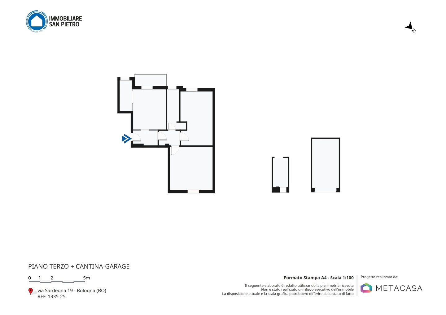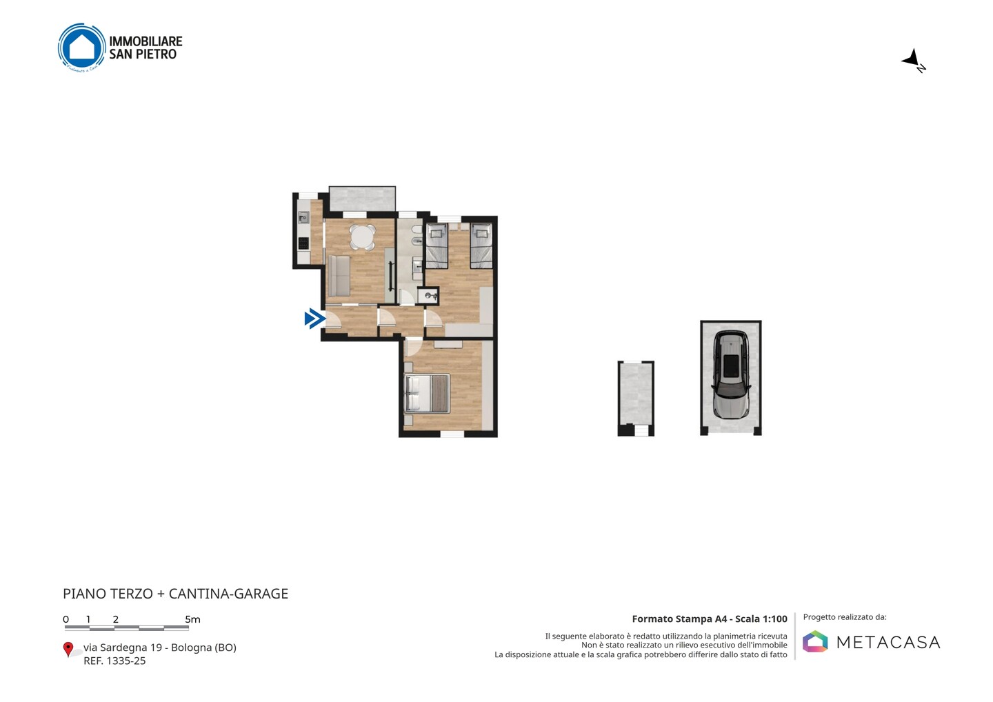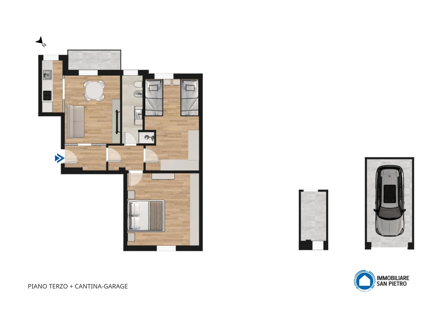 In palazzina signorile servita da ascensore, trilocale con doppio affaccio al terzo piano. L’appartamento è composto da ingresso arredabile, soggiorno con angolo cottura in nicchia, balcone, disimpegno, camera matrimoniale, camera doppia e bagno. Completa la proprietà una comoda cantina posta al piano seminterrato e un garage di 13 mq.