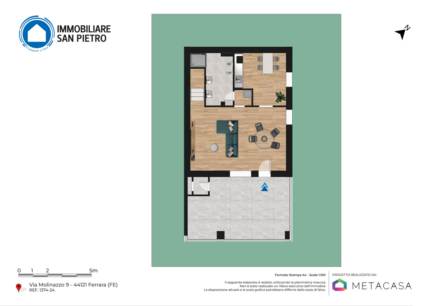 In affaccio alla via Molinazzo che conduce in pochi minuti, sia al centro di Poggio Renatico, sia alla strada di collegamento per Ferrara e Bologna oltre alla nuova Cispadana.