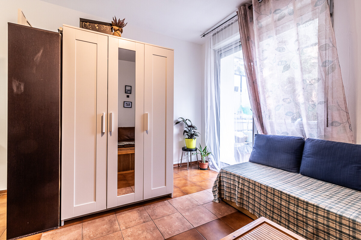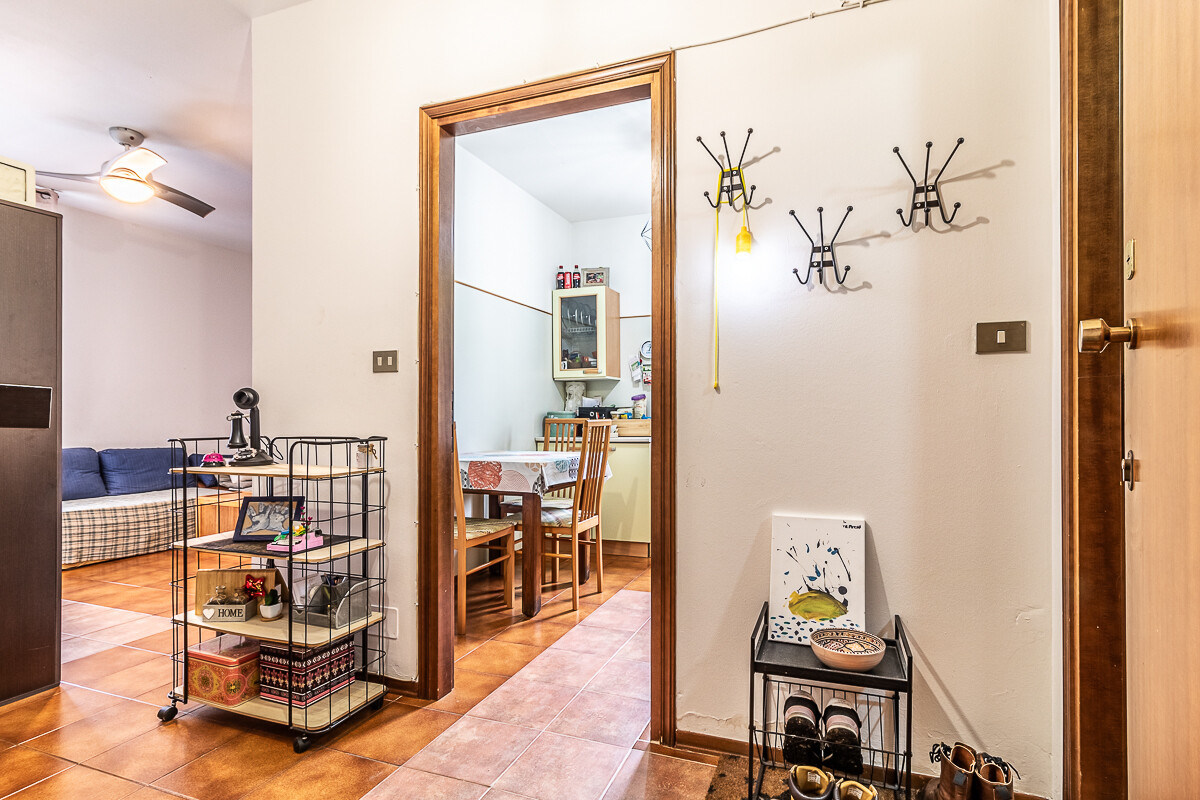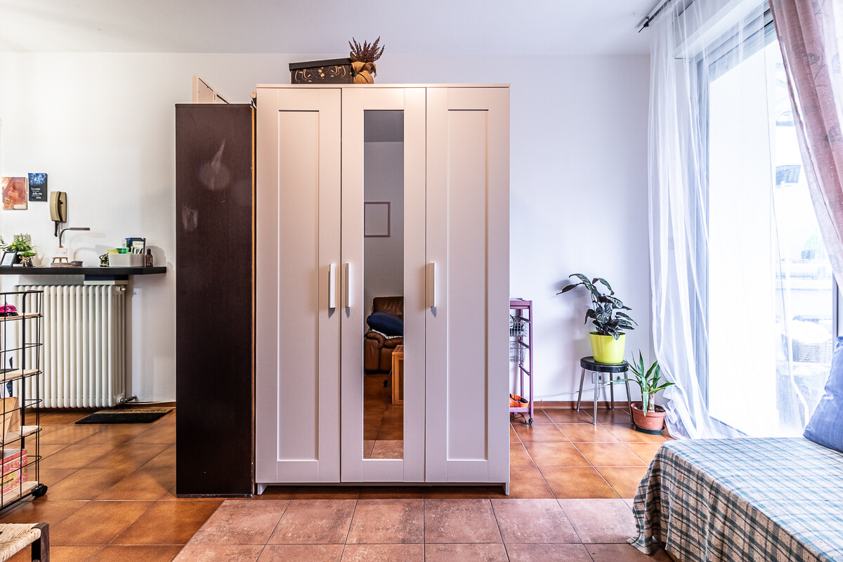 L’appartamento è composto da ingresso, sala con accesso al balcone, cucina separata, una camera da letto matrimoniale e bagno. La distribuzione interna è funzionale e adatta a una persona sola o a una coppia. Il balcone a servizio della zona giorno offre un comodo spazio esterno, mentre la suddivisione tra soggiorno e cucina garantisce una gestione ordinata degli ambienti.