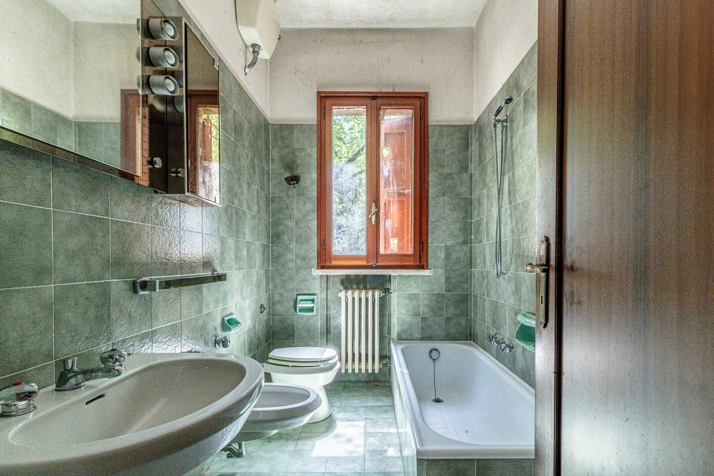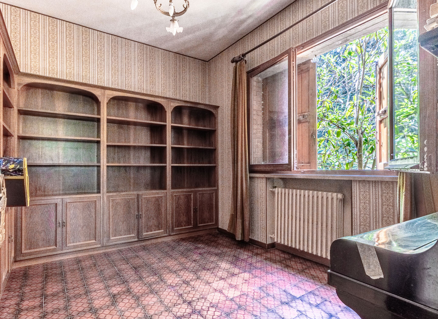 Al piano terra troviamo una spaziosa veranda con affaccio sul giardino, un bagno e un grande soggiorno con camino, oltre a un garage di 62 mq, tre cantine e due ripostigli per altri 67 mq complessivi.