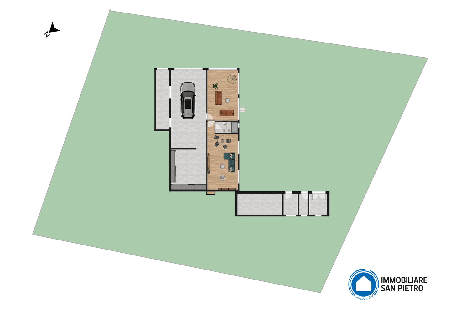 All’esterno, separato dall’abitazione principale, è presente un edificio accessorio libero su quattro lati di circa 68 mq, utilizzabile come deposito, legnaia, laboratorio o piccola dépendance.