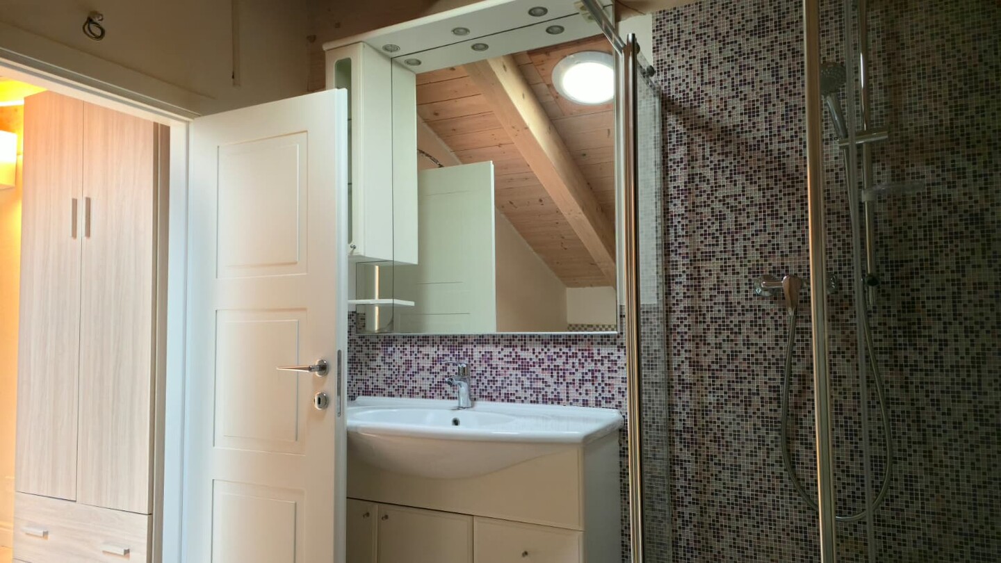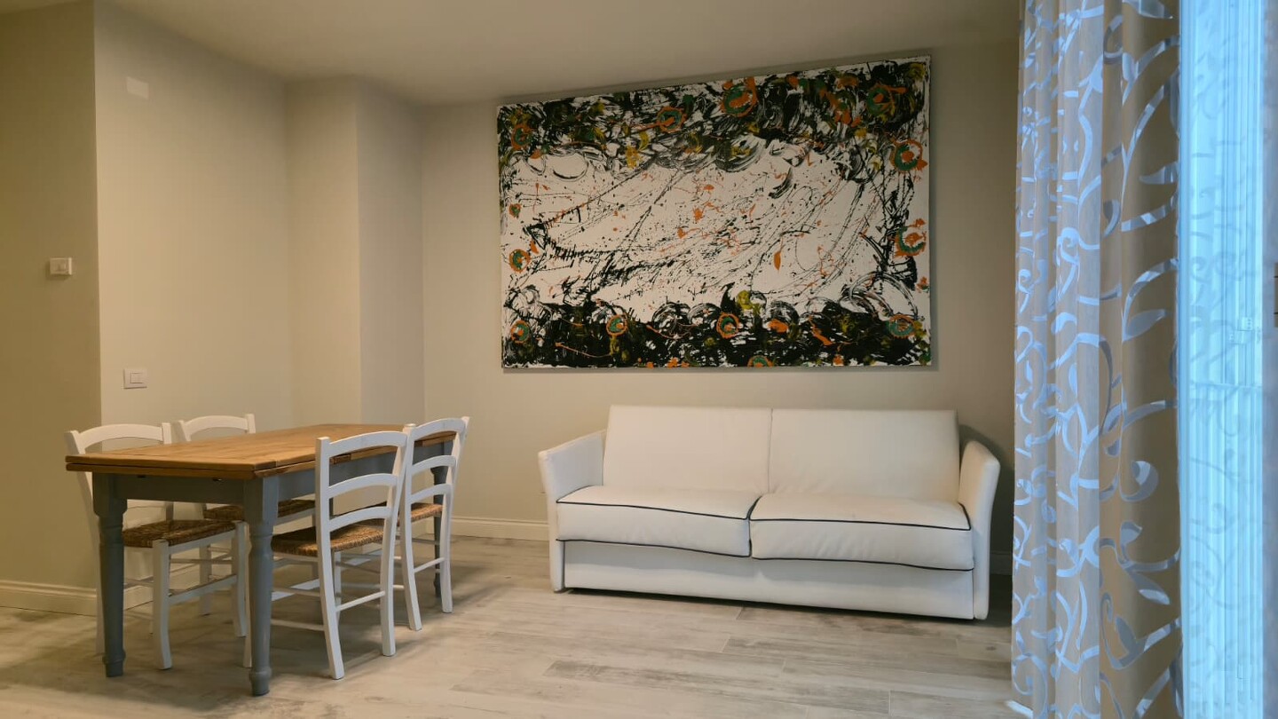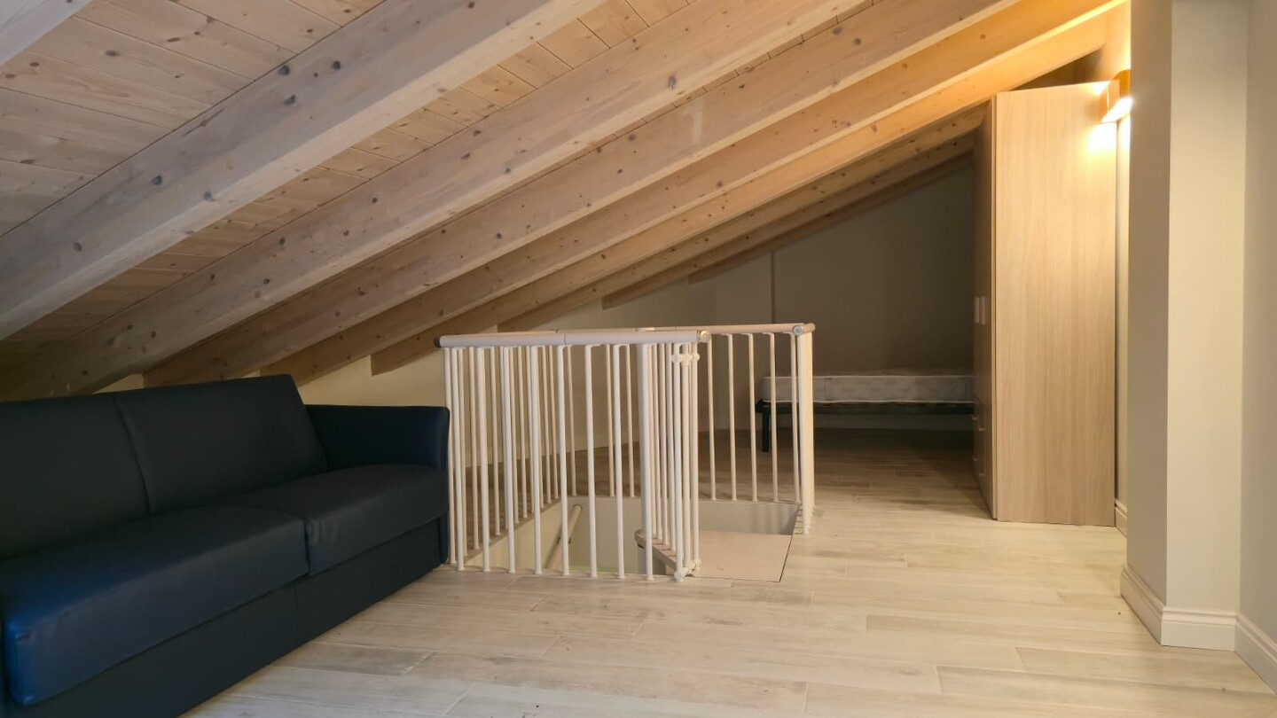 L’appartamento si trova al primo e ultimo piano. Gli spazi sono ben distribuiti e comprendono un luminoso soggiorno con angolo cottura, una camera da letto matrimoniale e un bagno con box doccia. Tramite una scala a chiocciola si accede al secondo piano mansardato composto da camera singola, area relax e ulteriore bagno con doccia. La proprietà è completa di aria condizionata, lavatrice e lavastoviglie, elementi che assicurano comfort e funzionalità. Completa l’offerta il posto auto, un valore aggiunto raro e prezioso in questa zona. Una soluzione da vedere per chi cerca posizione, vista e qualità della vita.