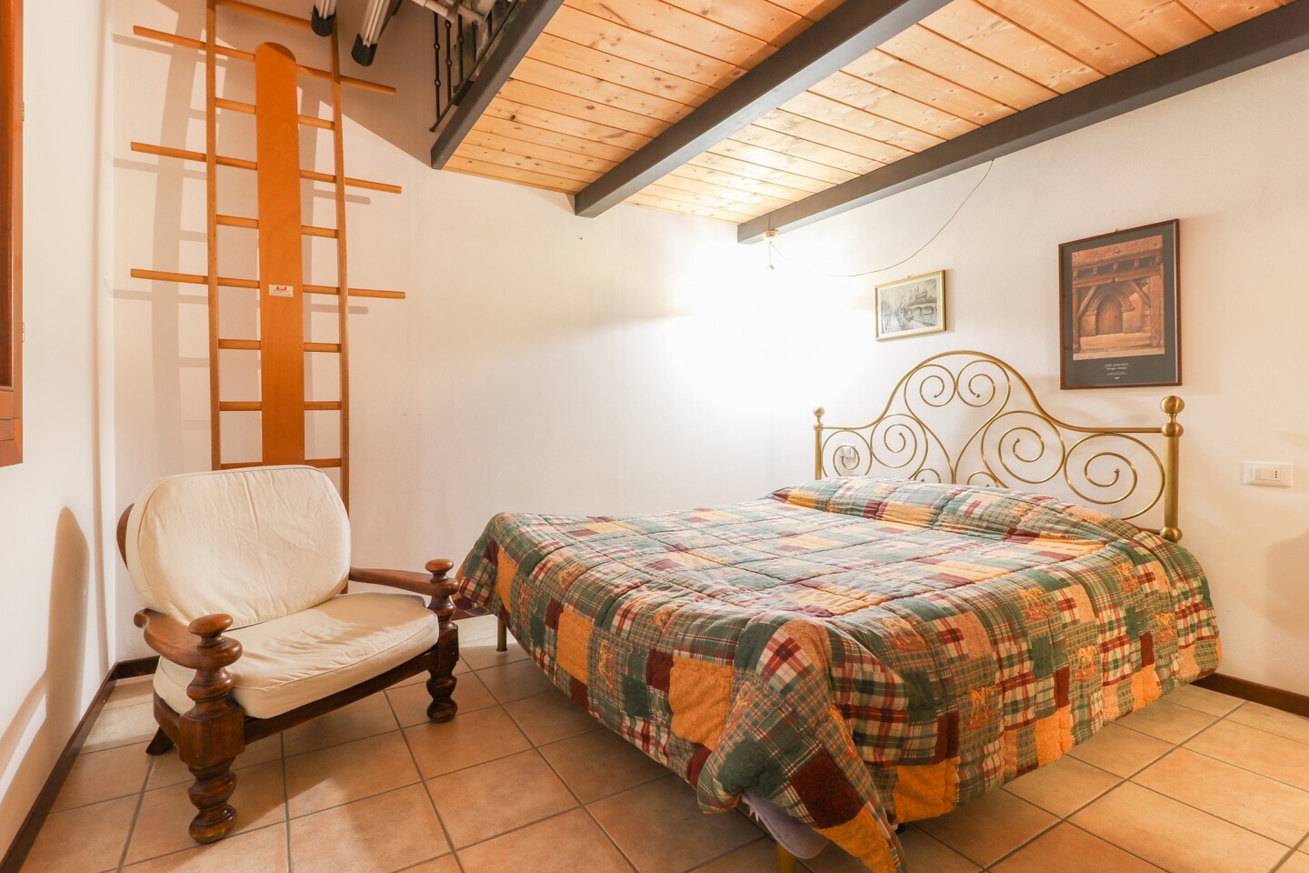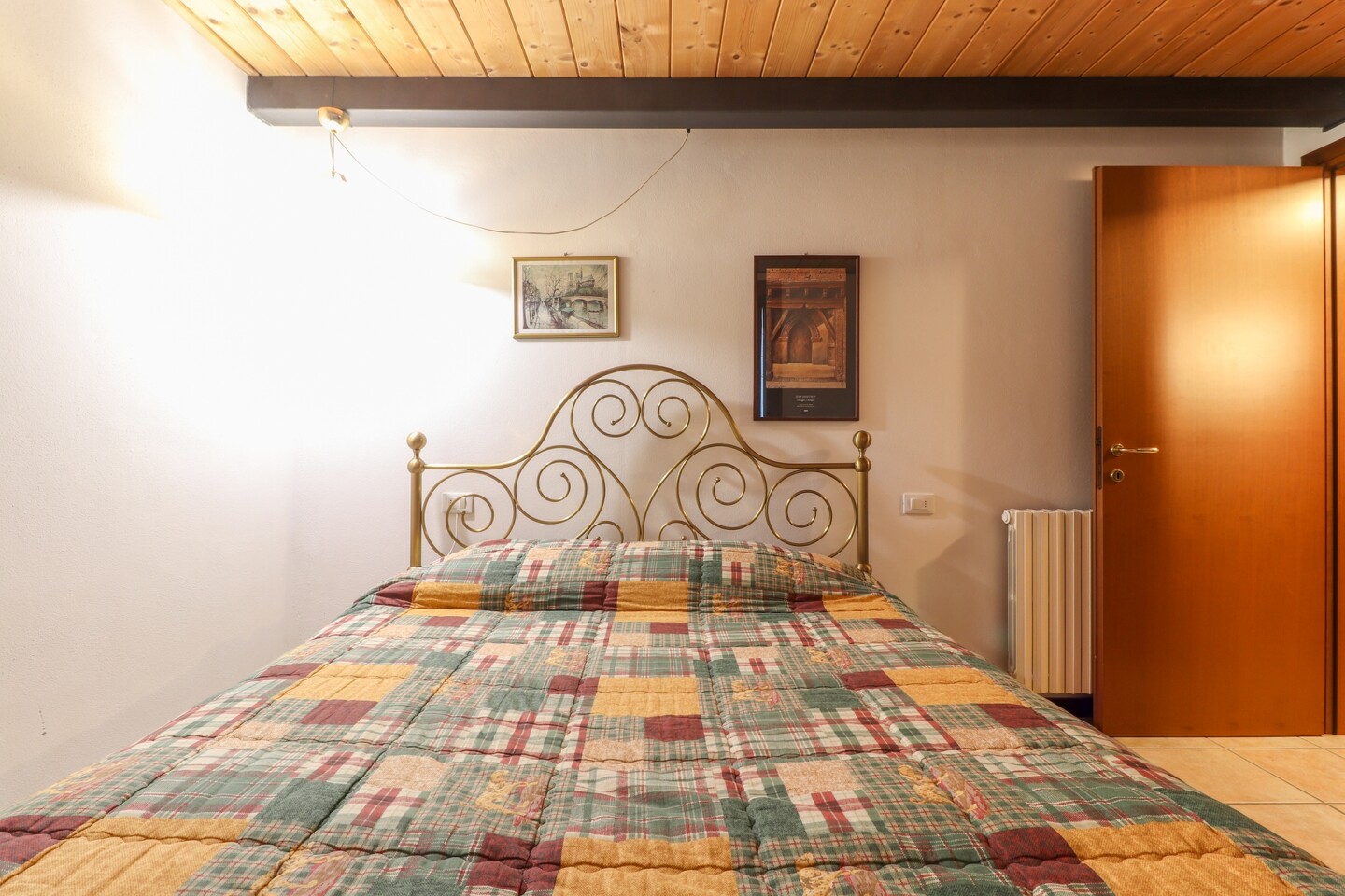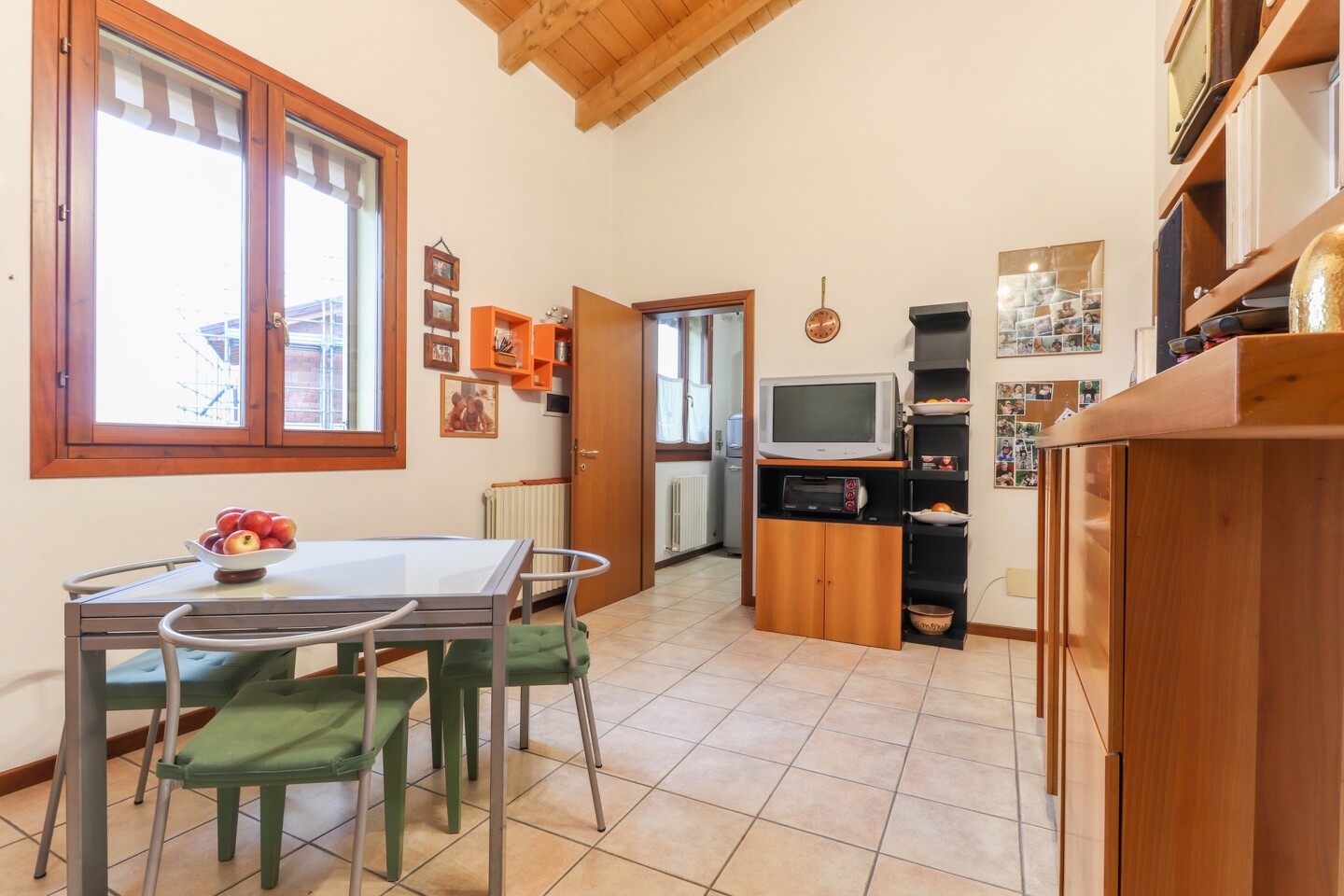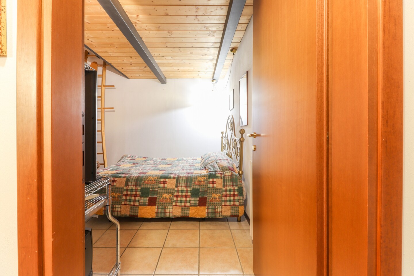 In piccola palazzina con giardino condominiale, appartamento posto al primo nonché ultimo piano, caratterizzato da grande luminosità e ben tenuto. L’accesso è tramite vano scala privato e l’immobile è così composto: soggiorno con angolo cottura, camera matrimoniale con soppalco in legno, ideale come studio, bagno finestrato e ripostiglio.