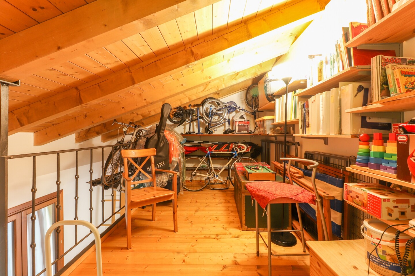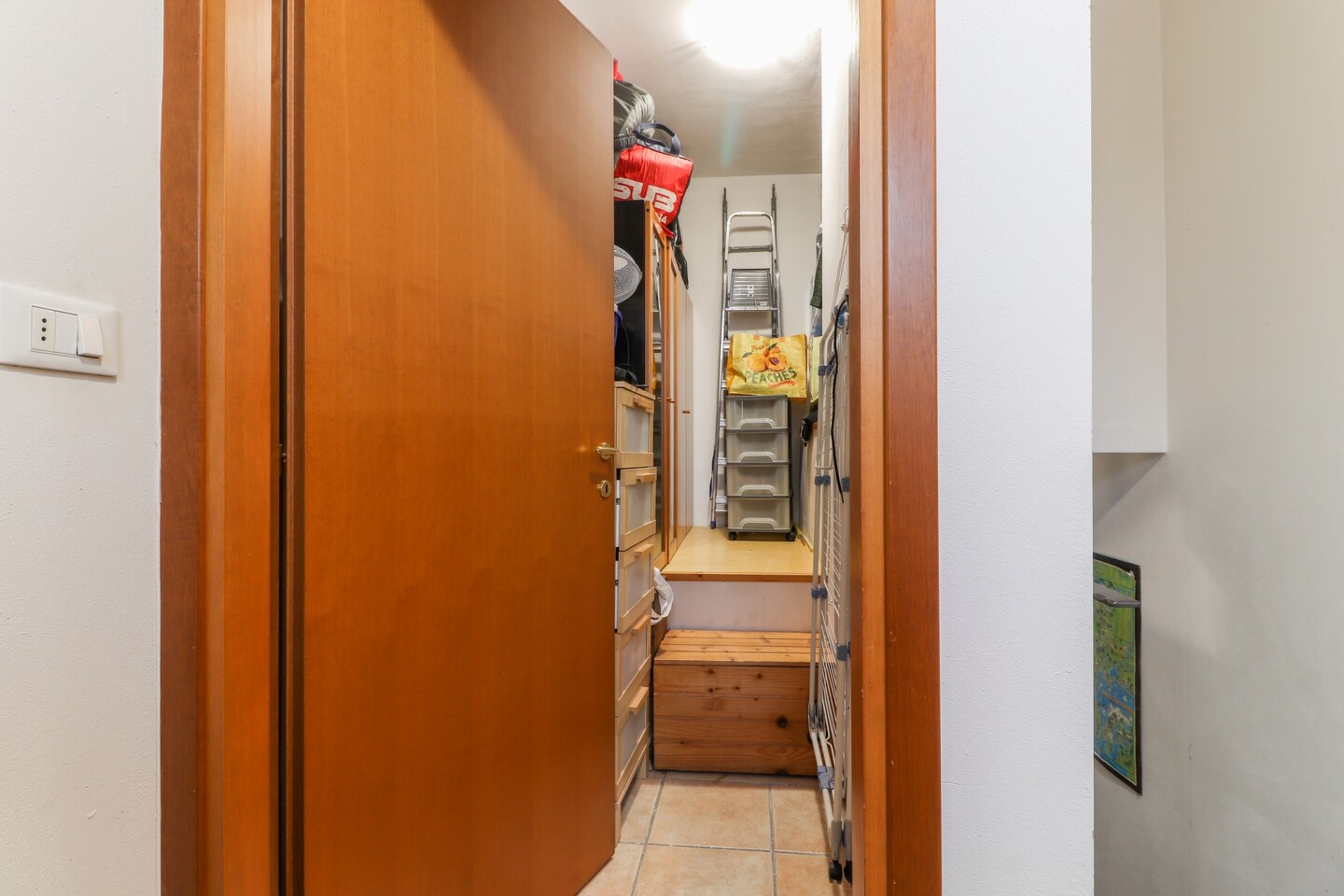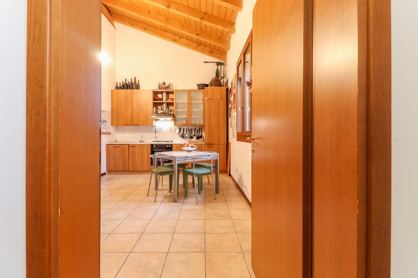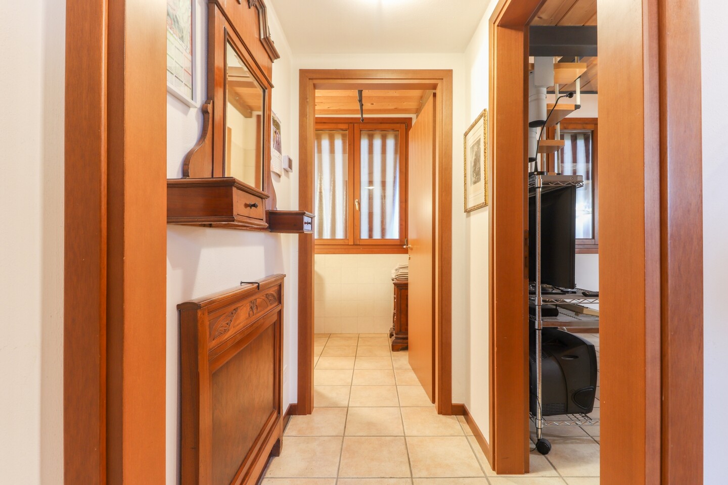 In piccola palazzina con giardino condominiale, appartamento posto al primo nonché ultimo piano, caratterizzato da grande luminosità e ben tenuto. L’accesso è tramite vano scala privato e l’immobile è così composto: soggiorno con angolo cottura, camera matrimoniale con soppalco in legno, ideale come studio, bagno finestrato e ripostiglio.