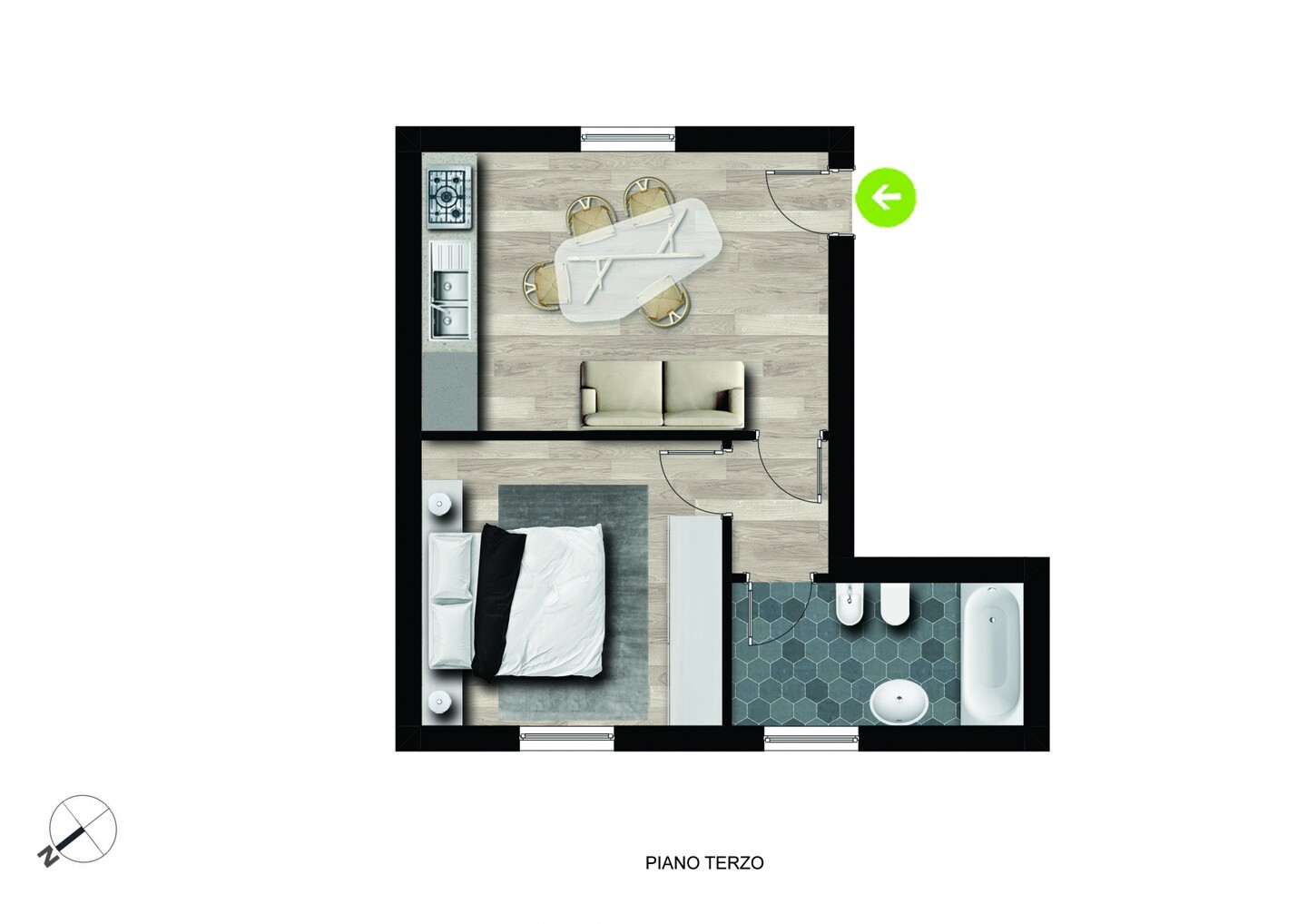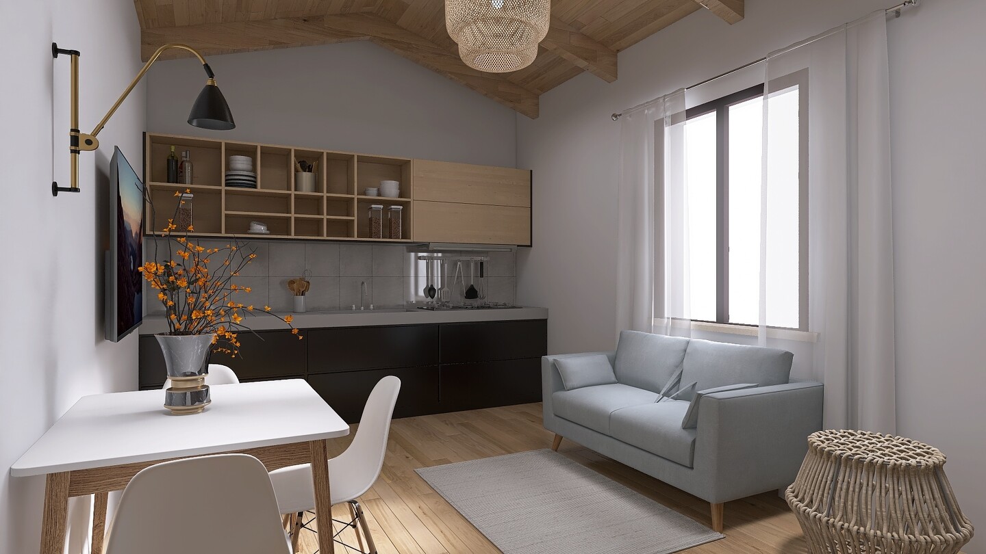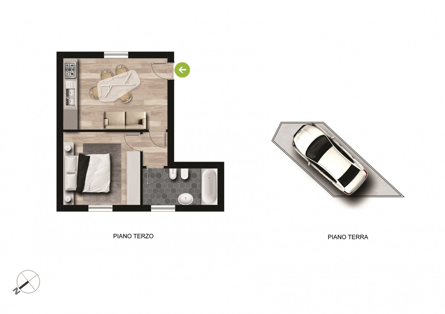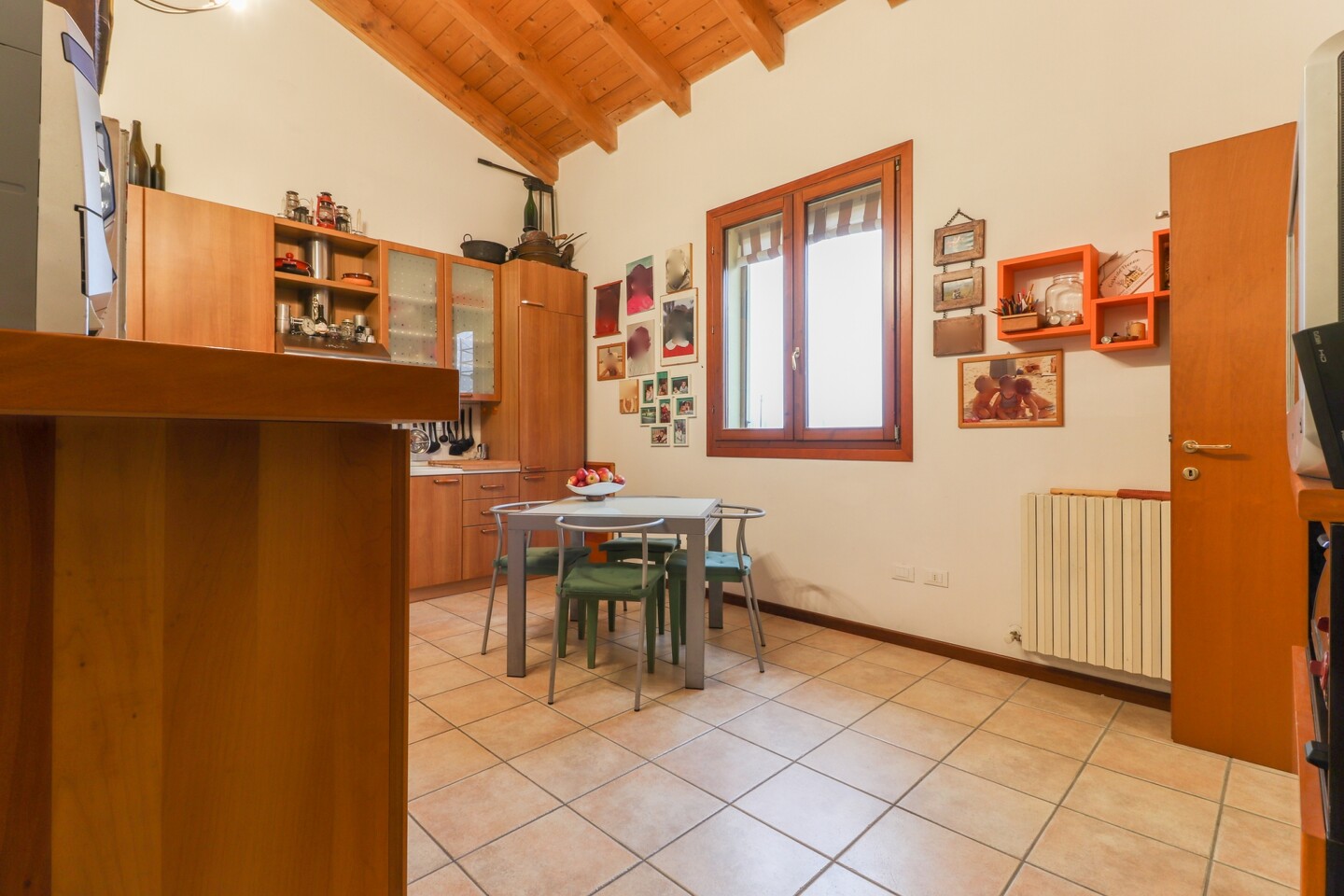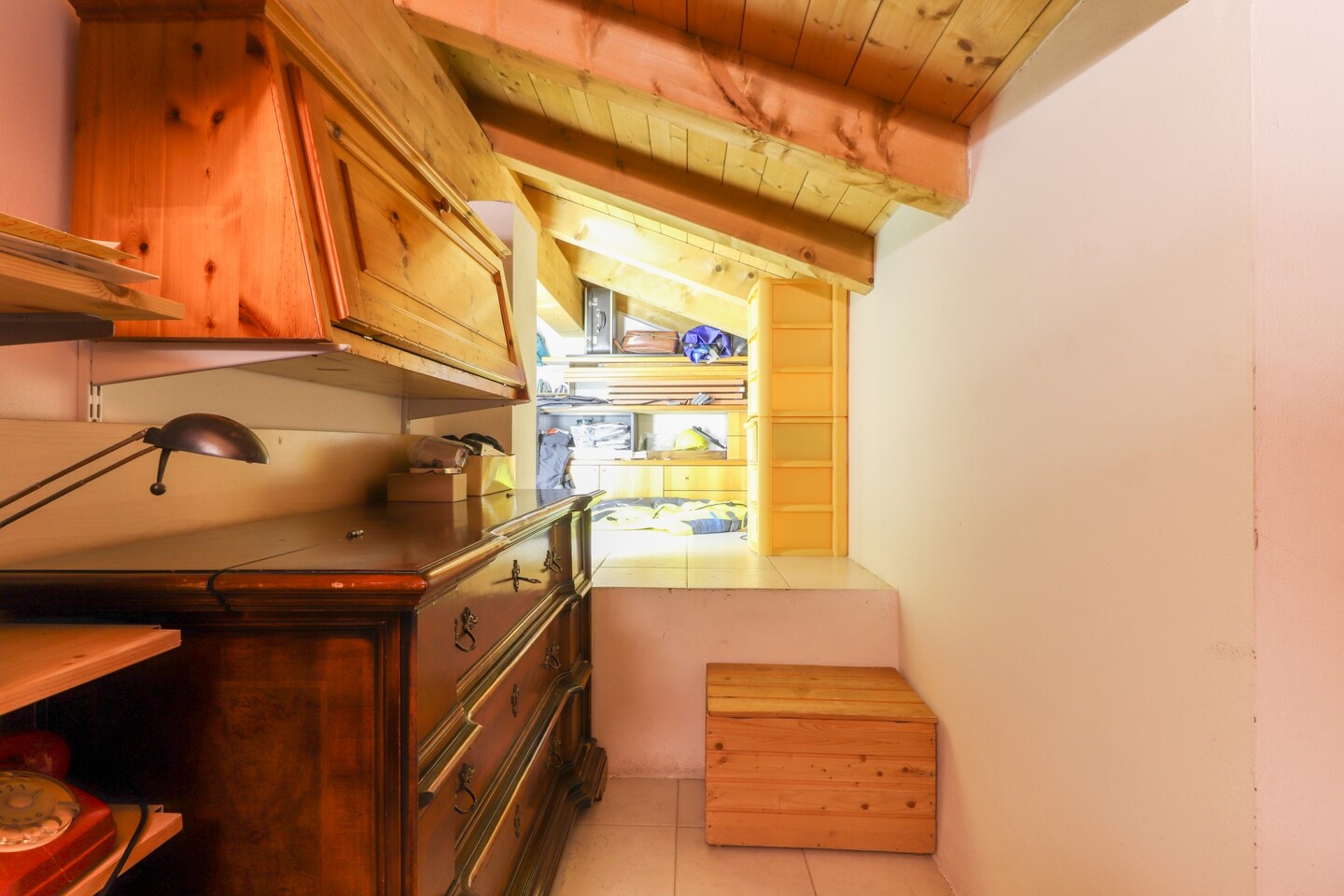In piccola palazzina con giardino condominiale, appartamento posto al primo nonché ultimo piano, caratterizzato da grande luminosità e ben tenuto. L’accesso è tramite vano scala privato e l’immobile è così composto: soggiorno con angolo cottura, camera matrimoniale con soppalco in legno, ideale come studio, bagno finestrato e ripostiglio.
