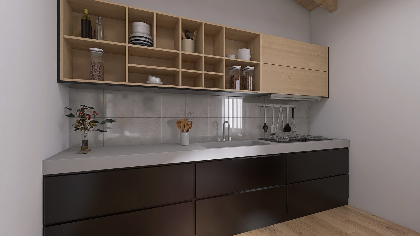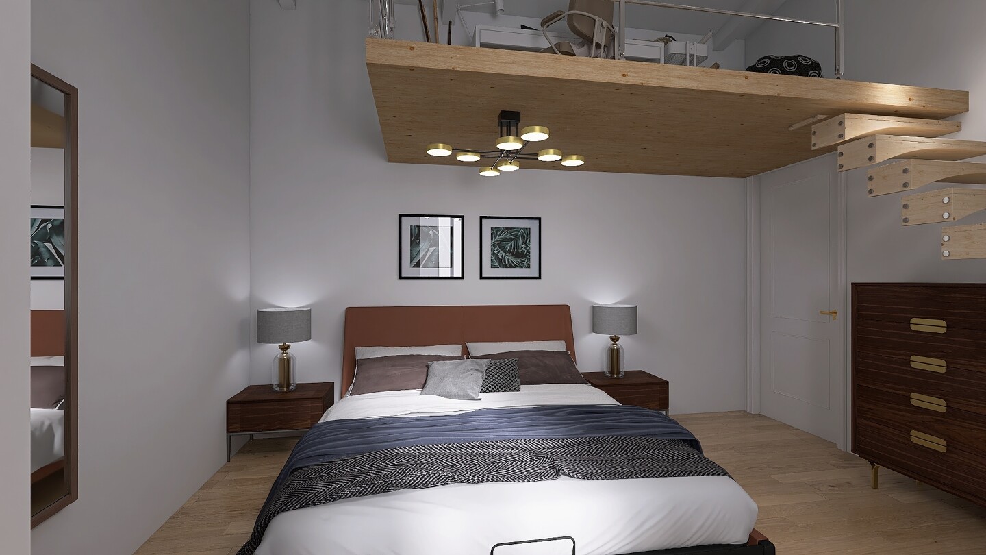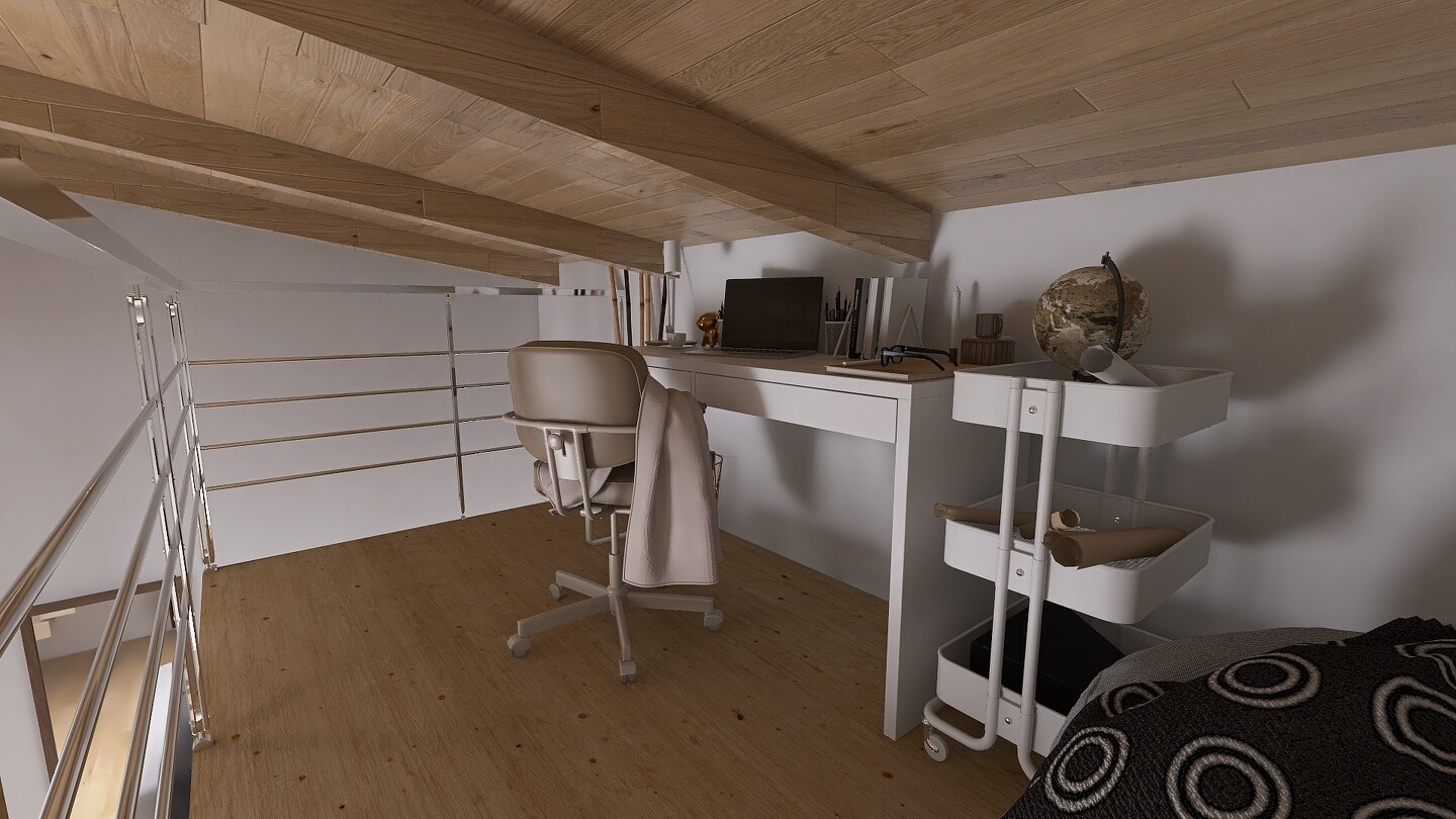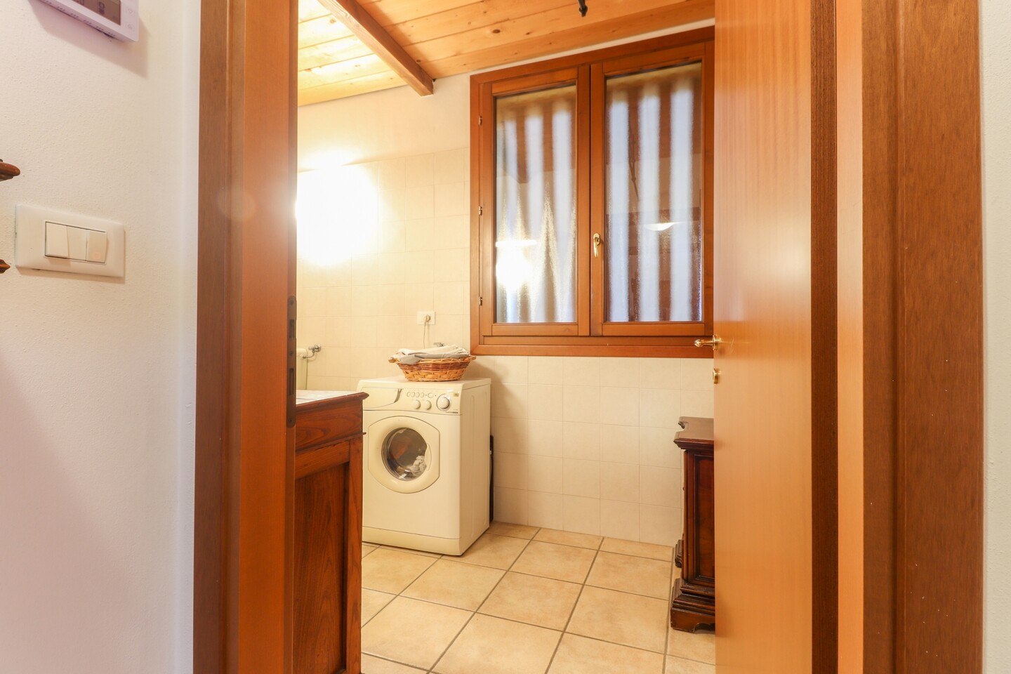 In piccola palazzina con giardino condominiale, appartamento posto al primo nonché ultimo piano, caratterizzato da grande luminosità e ben tenuto. L’accesso è tramite vano scala privato e l’immobile è così composto: soggiorno con angolo cottura, camera matrimoniale con soppalco in legno, ideale come studio, bagno finestrato e ripostiglio.