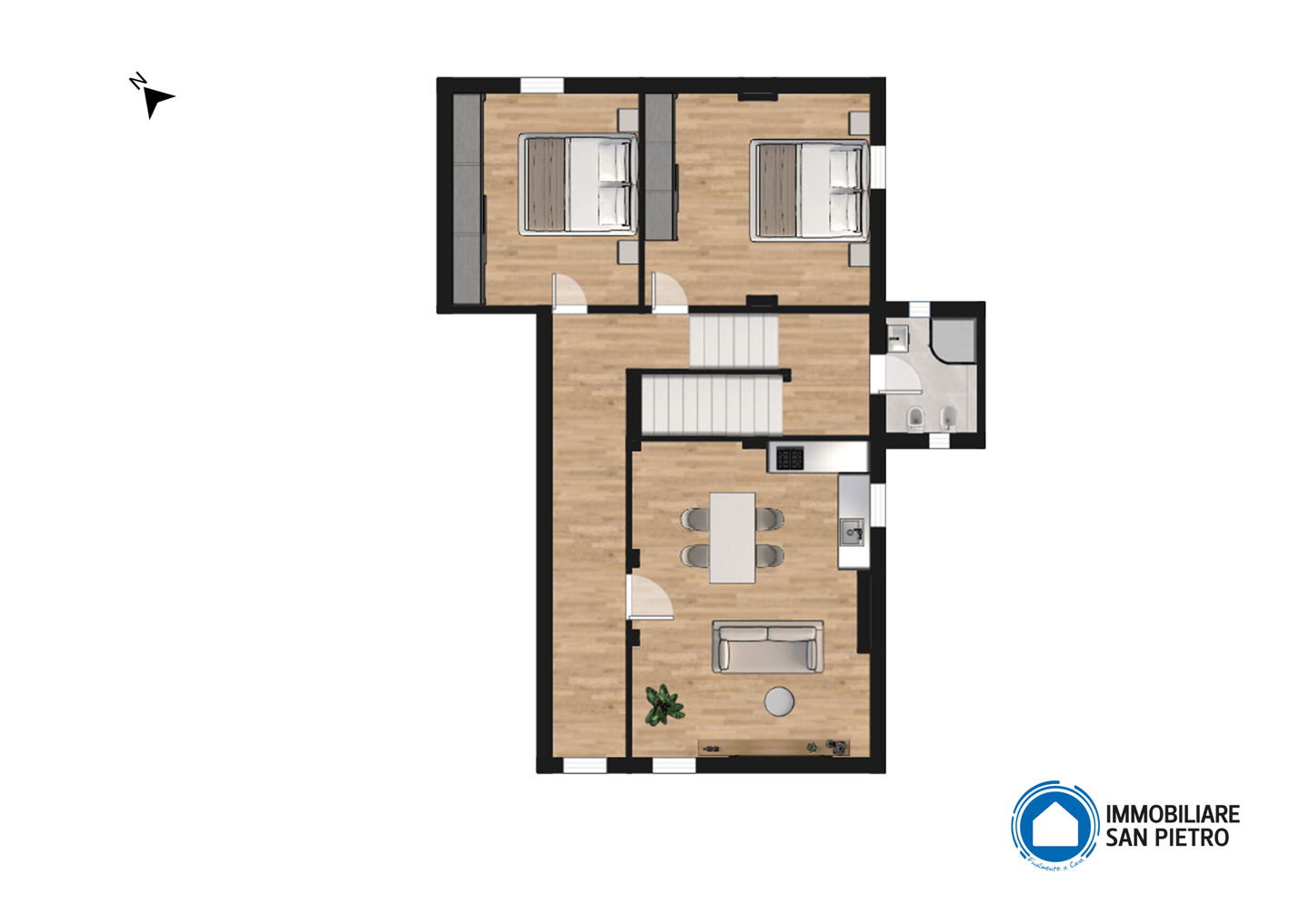 Corte colonica sviluppata su 2 livelli, costruita negli anni ’60 e così composta: ingresso su un lungo corridoio arredabile, grande ripostiglio con camino (volendo arredabile come soggiorno), cantina e lavanderia. Una scala conduce al primo piano dove troviamo due camere matrimoniali, un bagno e soggiorno con angolo cottura. Completano la proprietà un giardino di circa 4.000 mq, una stalla di 75 mq e un fabbricato accessorio di 70 mq; all’interno di quest’ultimo abbiamo una cantina e un bagno. L’abitazione è interamente da ristrutturare tranne il tetto (rifatto nel 2008), solai ed il muro di confine con l’altra proprietà. Le foto allegate rappresentano un esempio di ristrutturazione: offriamo la possibilità di acquistare l’immobile nello stato attuale, oppure, pagando una somma aggiuntiva, sarà possibile ottenere una ristrutturazione chiavi in mano, realizzata con le stesse caratteristiche e finiture delle immagini mostrate.