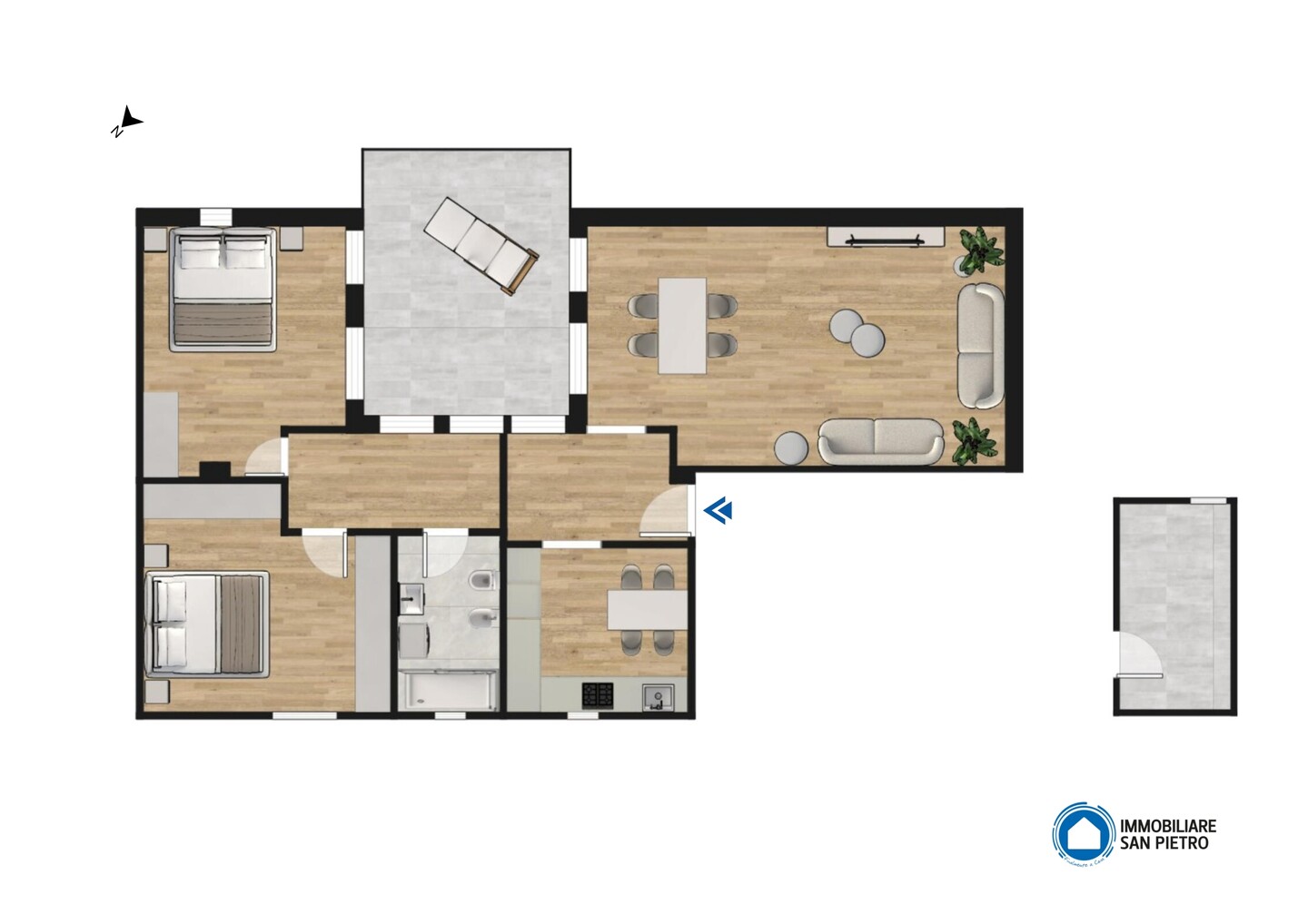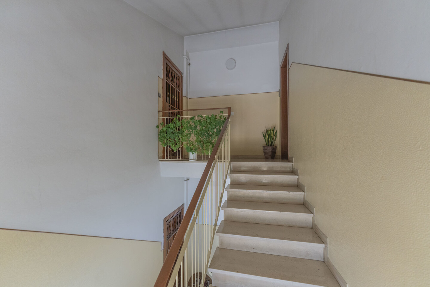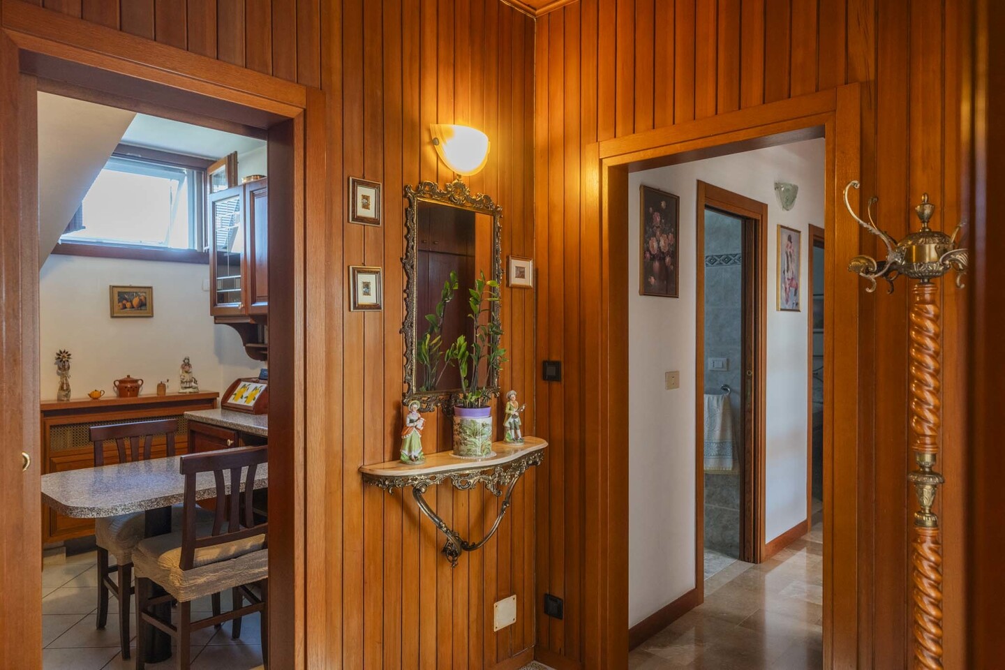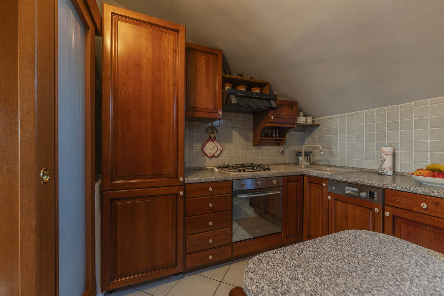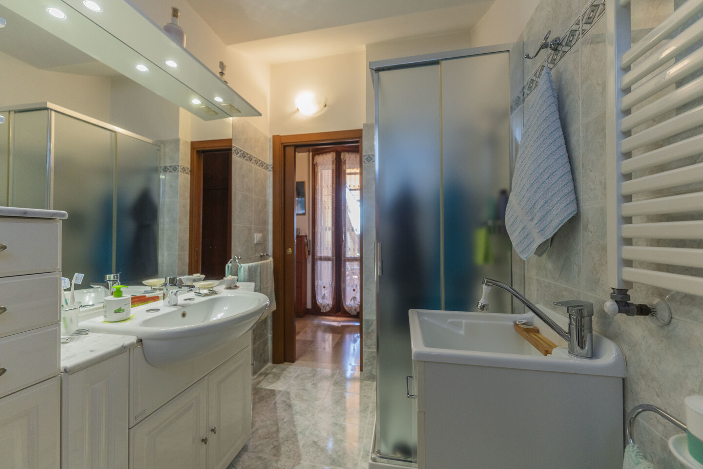 Ingresso su disimpegno arredabile con accesso al terrazzo, cucina, soggiorno, 2 camere matrimoniali e bagno. A completare la proprietà al piano terra cantina e garage.