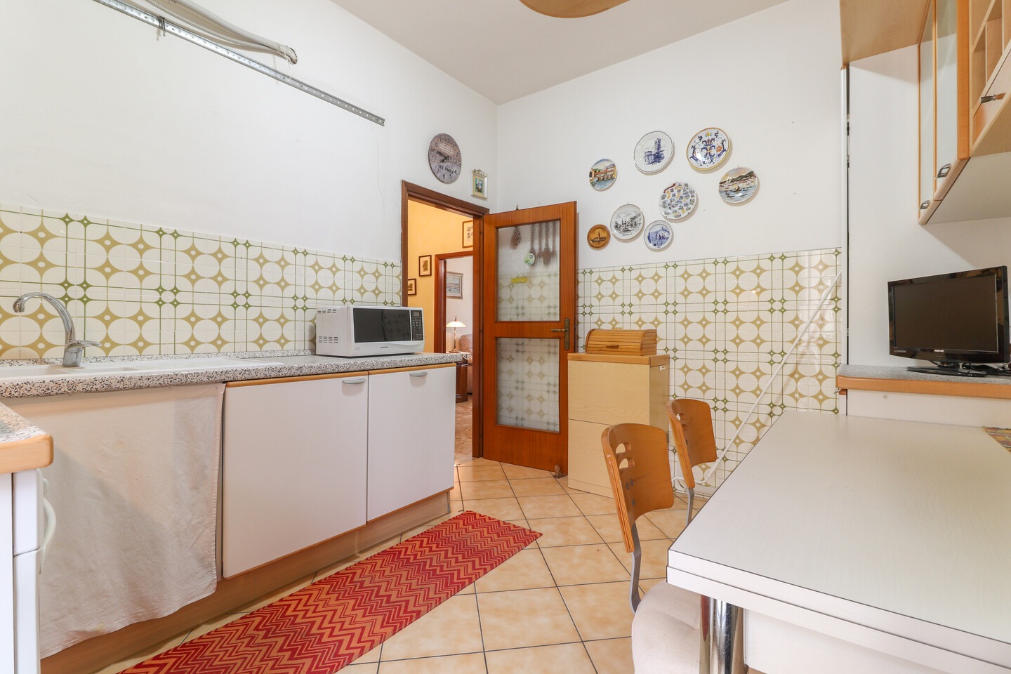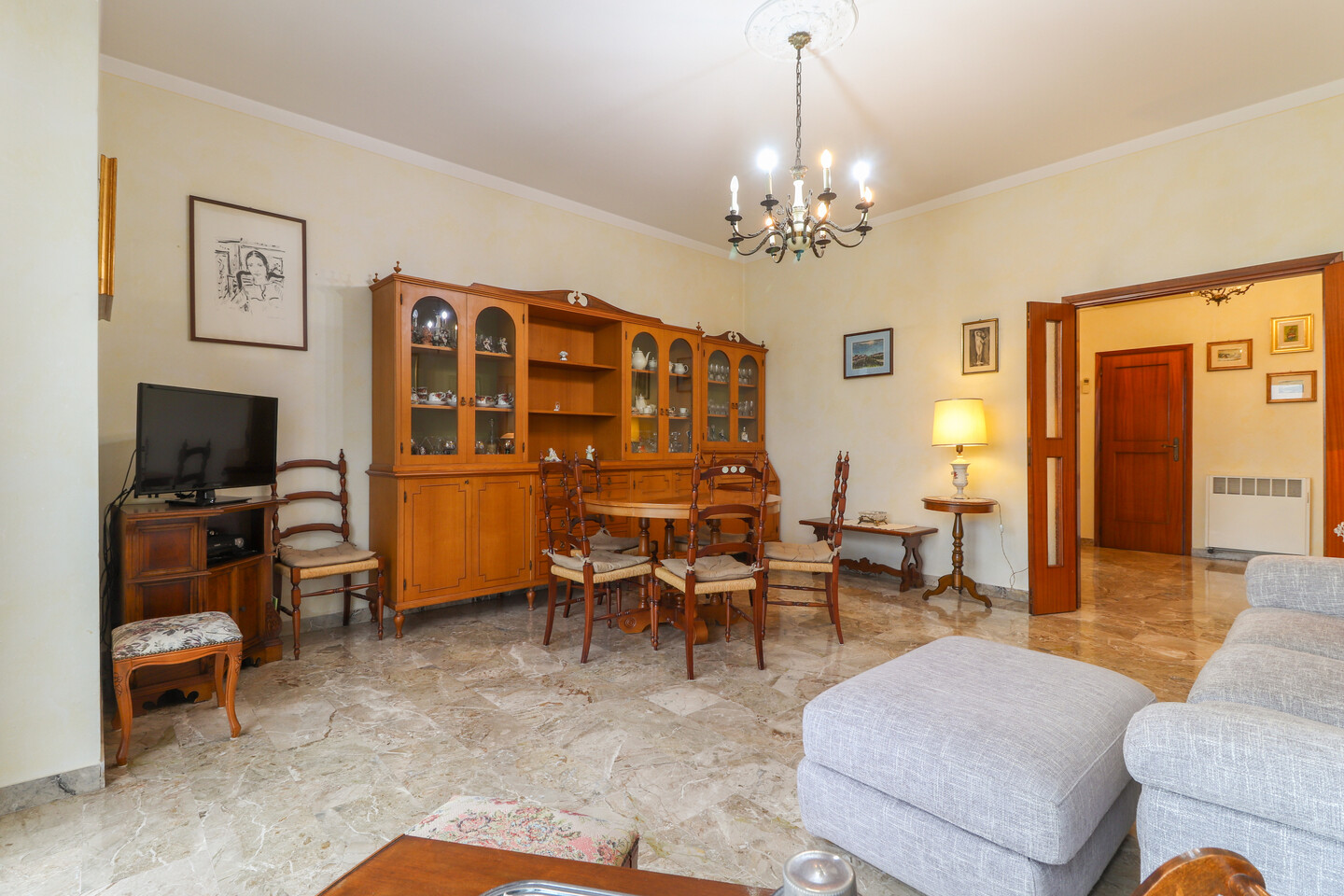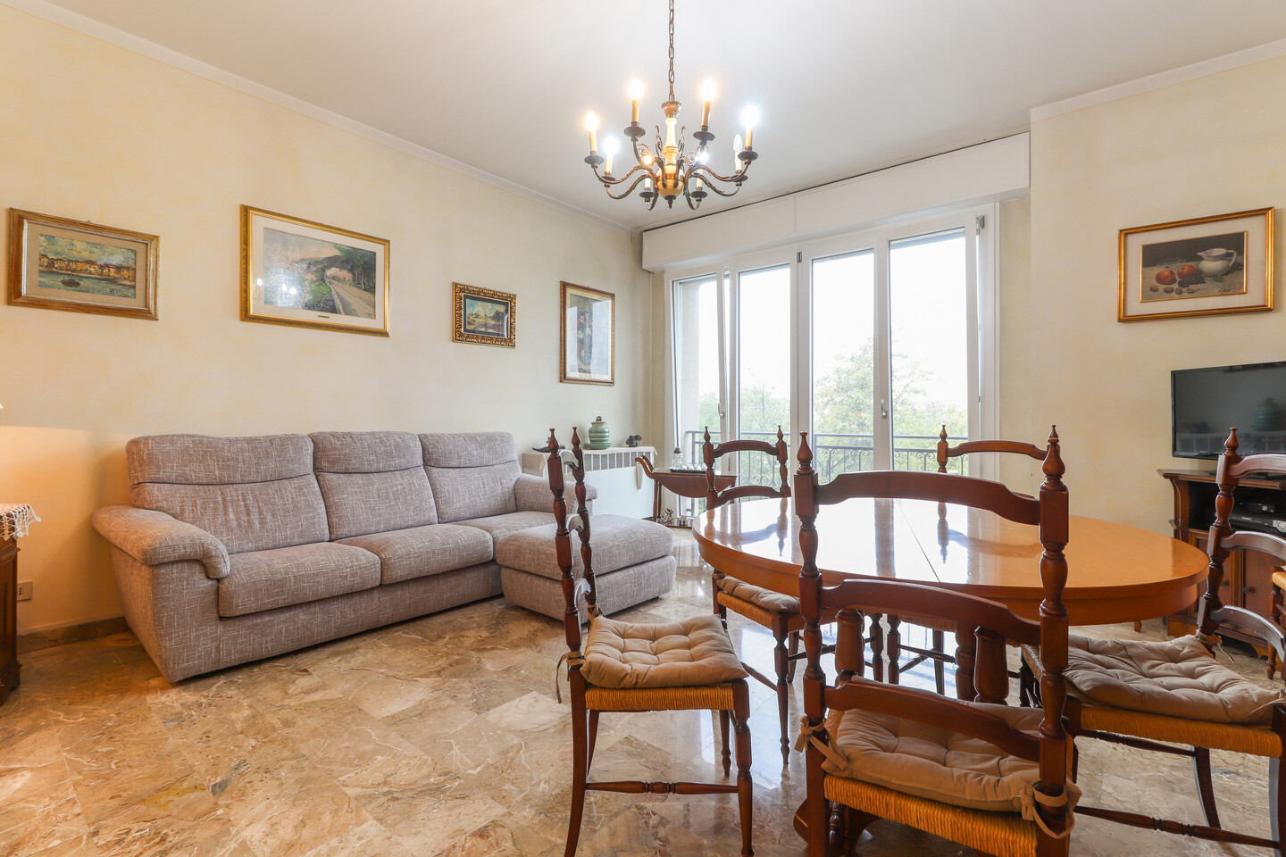 Appartamento posto al terzo piano con ascensore e composto da: ingresso, soggiorno, cucina abitabile con balcone, disimpegno, tre camere da letto, ripostiglio e un bagno. Al piano terra cantina e autorimessa.