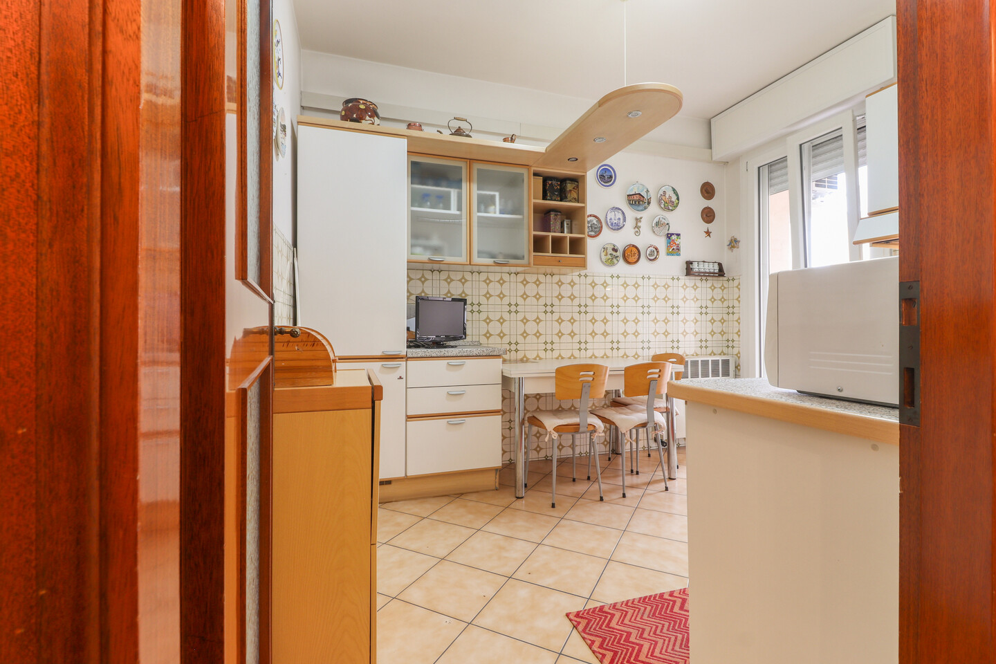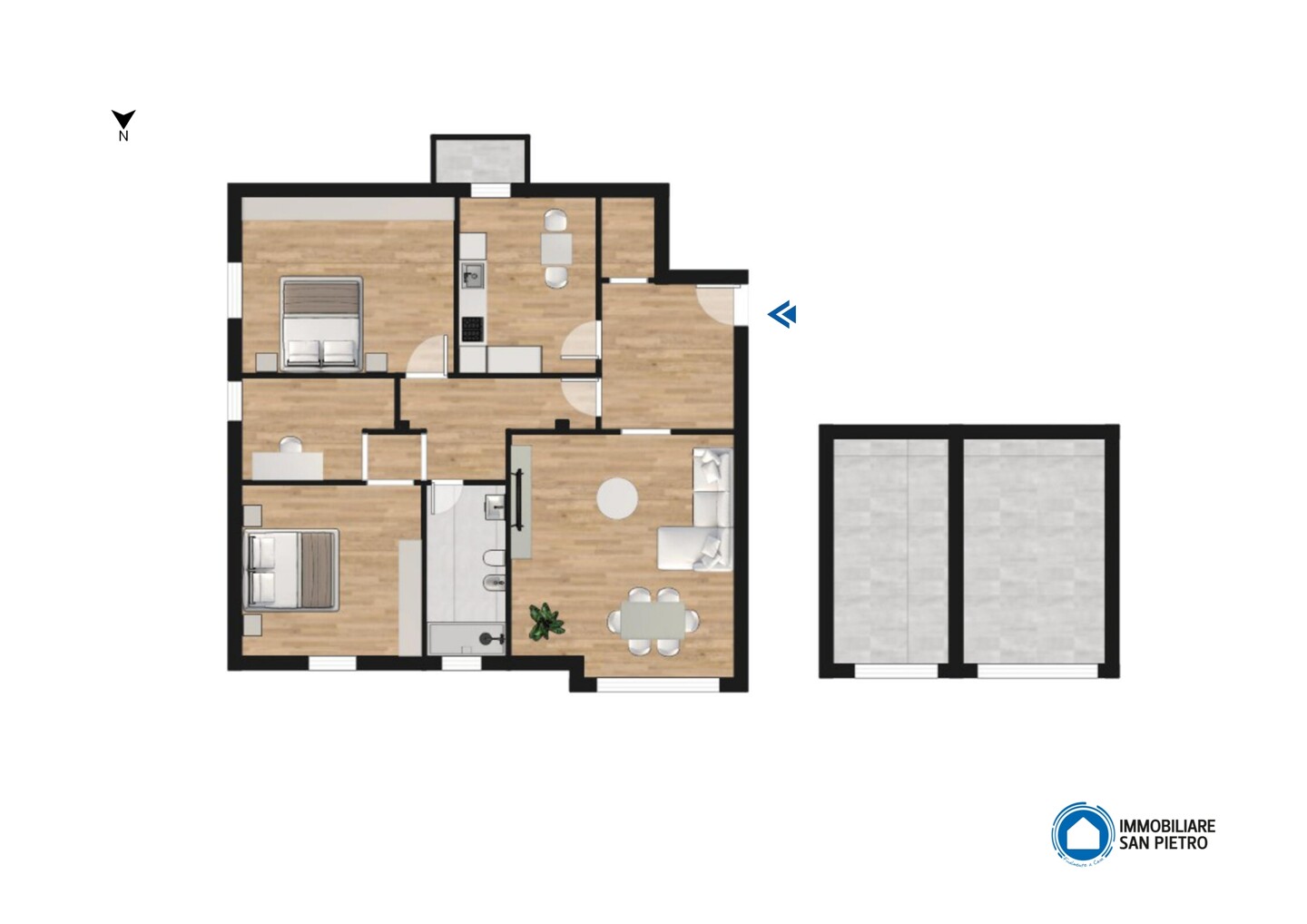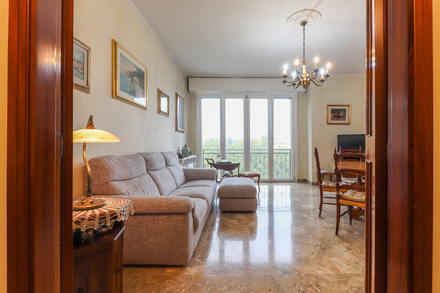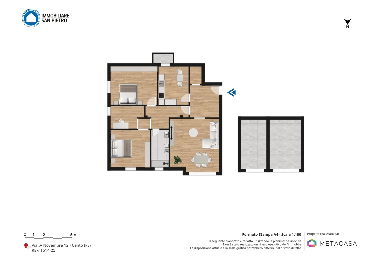 Appartamento posto al terzo piano con ascensore e composto da: ingresso, soggiorno, cucina abitabile con balcone, disimpegno, tre camere da letto, ripostiglio e un bagno. Al piano terra cantina e autorimessa.