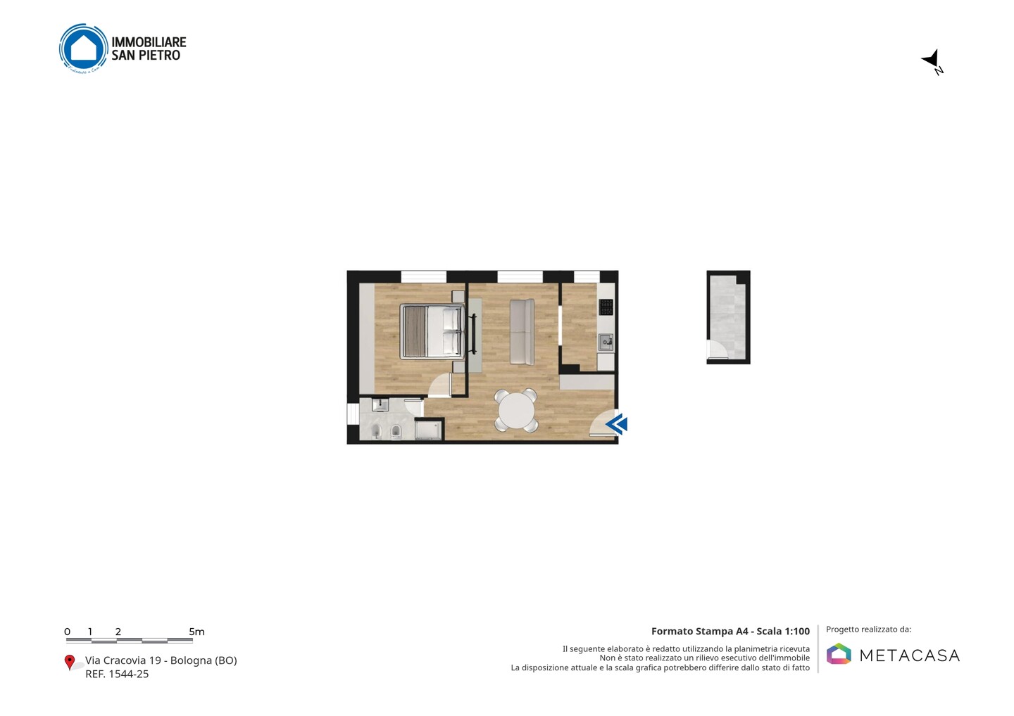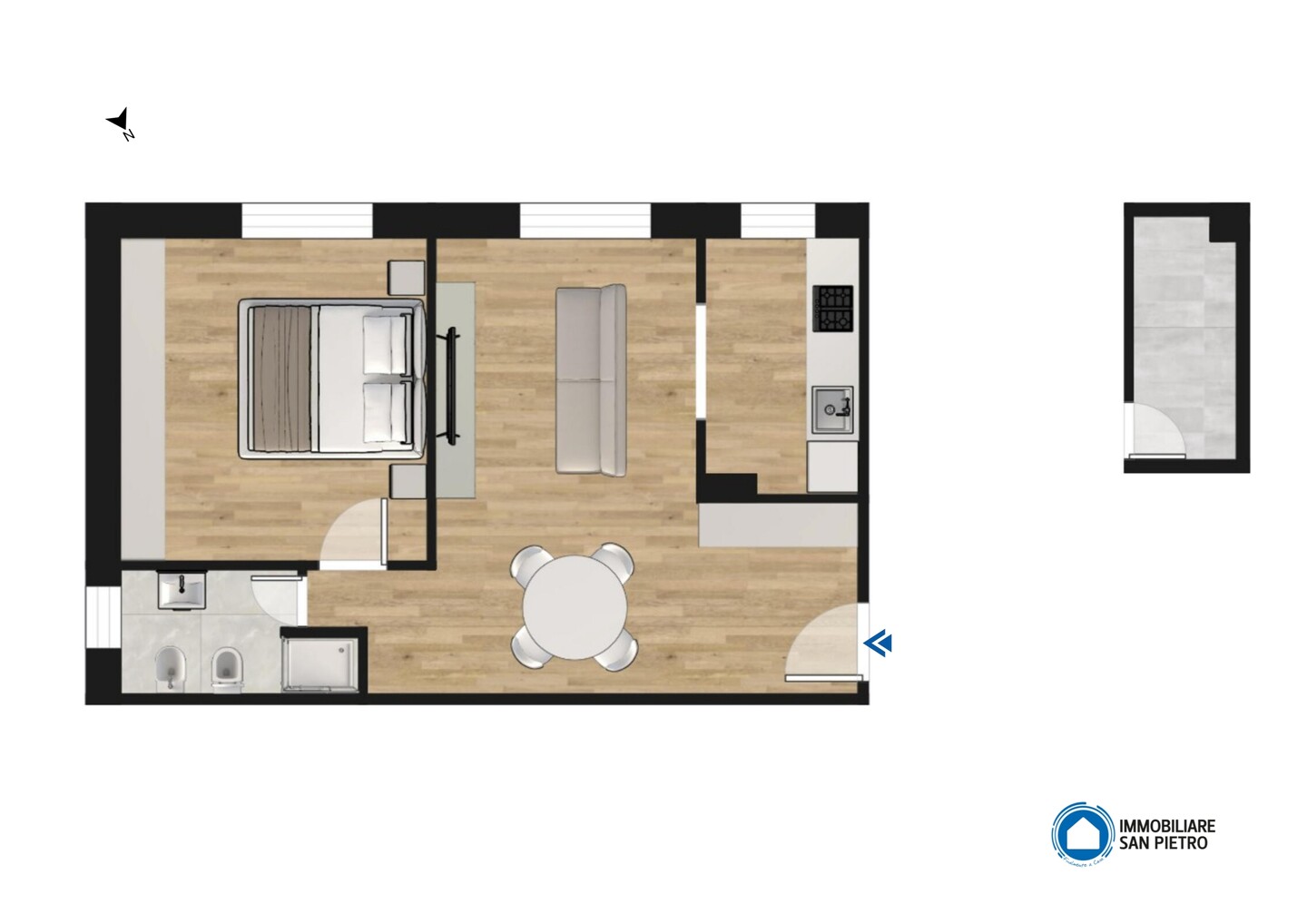 L’abitazione si trova in una palazzina costruita nel 1970 e si presenta in buone condizioni interne, grazie a diversi interventi di ristrutturazione effettuati nel tempo. L’ingresso apre sul soggiorno con cucinotto ricavato in una pratica nicchia, segue una camera matrimoniale, un bagno finestrato con doccia e un comodo ripostiglio. Completa la proprietà una cantina di 4 mq. Gli ambienti risultano ben distribuiti e funzionali, perfetti per chi cerca spazi semplici ma confortevoli. Tra i lavori più significativi eseguiti ricordiamo il rifacimento del bagno nel 2003, l’impianto del gas nuovo nel 2015, la certificazione dell’impianto elettrico, la sostituzione della porta d’ingresso con una blindata, oltre alla facciata ventilata e al recente intervento sulla centrale termica condominiale (nel 2023). Il riscaldamento è centralizzato con spese comprese nelle spese condominiali annue.