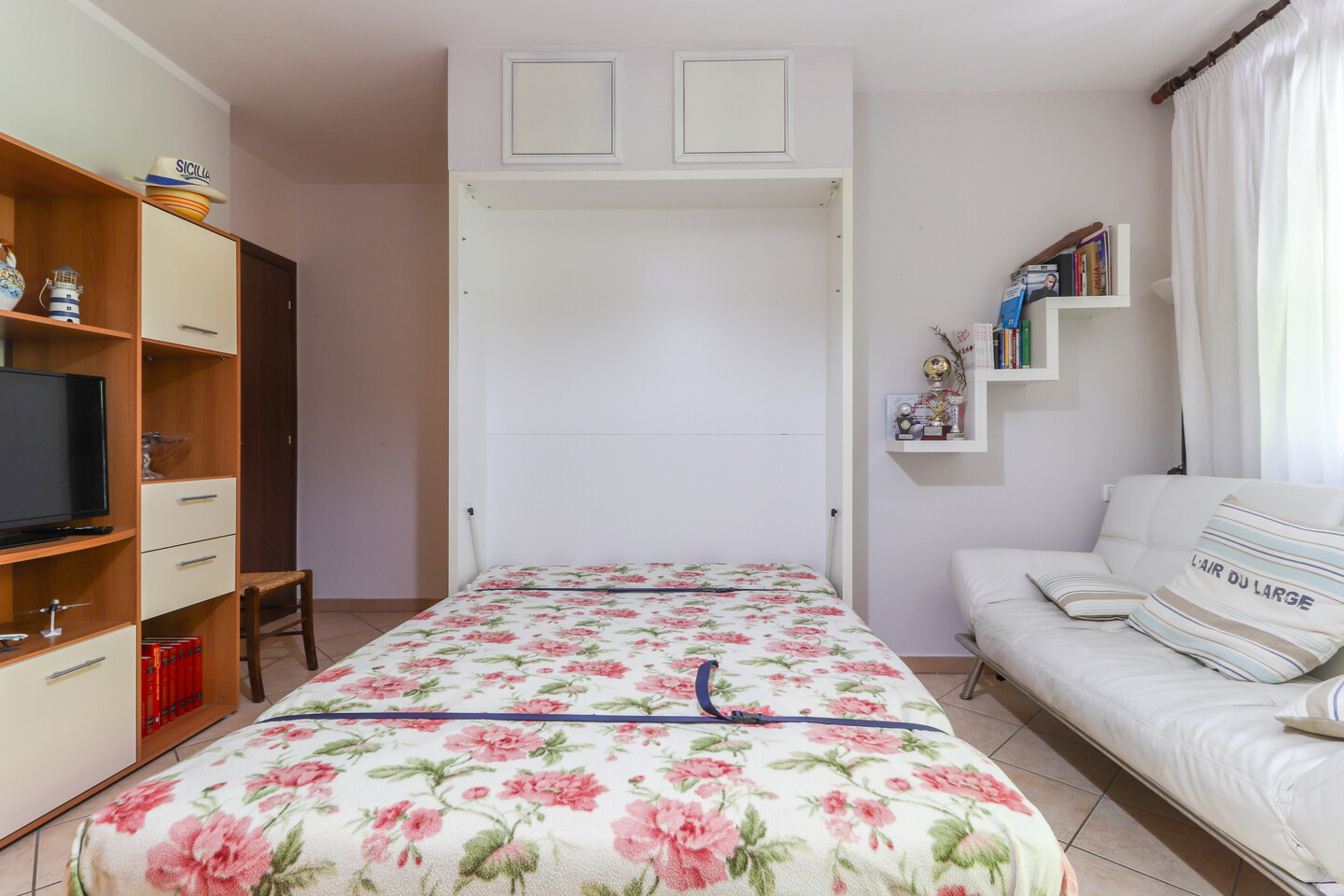 La proprietà include un pratico ripostiglio, utilizzabile come cabina armadio, un antibagno e un bagno finestrato per garantire la massima comodità.