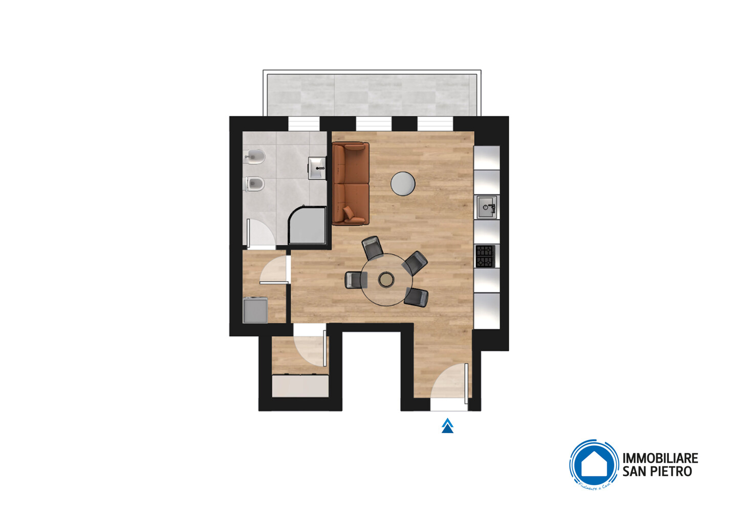 In palazzina del 2005 di tre piani con ascensore, proponiamo monolocale che offre comfort e funzionalità. L’appartamento è composto da un ingresso che conduce a una zona giorno/notte ben progettata con accesso a una spaziosa balconata.