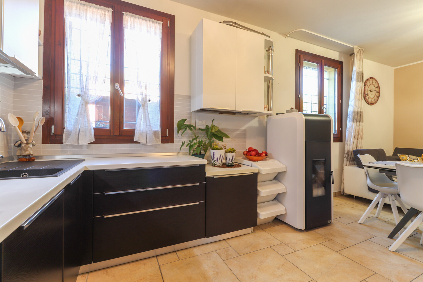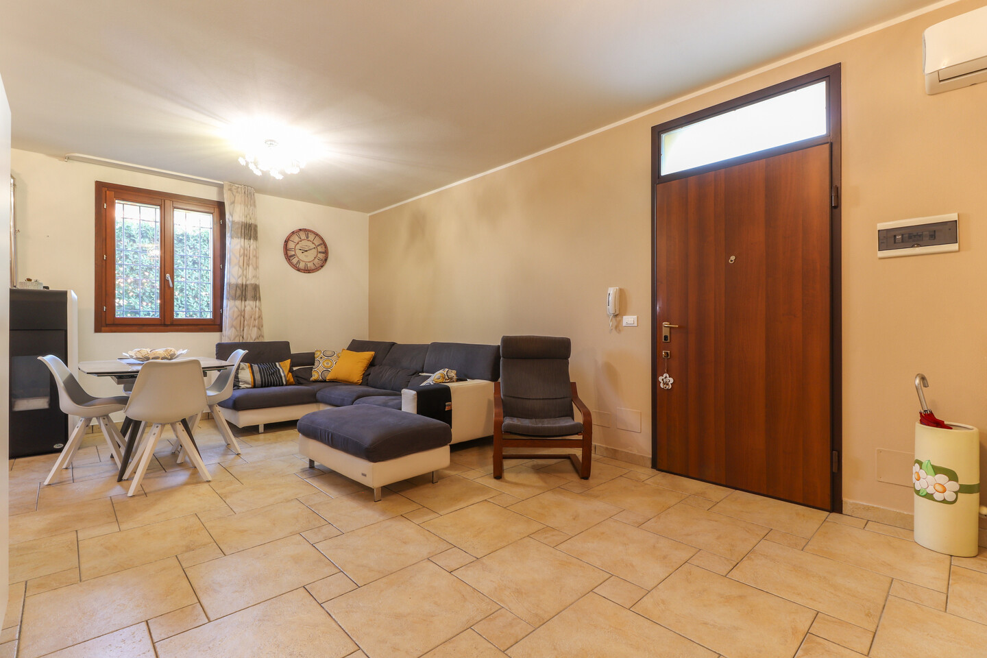 L’immobile è dotato di impianto di riscaldamento autonomo con termosifoni, stufa a pellet e climatizzazione con pompa di calore, garantendo il massimo comfort in ogni stagione.