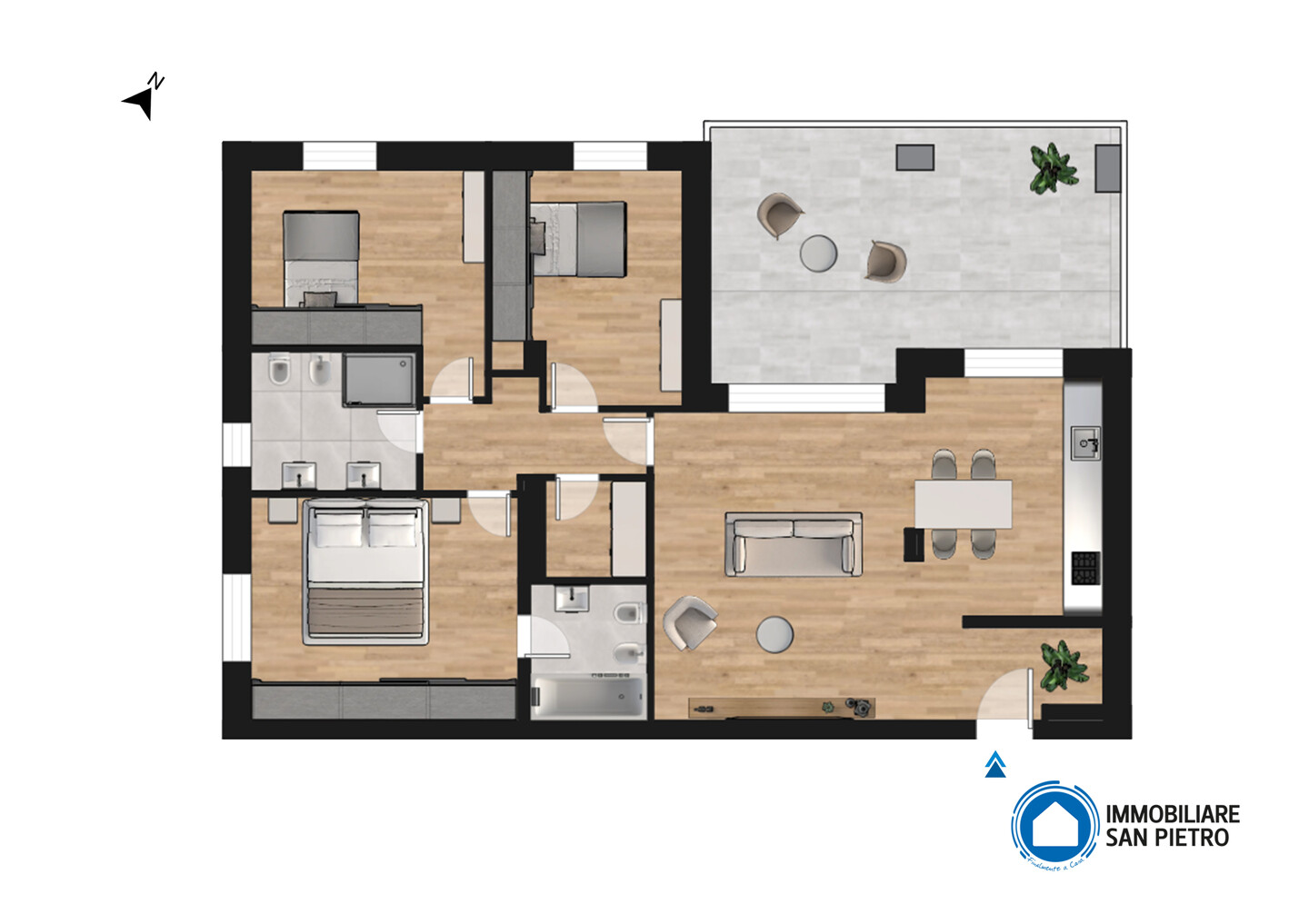 Questo raffinato appartamento combina spazi ampi, comfort e funzionalità, offrendo un ambiente ideale per chi desidera vivere con stile. Zona giorno luminosa e accogliente, con ingresso su un’ampia area living, cucina abitabile e una spettacolare terrazza di 23 mq, perfetta per momenti di relax e convivialità. Zona notte ben organizzata, composta da una camera matrimoniale e due spaziose camere doppie, oltre a due bagni e un comodo locale lavanderia. Disponibile ai piani 1°, 2°, 3° e 4°, per adattarsi alle tue esigenze. Possibilità di garage a partire da €25.000 e cantina, con diverse soluzioni tra cui scegliere. Per offrire un’esperienza ancora più completa, vi invitiamo a visitare il nostro showroom direttamente nel nostro ufficio Contattaci per maggiori informazioni o per fissare una visita!