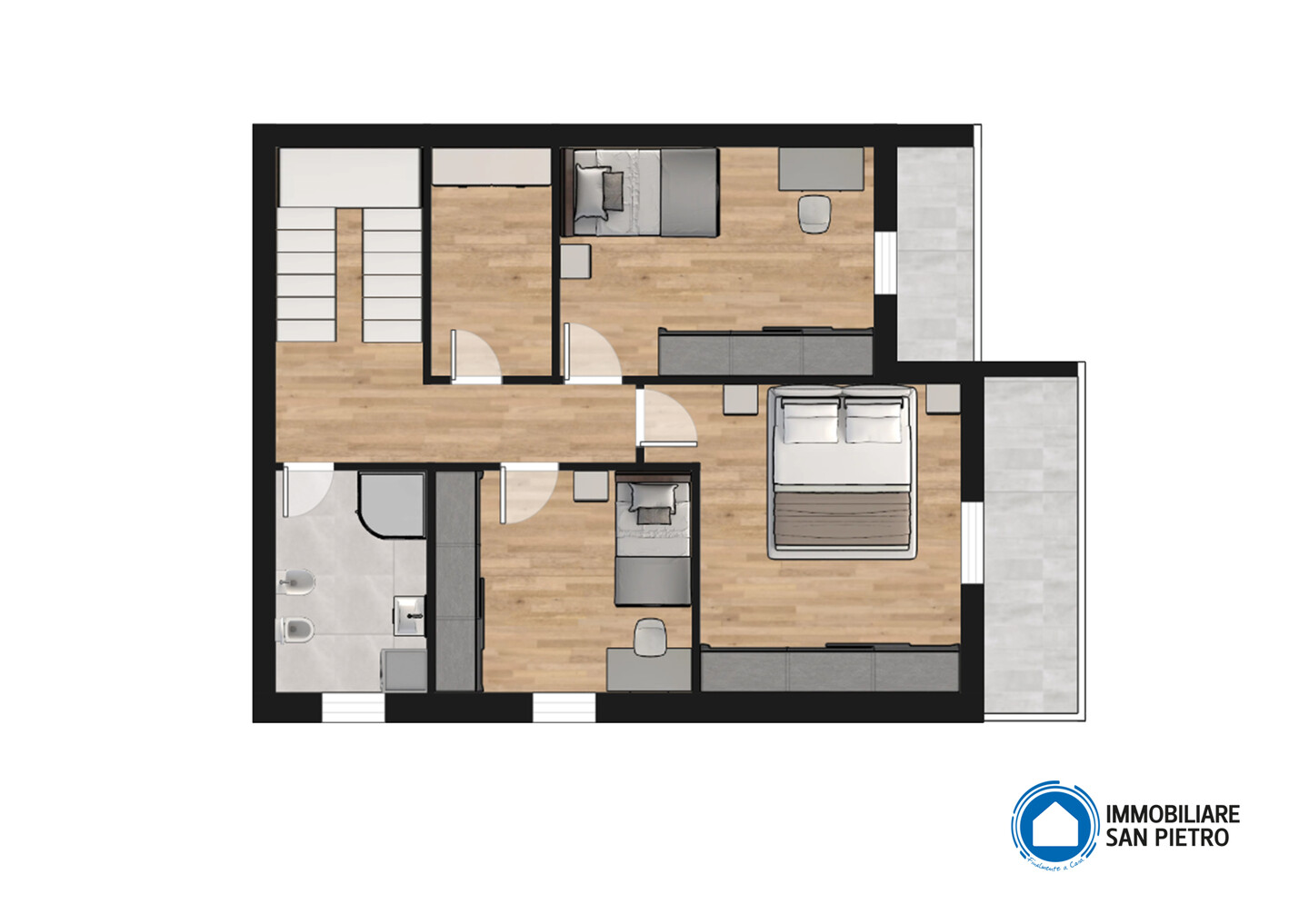 La soluzione è caratterizzata da eleganti finiture, con ampio capitolato tra cui poter scegliere, oltre a tecnologie di ultima generazione e all’avanguardia, tra cui l’impianto domotico per la gestione degli avvolgibili in alluminio con comando all’ingresso dell’abitazione e impianto fotovoltaico.