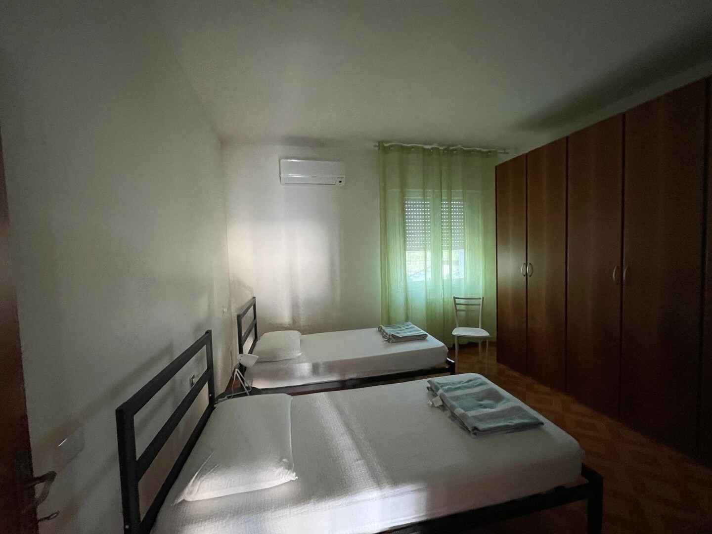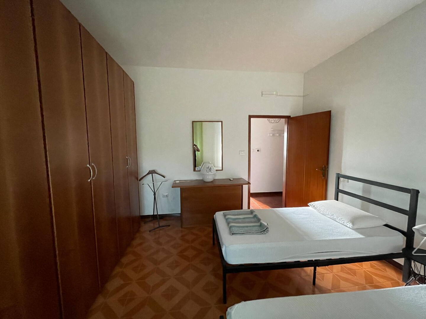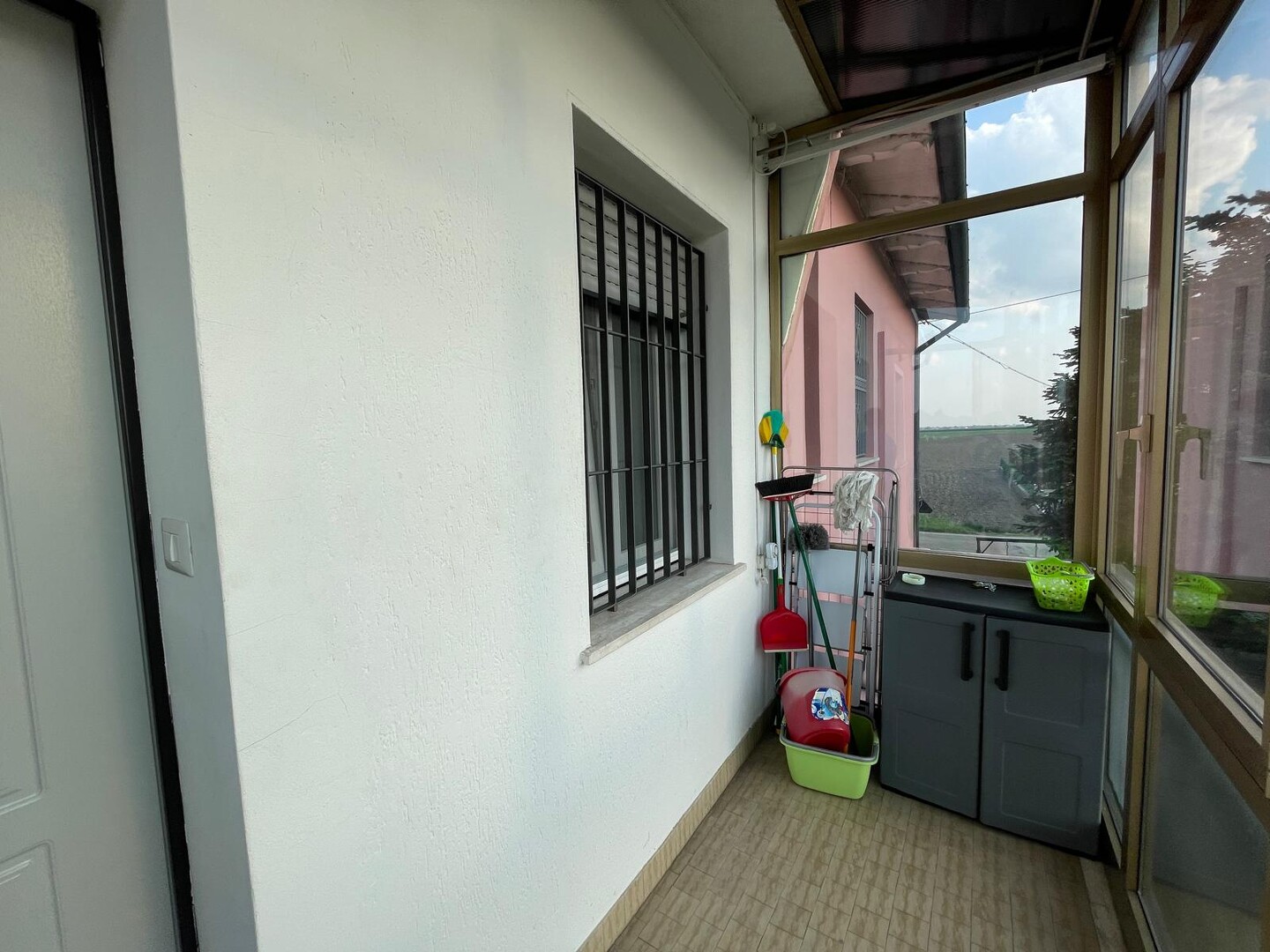 Appartamento al primo piano con ingresso indipendente dal piano terra tramite scala esterna, così composto: ingresso su corridoio, soggiorno con cucinotto, bagno, disimpegno notte e due camere matrimoniali. Completa la proprietà un terrazzo verandato e un giardino privato. Possibilità di parcheggio per due auto.