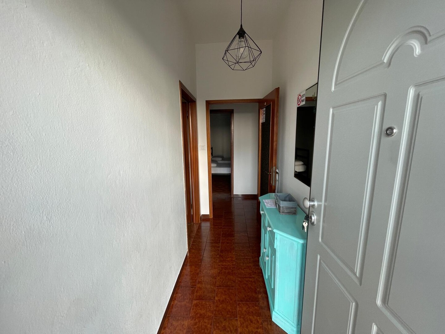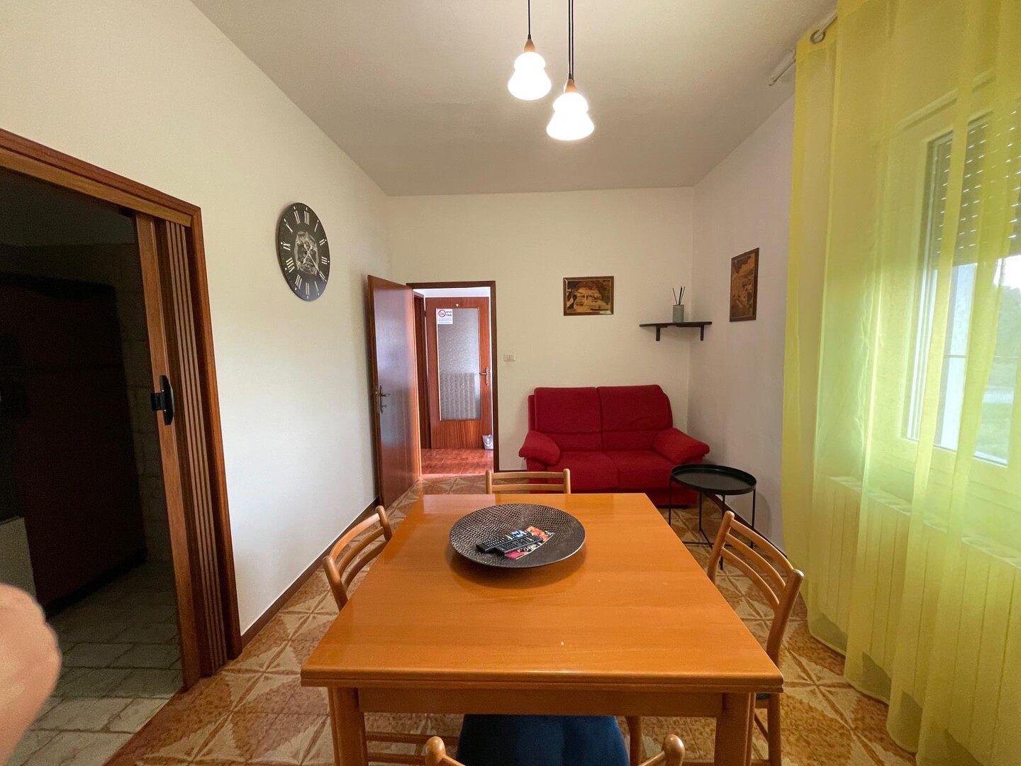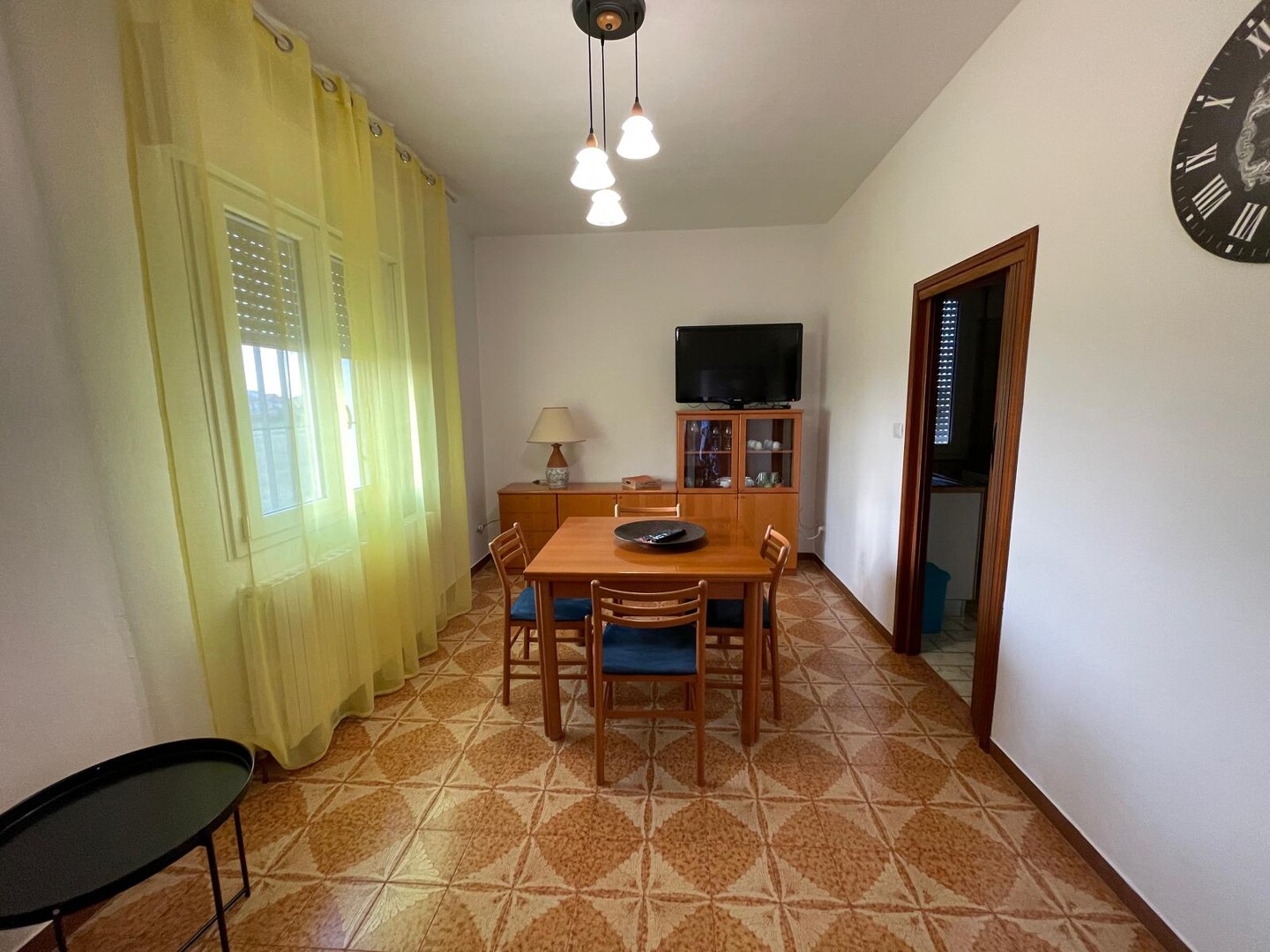 Appartamento al primo piano con ingresso indipendente dal piano terra tramite scala esterna, così composto: ingresso su corridoio, soggiorno con cucinotto, bagno, disimpegno notte e due camere matrimoniali. Completa la proprietà un terrazzo verandato e un giardino privato. Possibilità di parcheggio per due auto.
