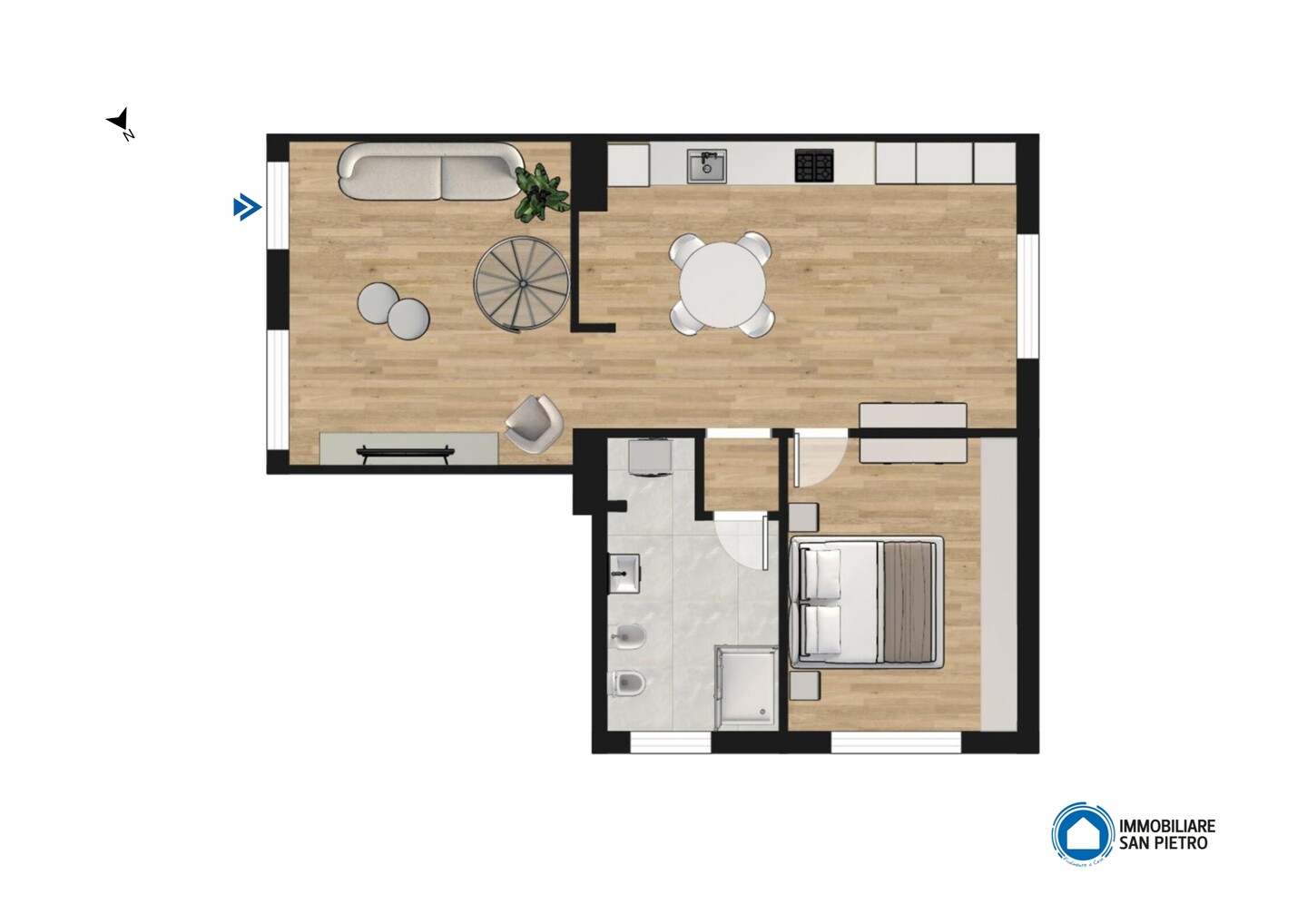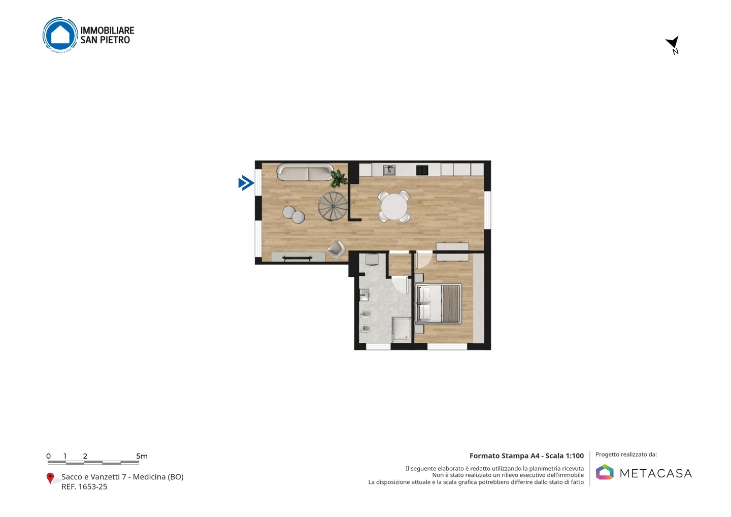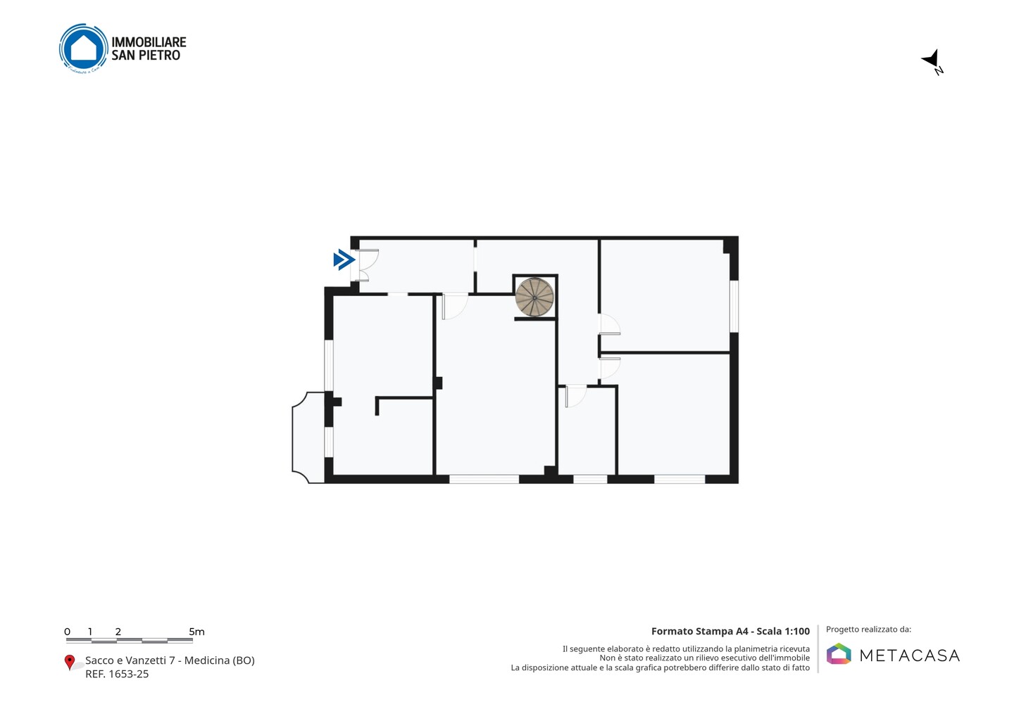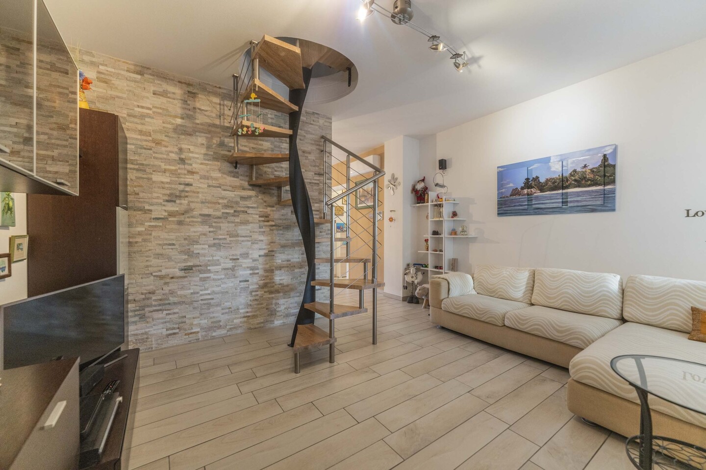 Il piano terra comprende un ingresso, una cucina abitabile, una camera da letto, un anti-bagno e un bagno. Al piano primo si trovano un ingresso su disimpegno, una sala da pranzo, un soggiorno, una cucina abitabile con accesso al balcone, due camere da letto e un bagno.