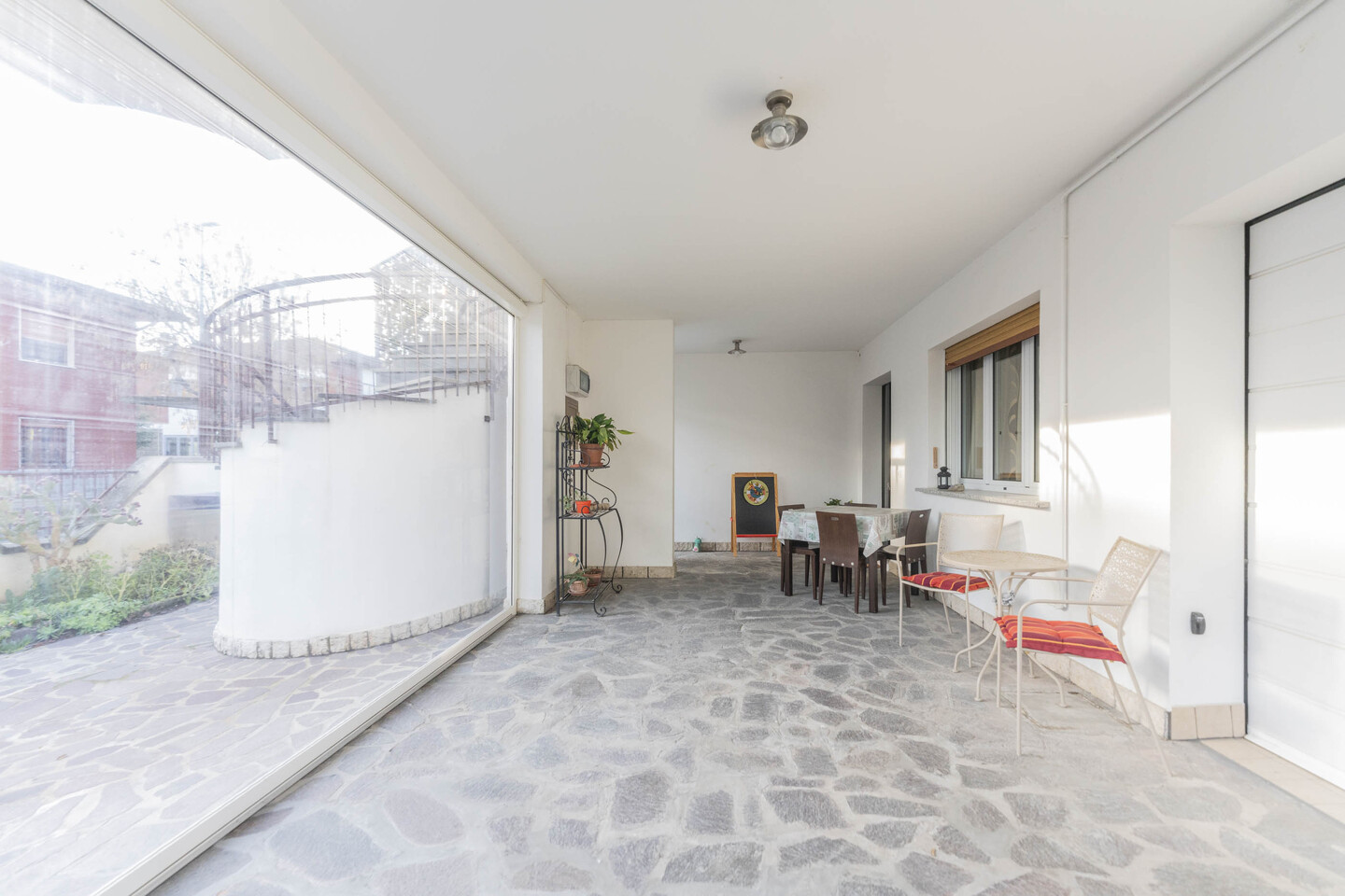 Villa bifamiliare sviluppata su due livelli: piano terra e piano primo. Al piano primo si può accedere sia tramite scala interna che tramite scala esterna. Completano la proprietà un porticato, un giardino che circonda l’immobile su tre lati e un garage.