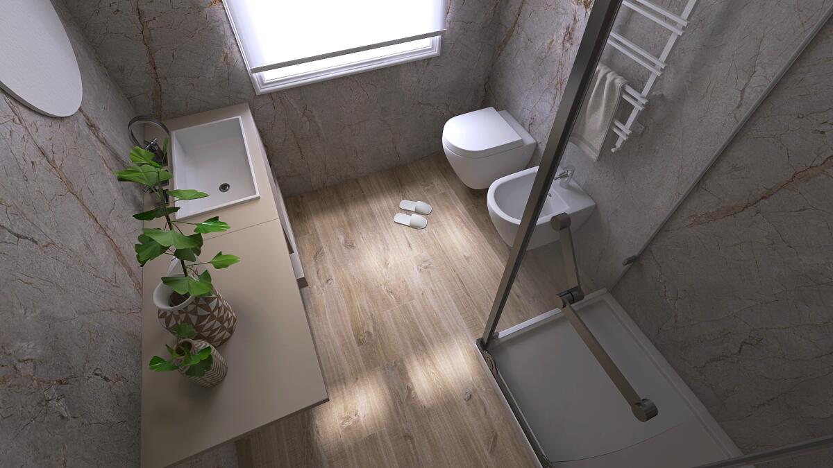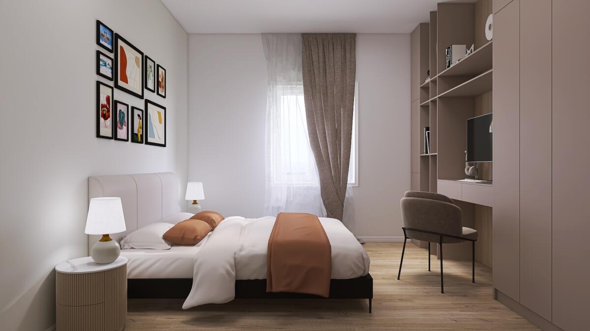 L’ipotesi di progetto mira a mantenere la disposizione attuale, ma prevede la sostituzione di impianti idraulici con il rifacimento del bagno con soluzioni moderne ed efficienti. Le porte e finestre verranno sostituite per migliorare isolamento e comfort. I pavimenti rinnovati con un intervento in sovrapposizione, utilizzando materiali come gres. Le pareti saranno tinteggiate e sarà sostituita la caldaia. Il risultato è una casa più elegante, con spazi funzionali e accoglienti.