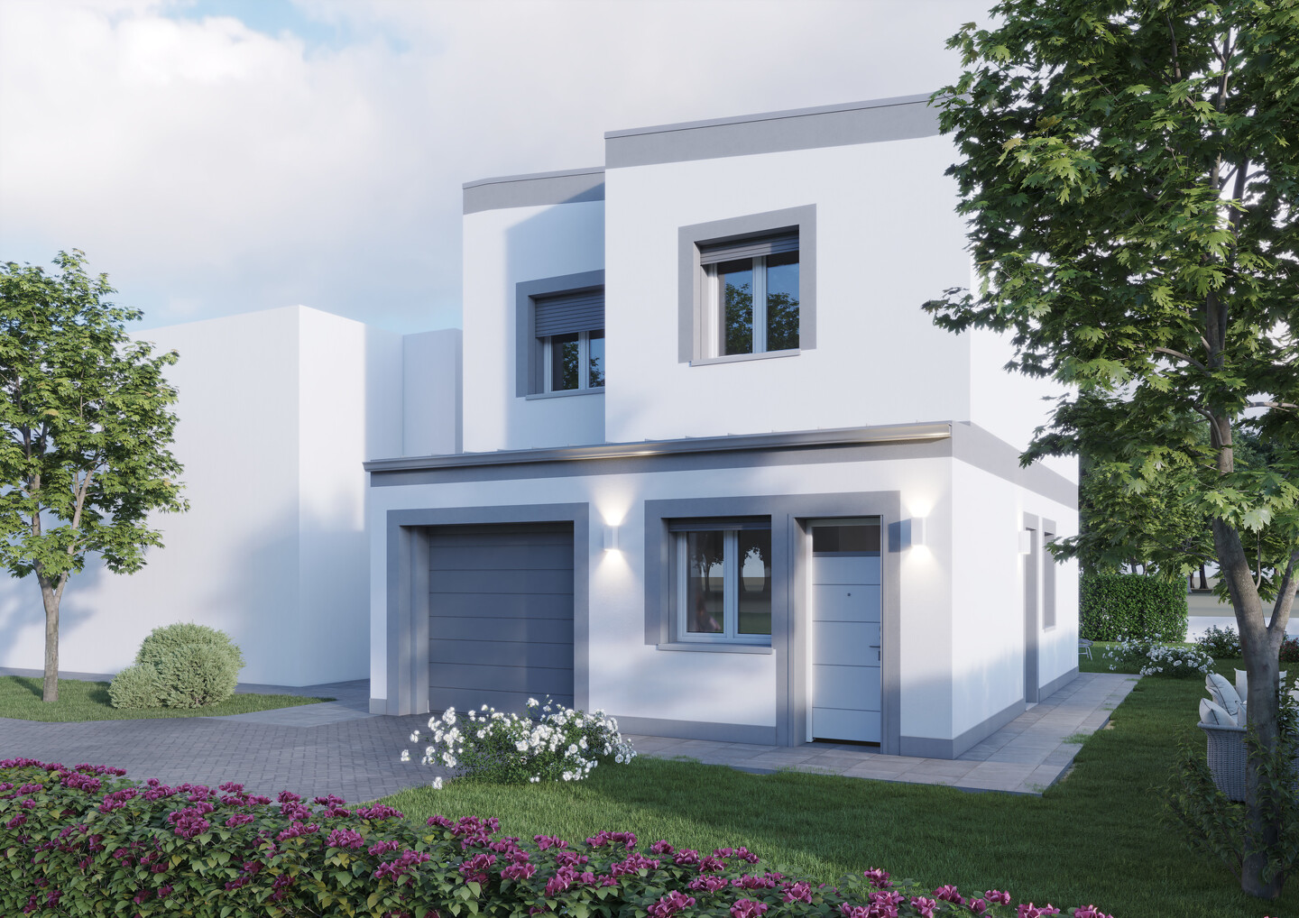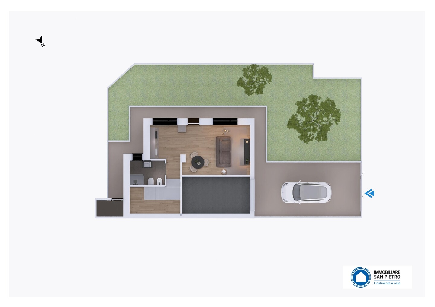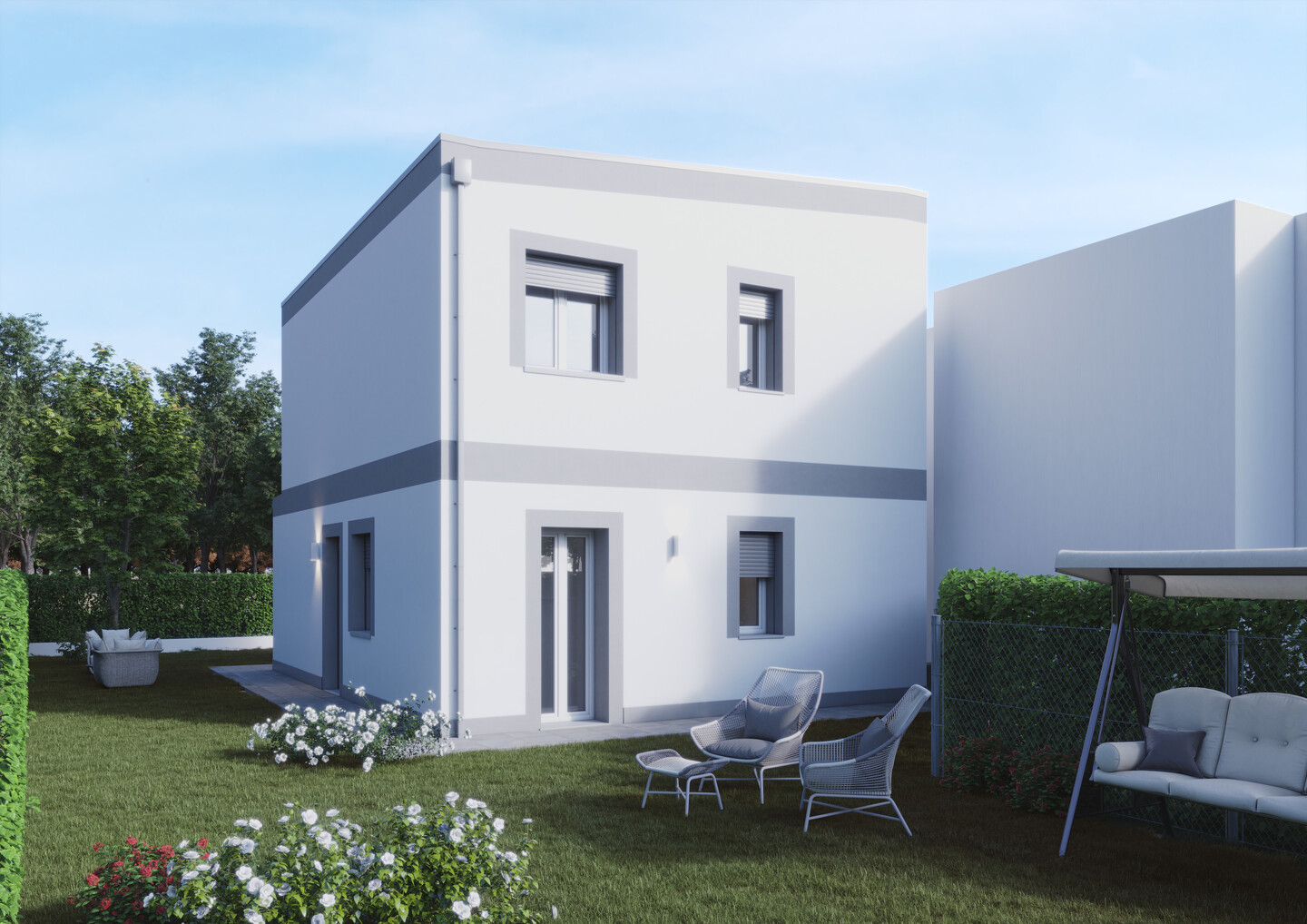 In fase di realizzazione, nel cuore di Mezzolara, sorgerà questa elegante porzione di villa bifamiliare, disposta su due livelli e circondata da un giardino privato di 135mq, che combina un’area verde e una zona pavimentata.